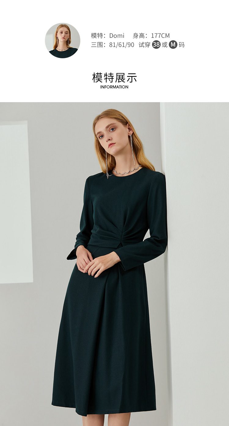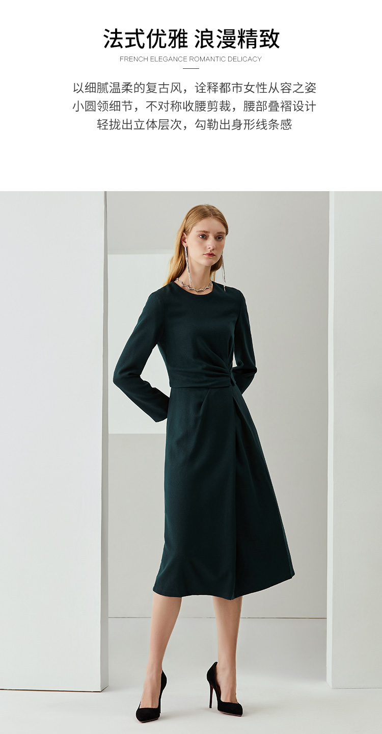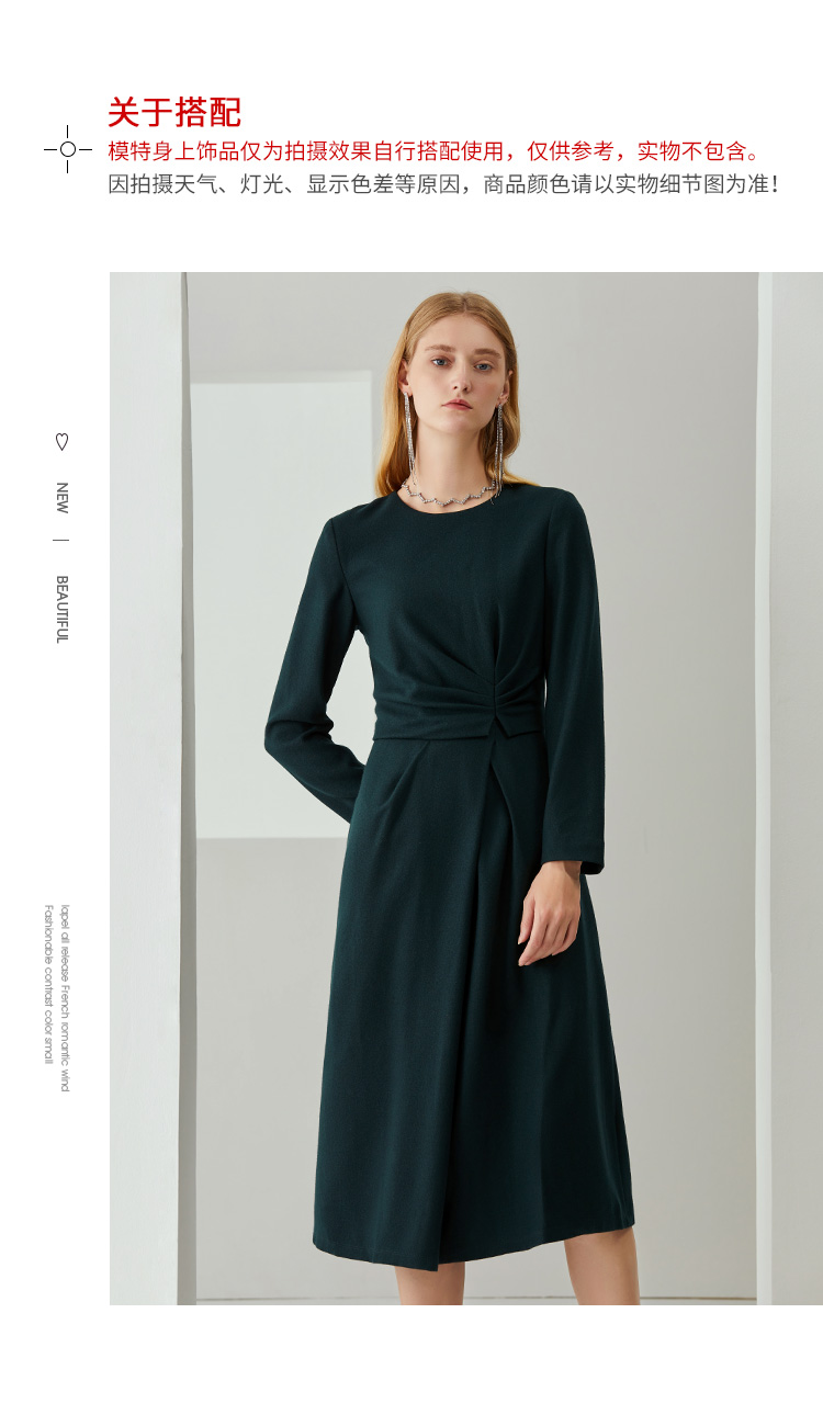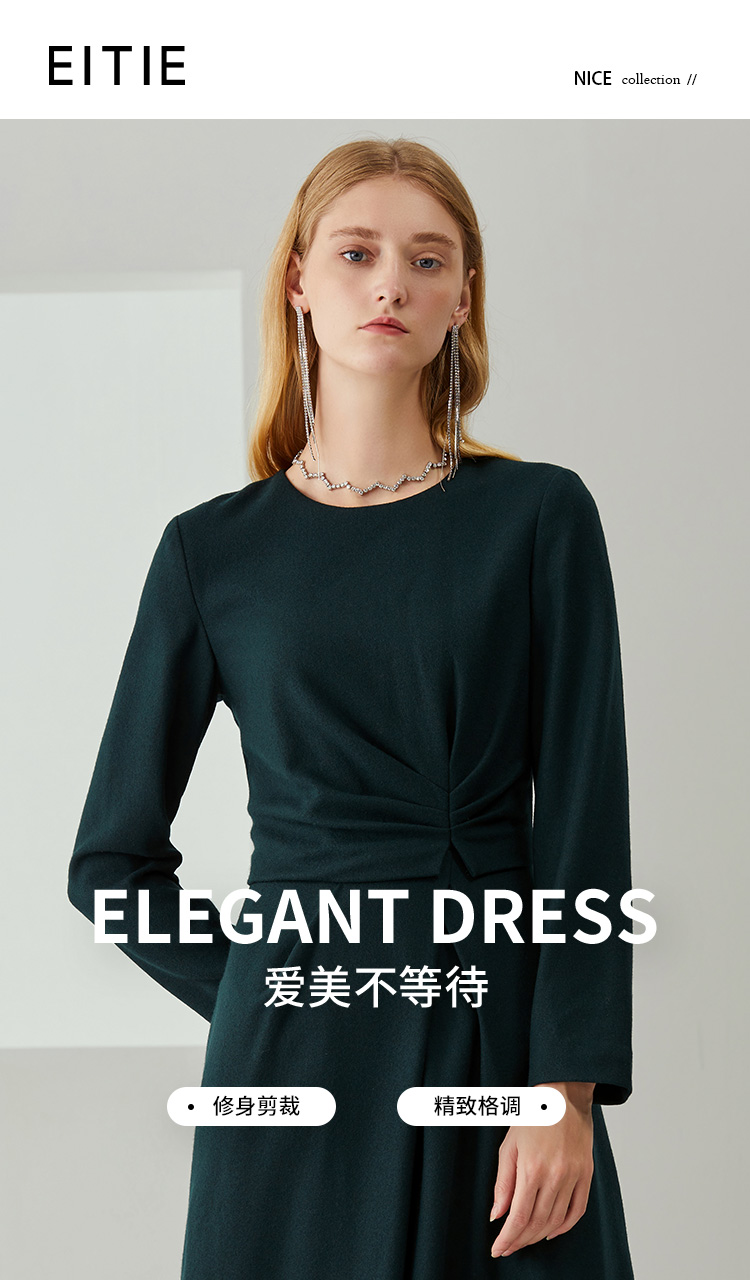 EITIE爱特爱新款优雅气质镂空蕾丝收腰A字喇叭袖连衣裙女A2007411