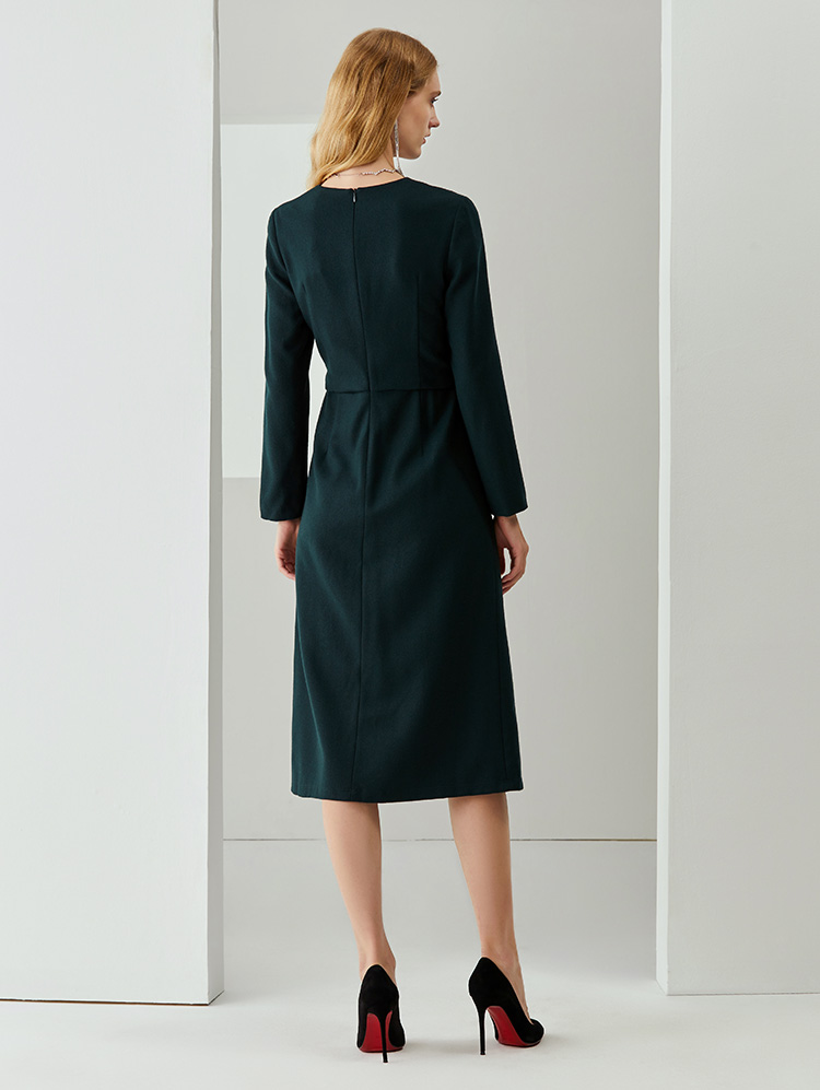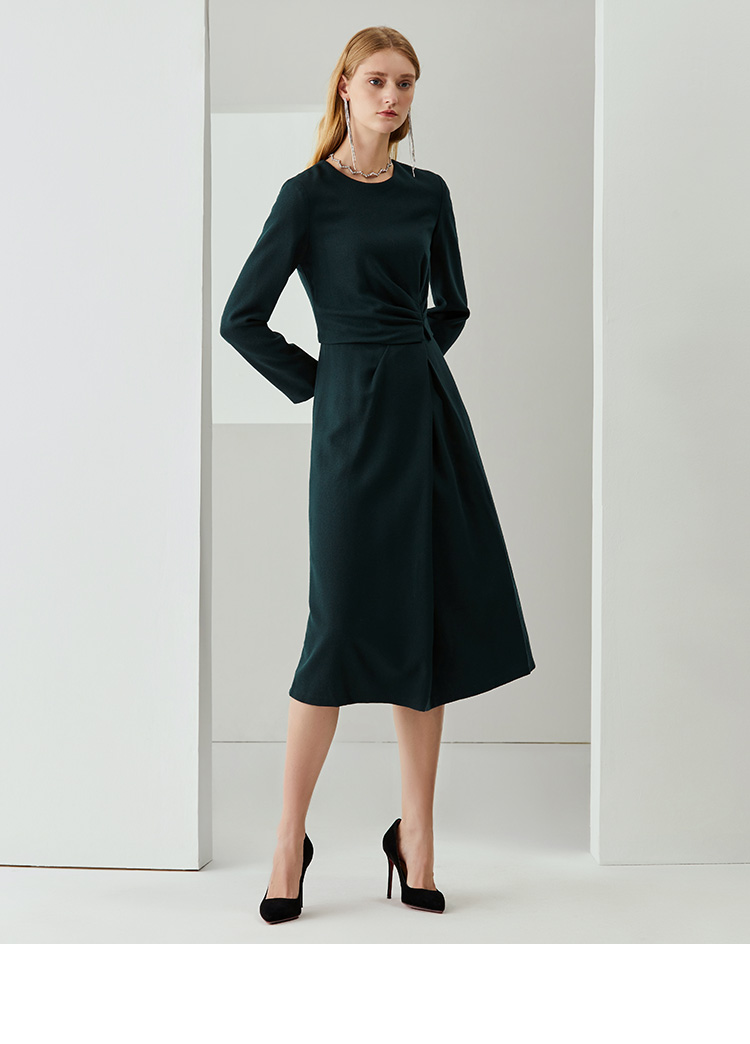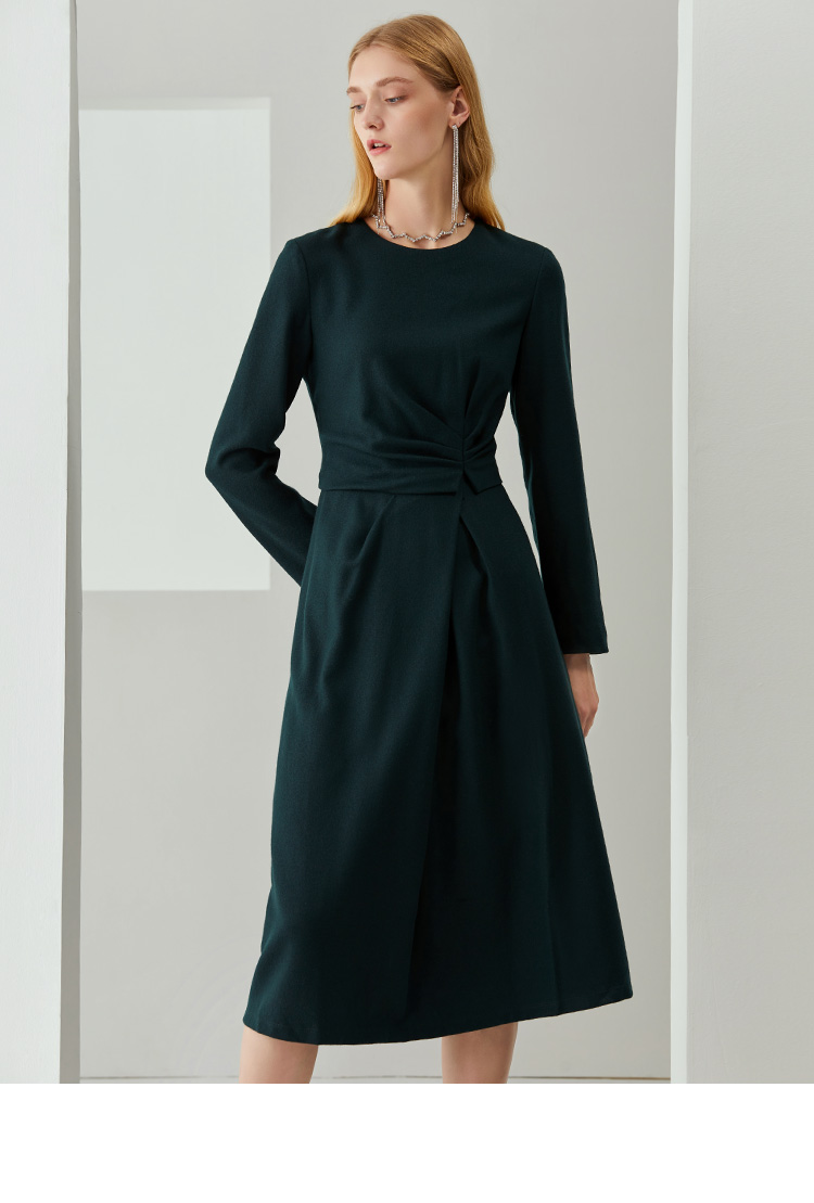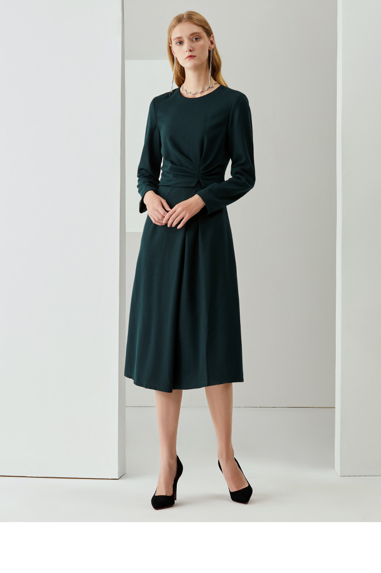 EITIE爱特爱新款优雅气质镂空蕾丝收腰A字喇叭袖连衣裙女A2007411