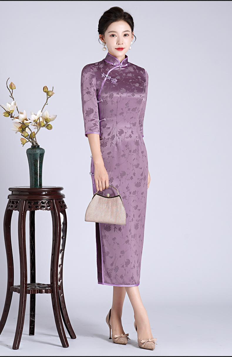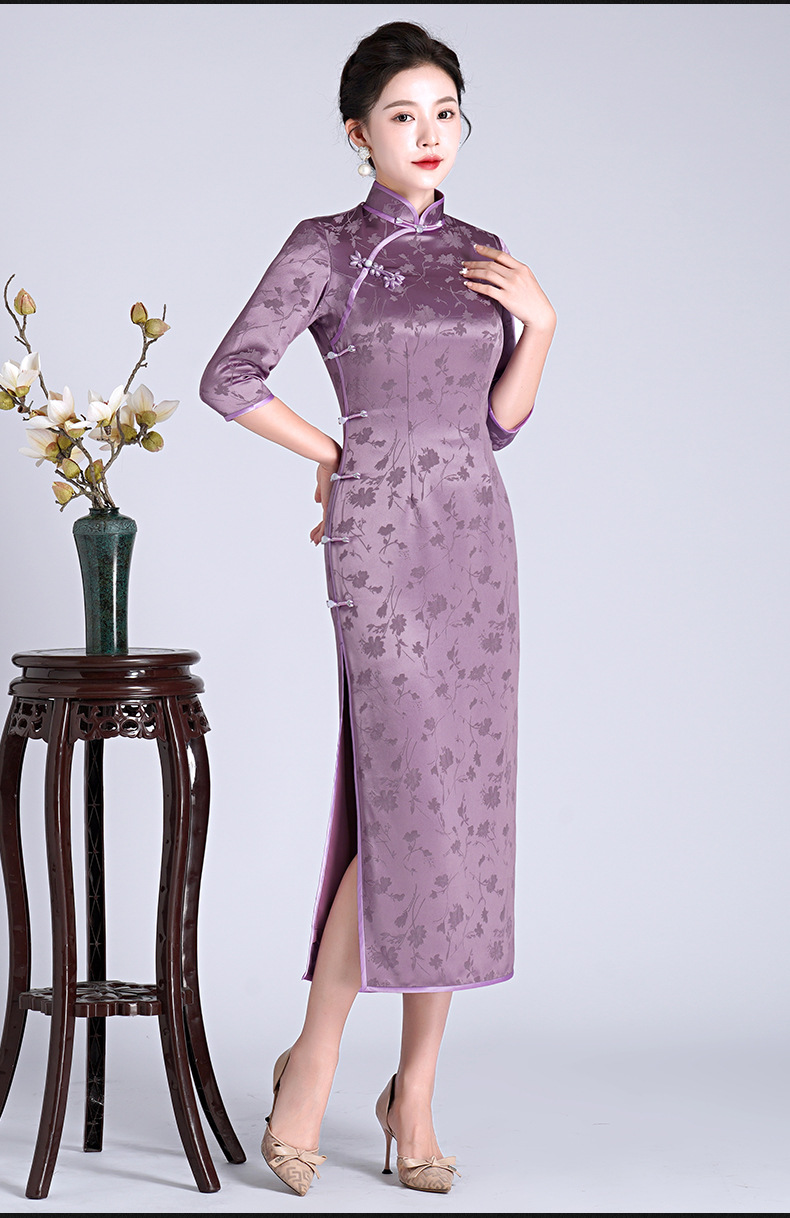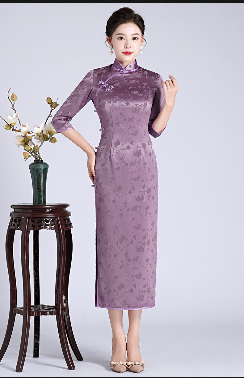 国风立领旗袍连衣裙,中式复古修身显瘦长款旗袍LHS-06187