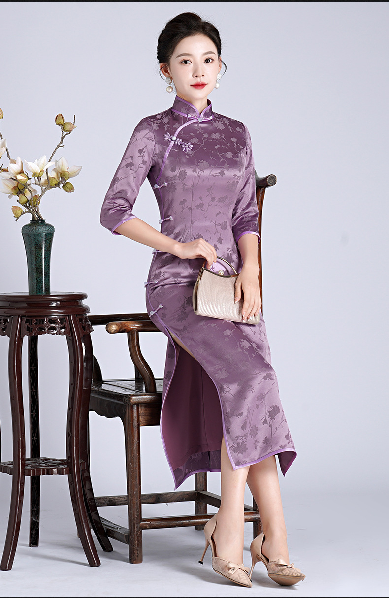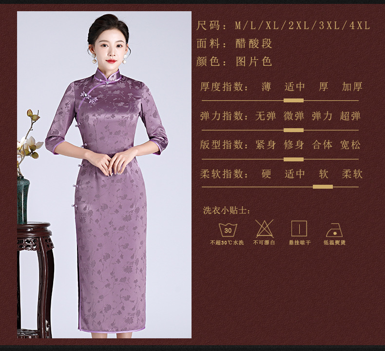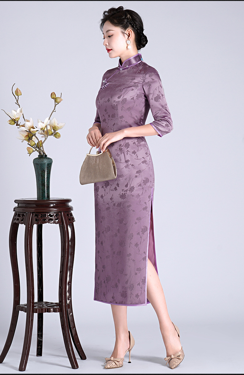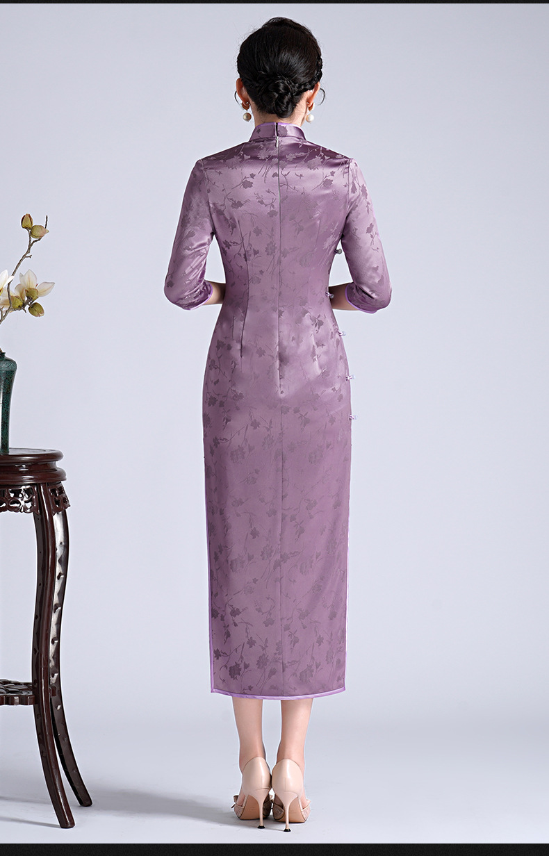 国风立领旗袍连衣裙,中式复古修身显瘦长款旗袍LHS-06187