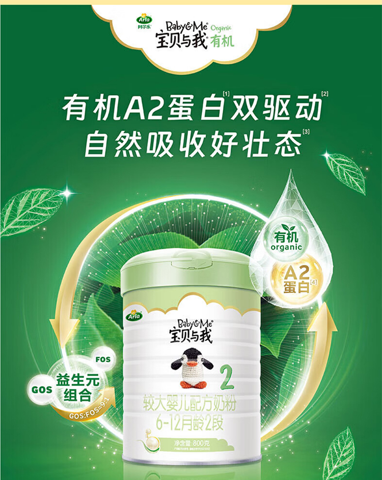 Arla宝贝与我有机较大婴儿配方奶粉2段800克