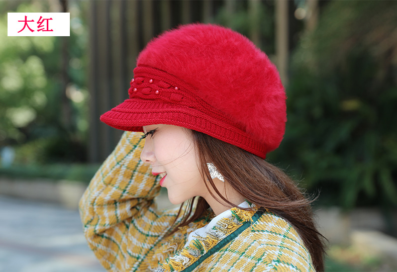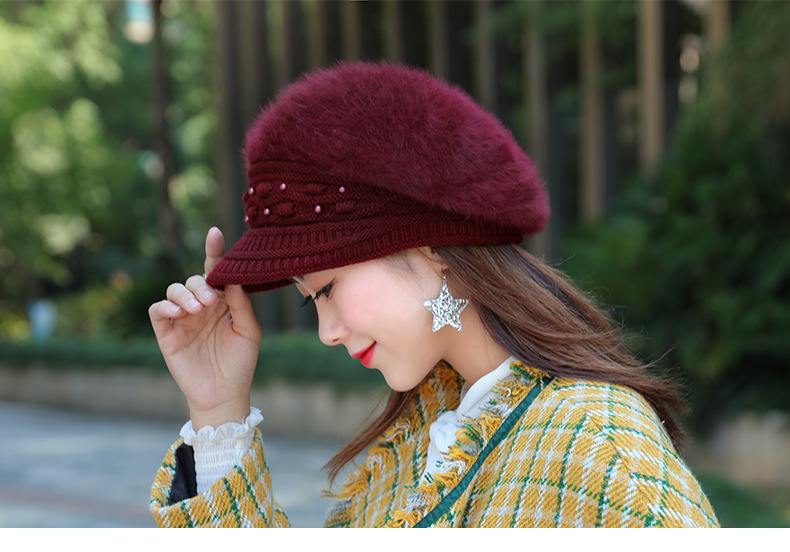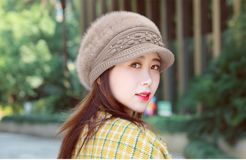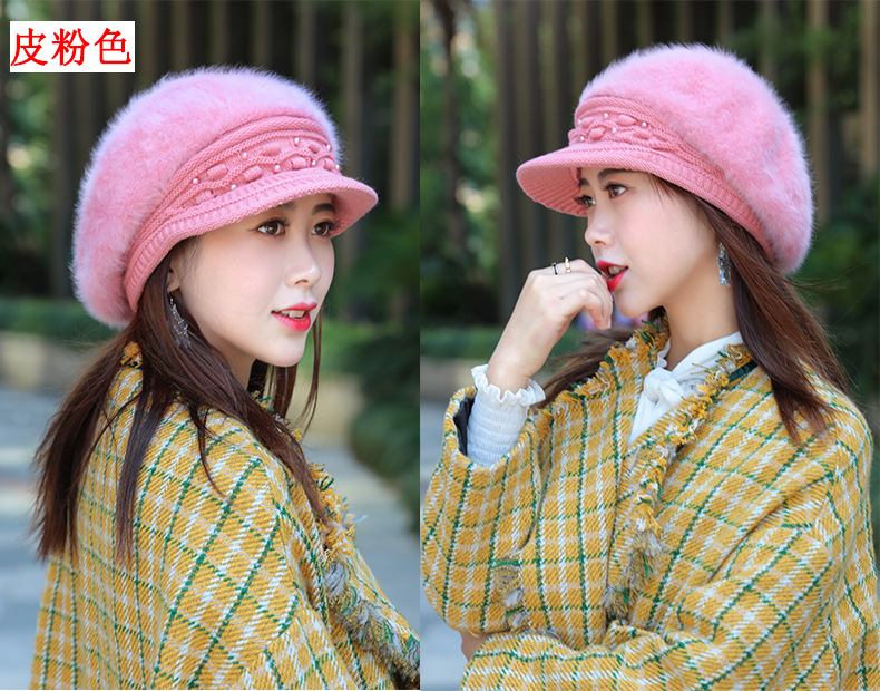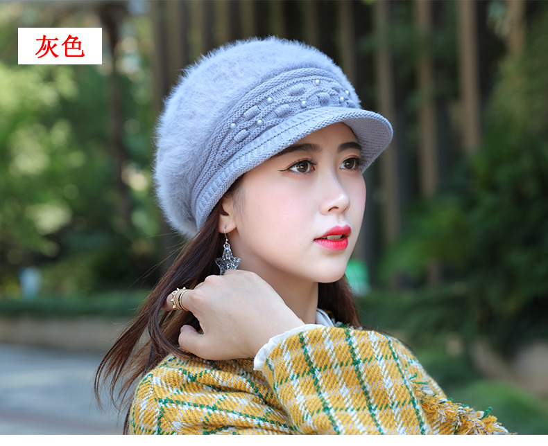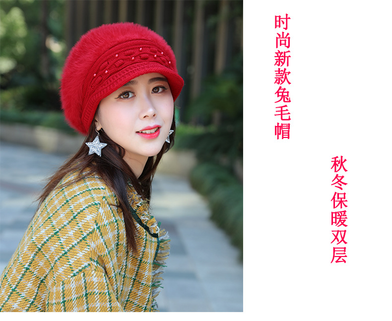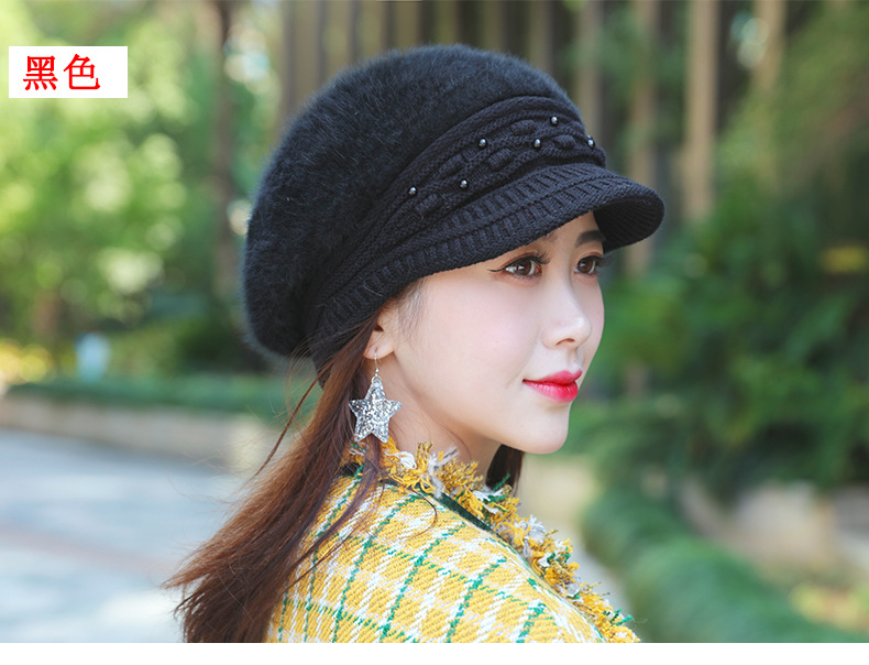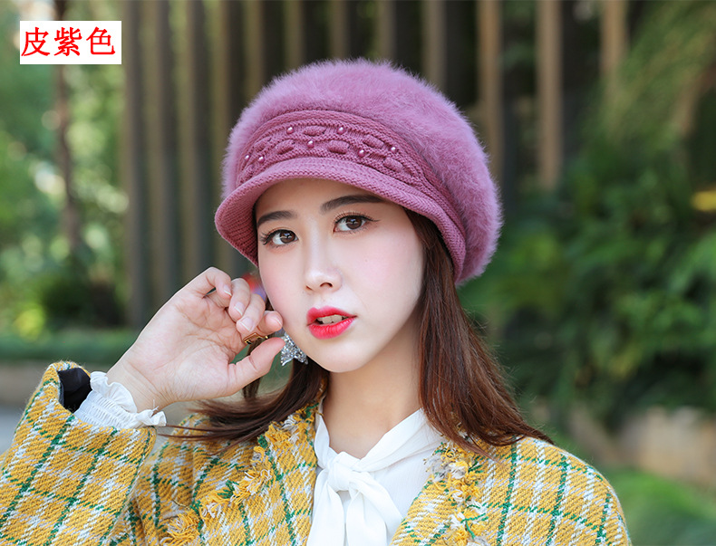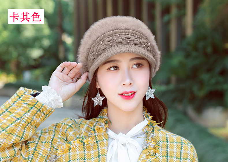 KX-秋冬新款珍珠帽子针织帽女士贝雷帽