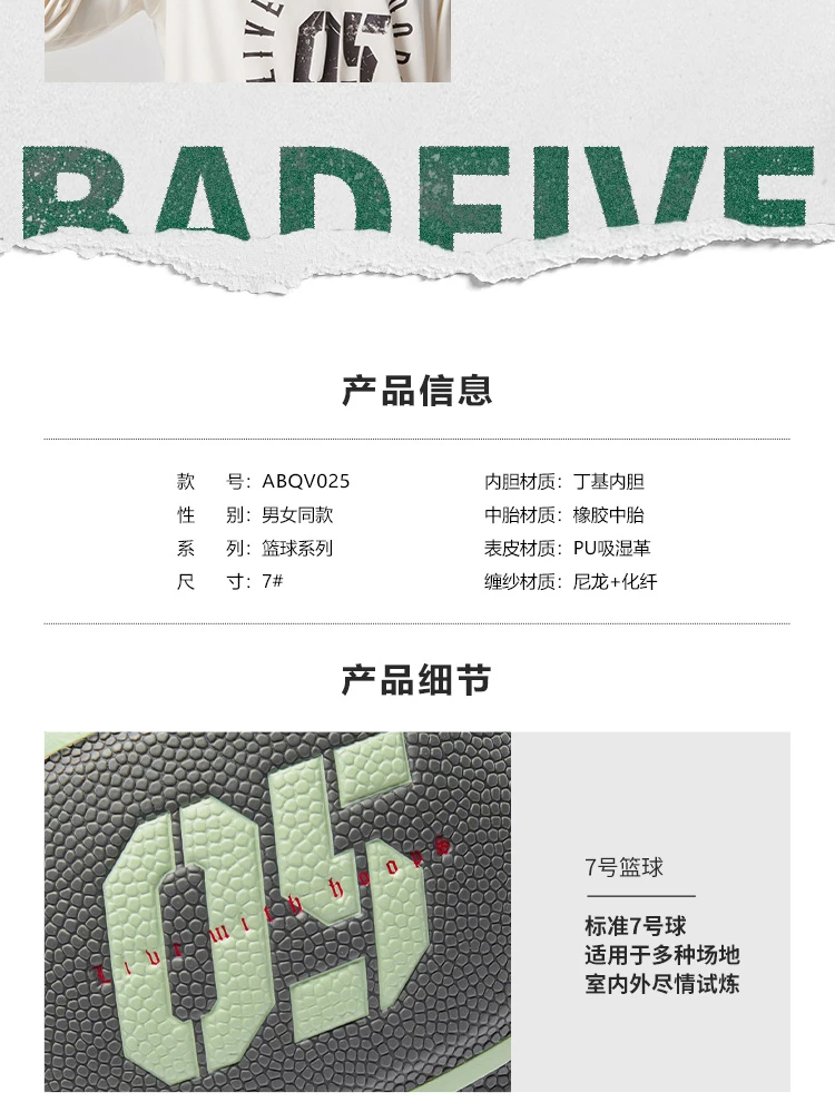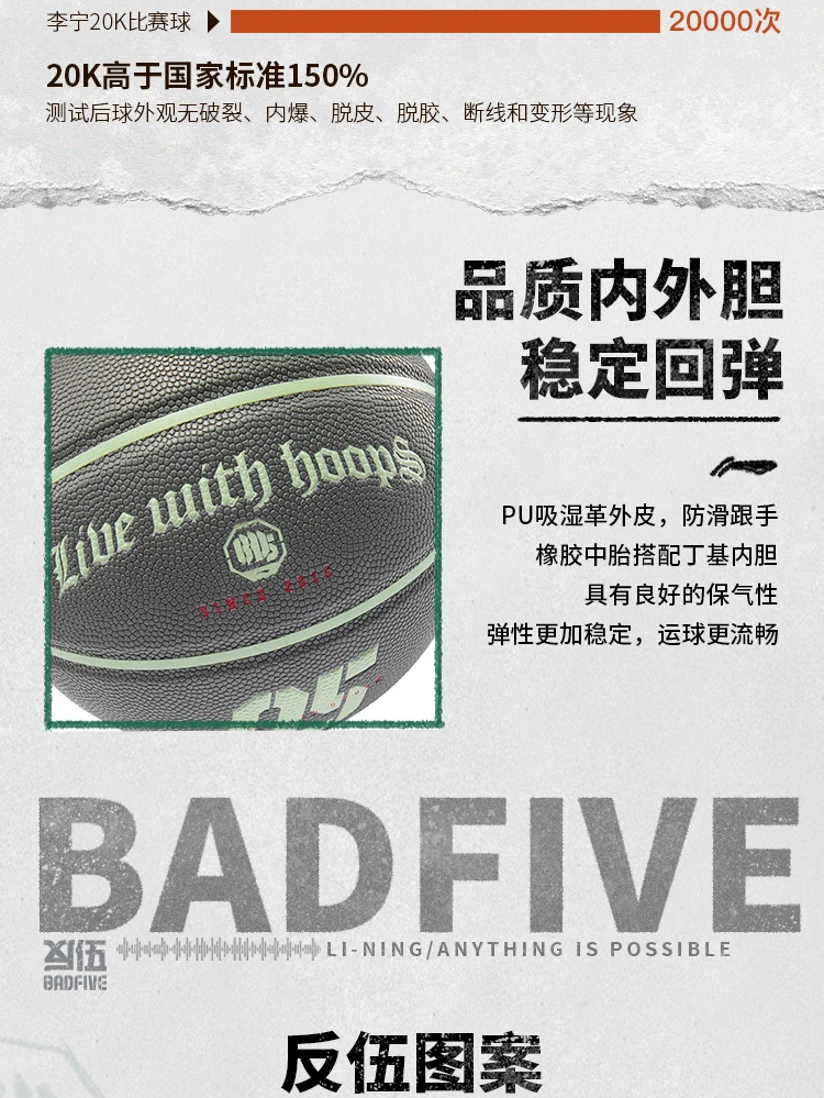 李宁反伍BADFIVE B8000精英时尚篮球7号球ABQV025
