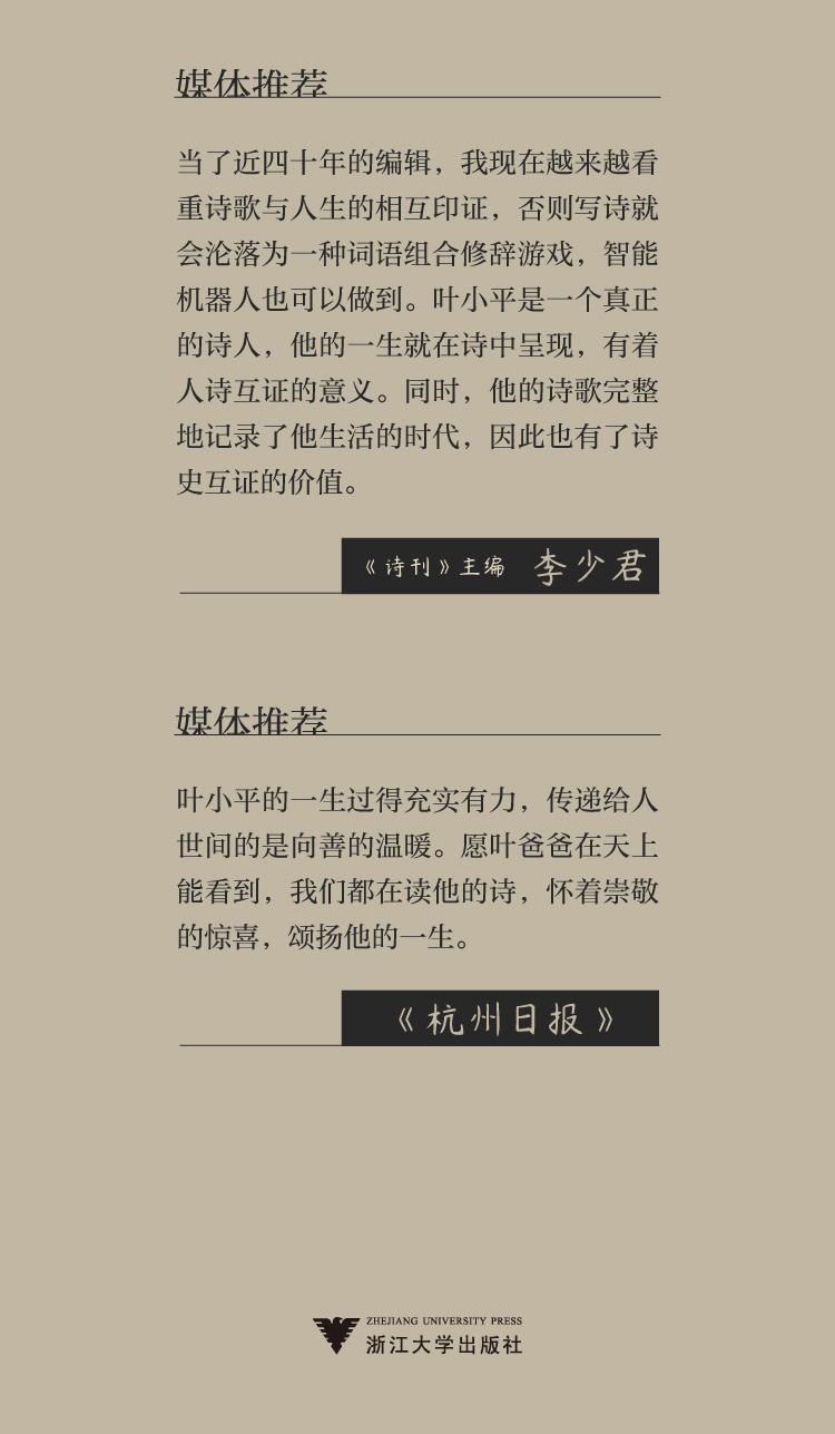 叶小平的一生过得充实有力,传递给人世间的是向善的温暖。愿叶爸爸在天上能看到,我们都在读他的诗,怀着崇敬的惊喜,颂扬他的一生。