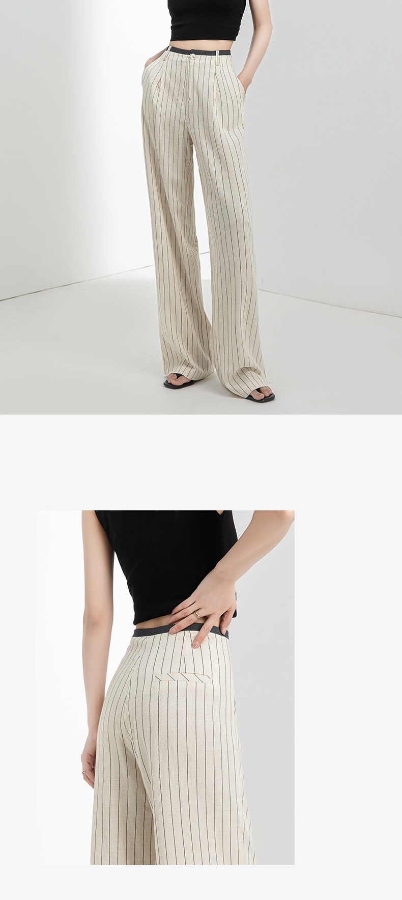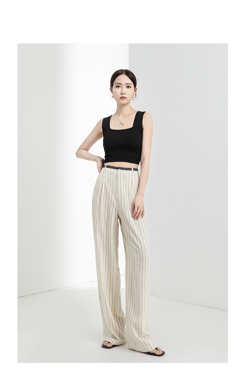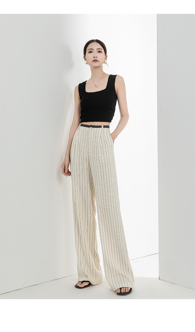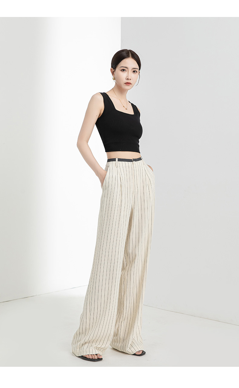 「高货xg」全新升级【铂金会员183/天猫249/差价66】(72517)洛诗琳老钱风亚麻西装阔腿裤2025夏季显瘦高腰垂感休闲裤
