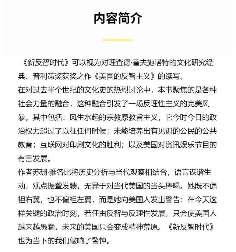 新反智时代 历史学堂 [美]苏珊·雅各比 著 曹聿非 译 反智主义 非理性 反理性 明明自己无知偏偏否定知识 上海译文出版社 正版