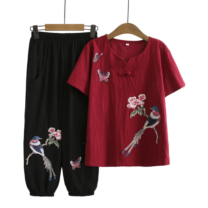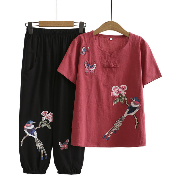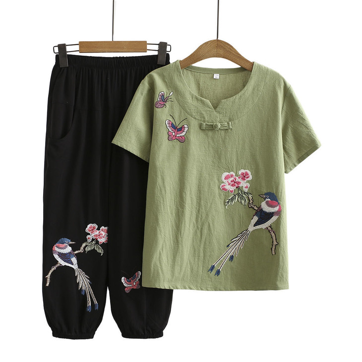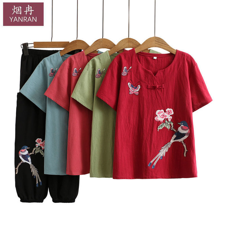 F GN6018 春夏民族风棉麻宽松休闲套装