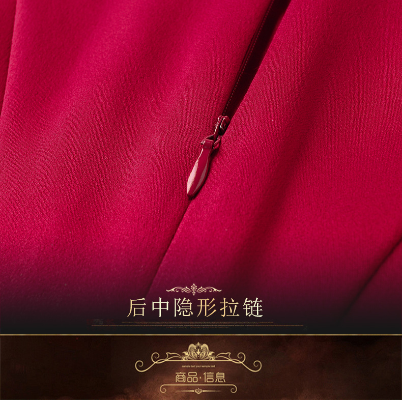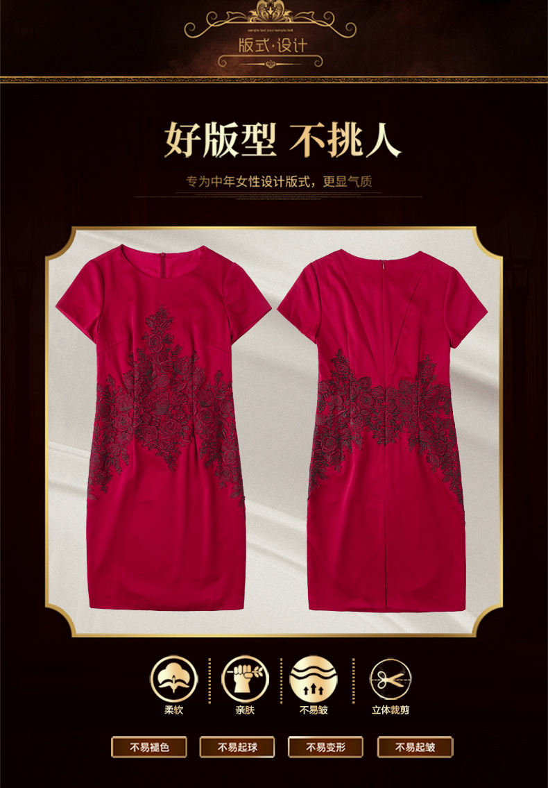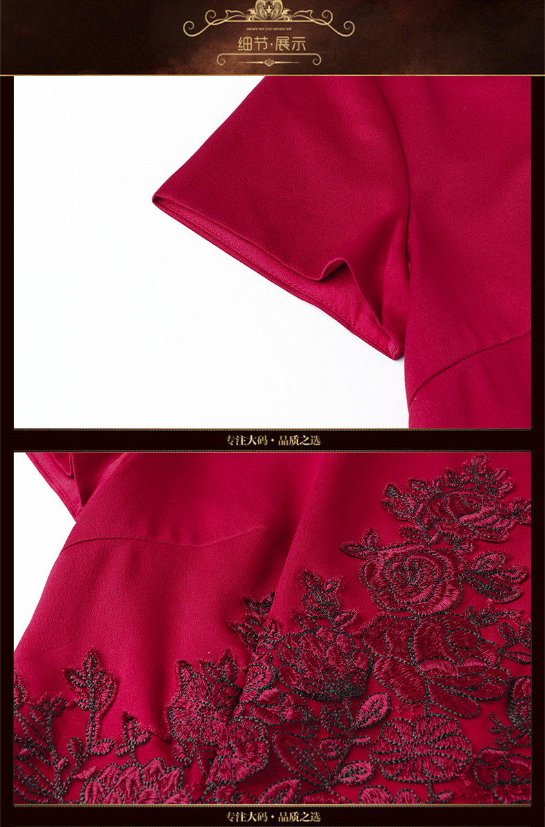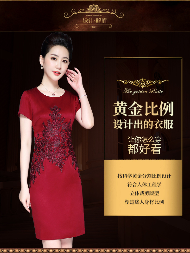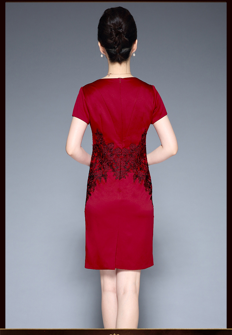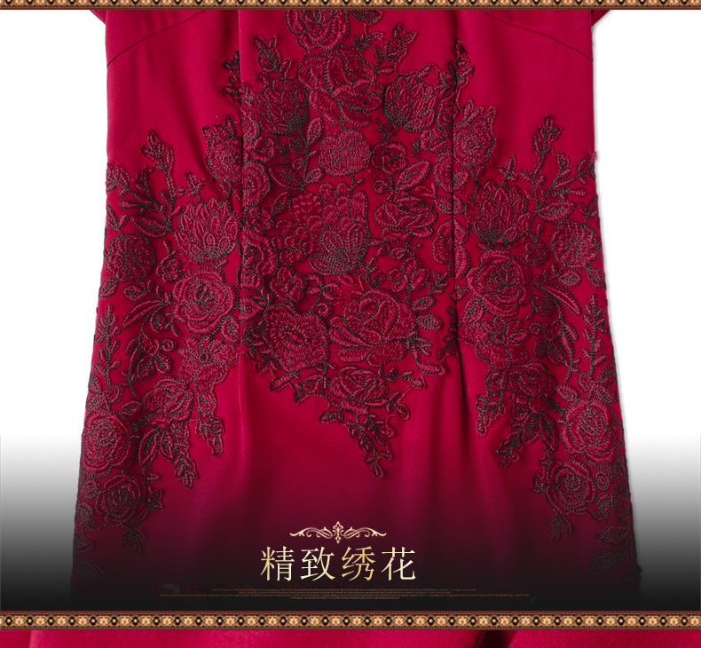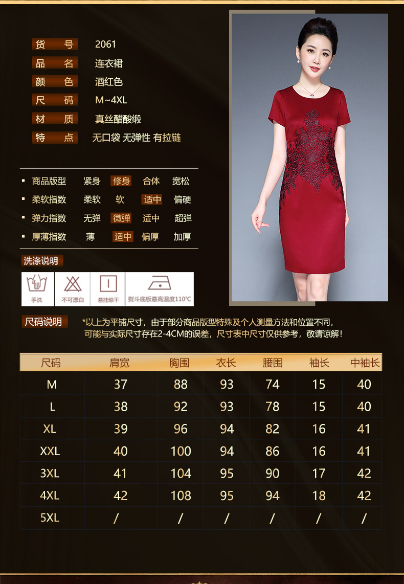 LC-2061新款短袖刺绣连衣裙婚礼服妈妈装喜婆婚宴服修身中长裙