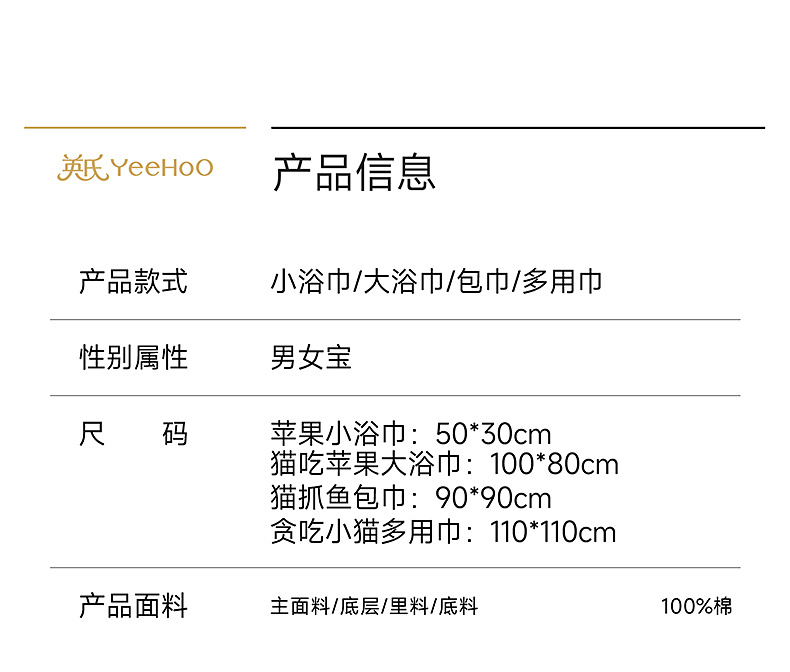 【商场同款】英氏宝宝浴巾婴儿A类纯棉双层纱布浴巾新生婴儿包巾