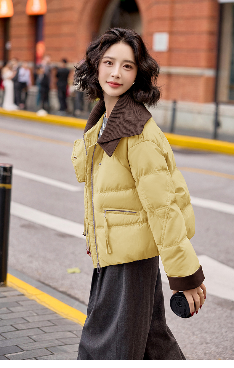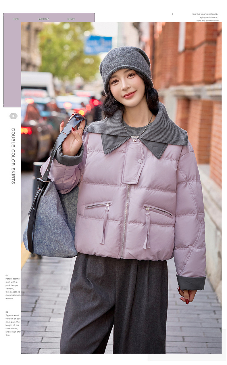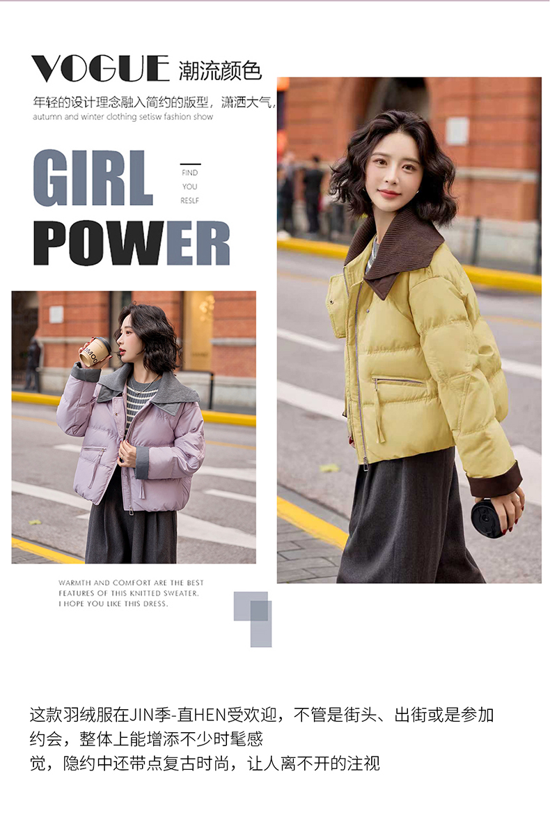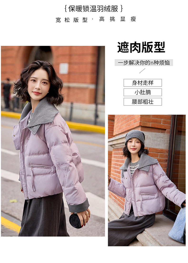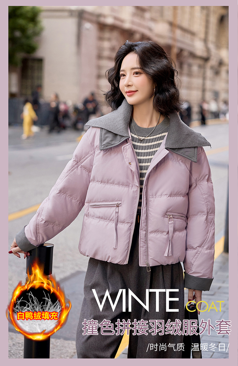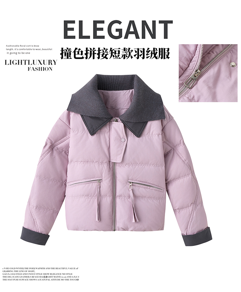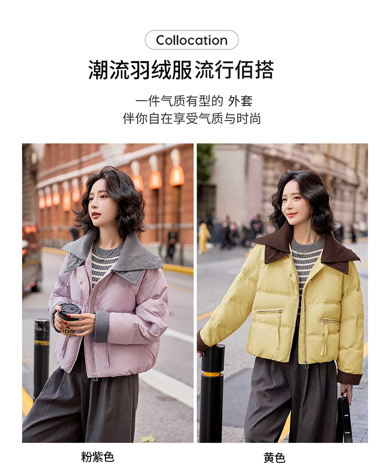 韩版撞色翻领短款羽绒服,超好看洋气小个子白鸭绒外套HR-MUZI683