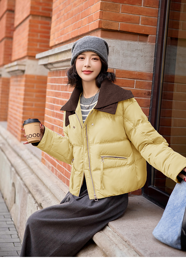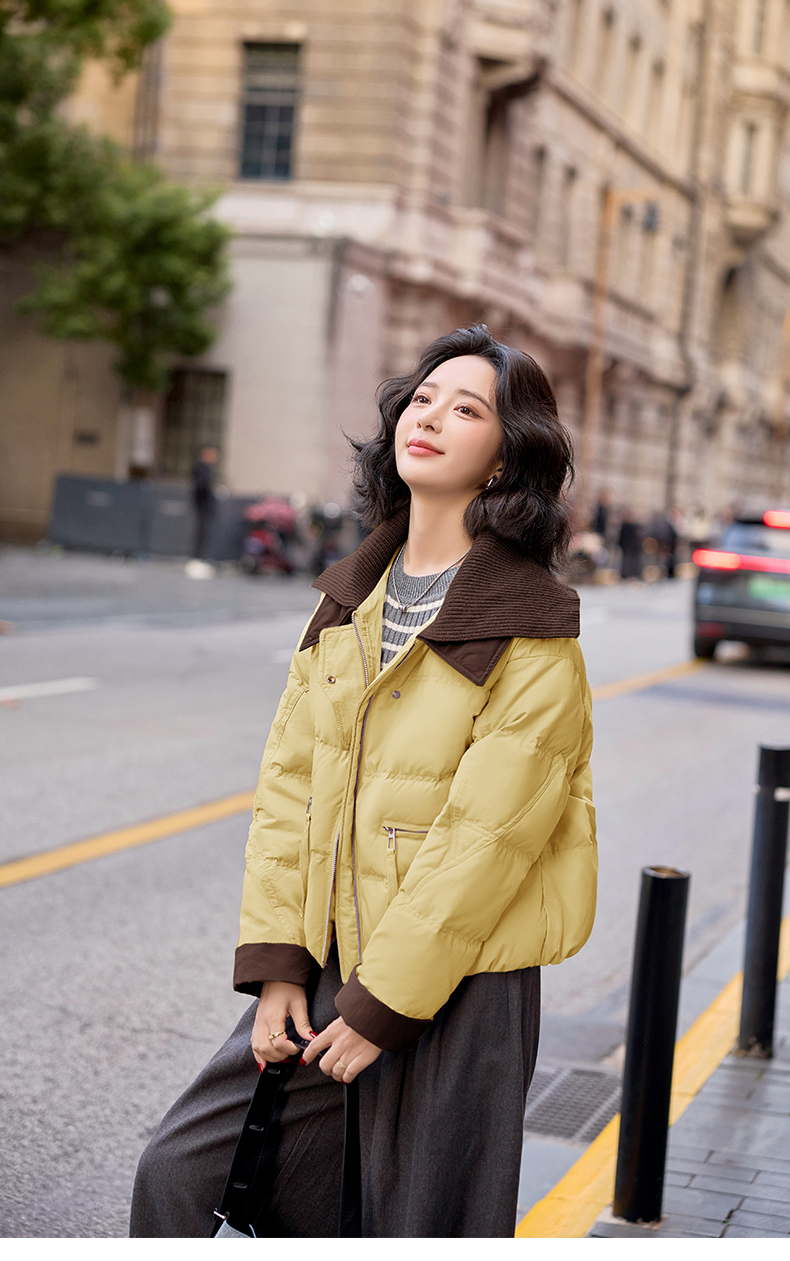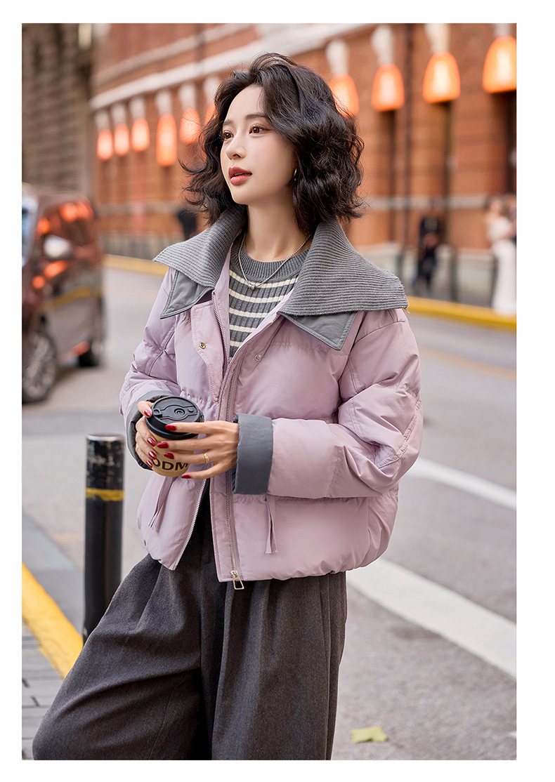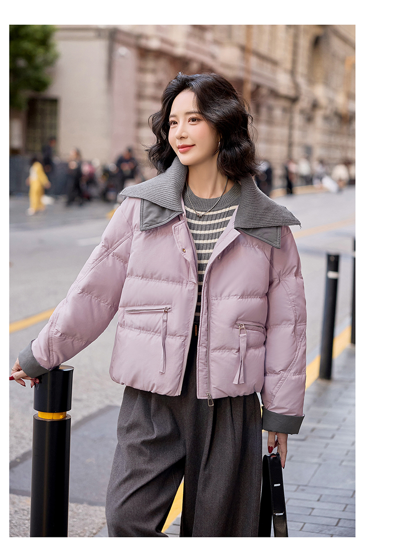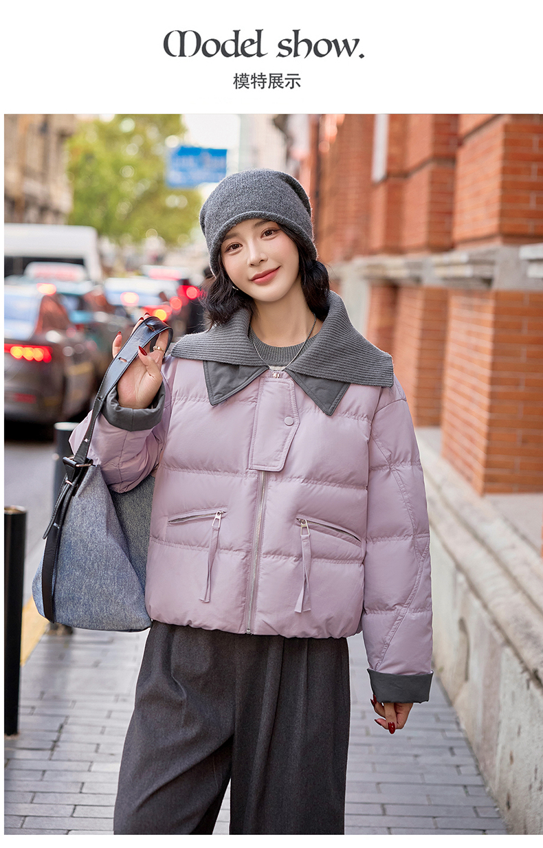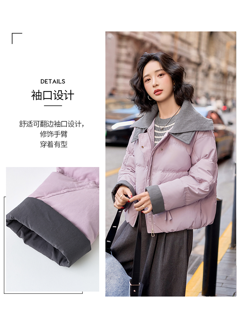 韩版撞色翻领短款羽绒服,超好看洋气小个子白鸭绒外套HR-MUZI683