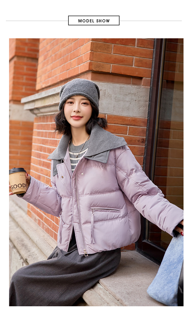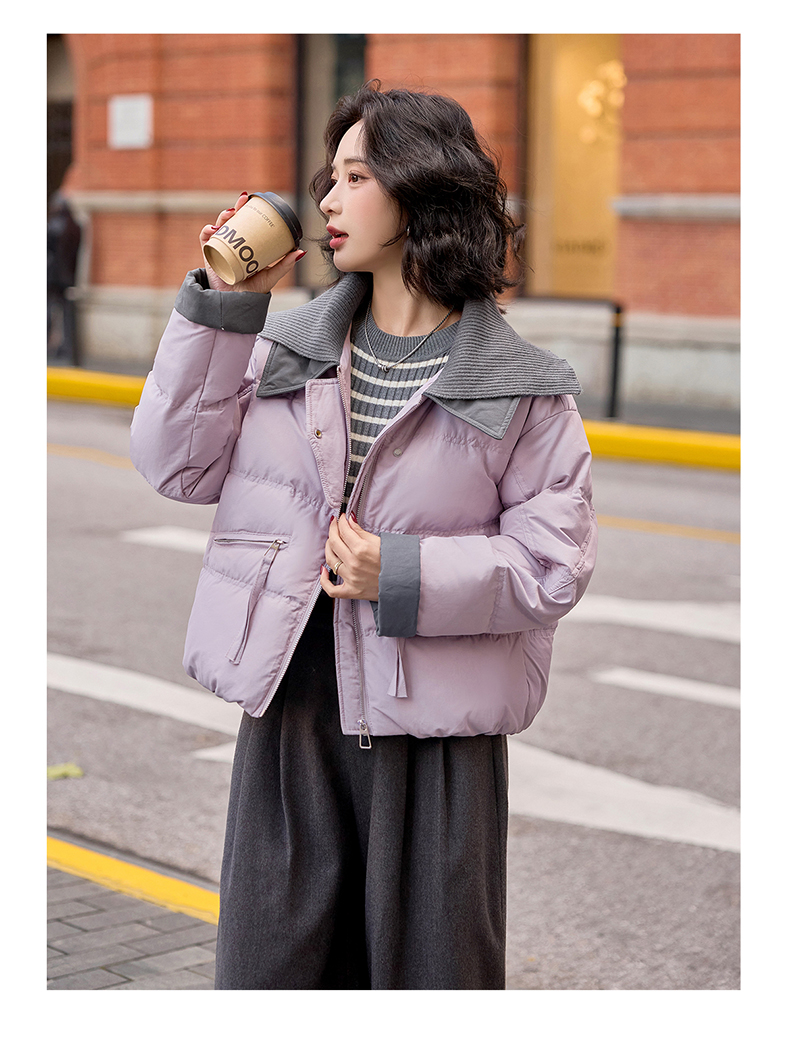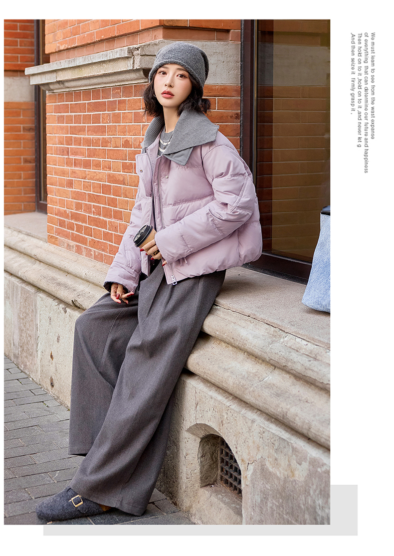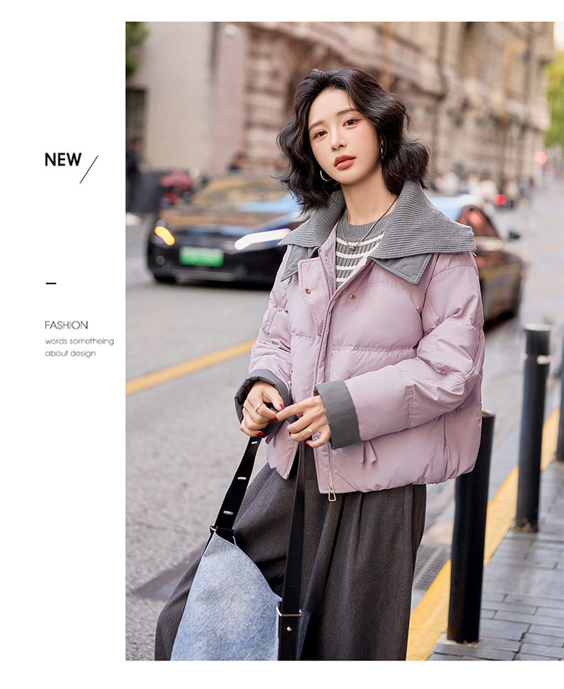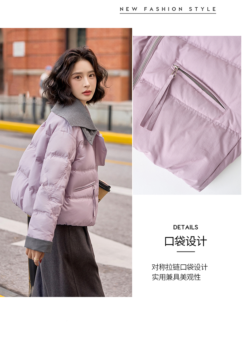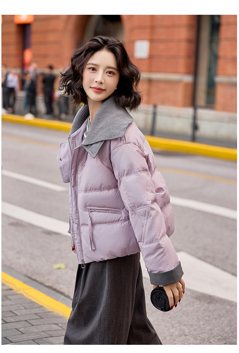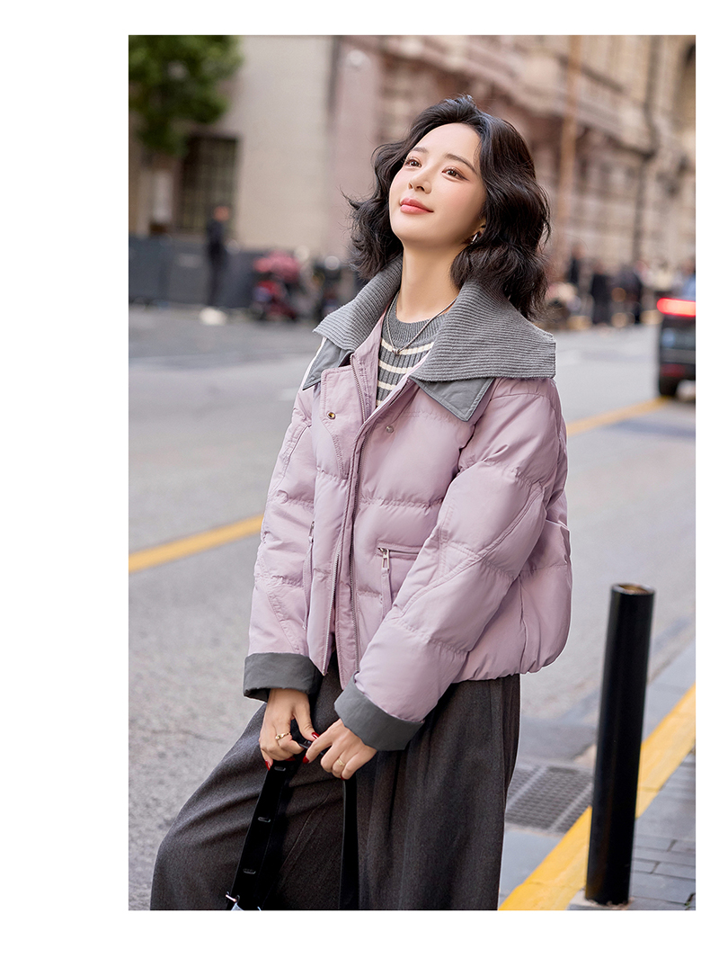 韩版撞色翻领短款羽绒服,超好看洋气小个子白鸭绒外套HR-MUZI683