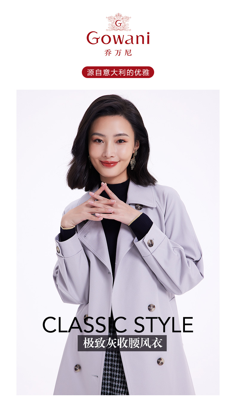 乔万尼新款风衣外套女收腰气质中长款英伦风EF3A825