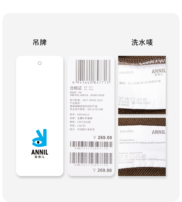 男女童全腰针织单裤秋季新款安奈儿童装EM436513