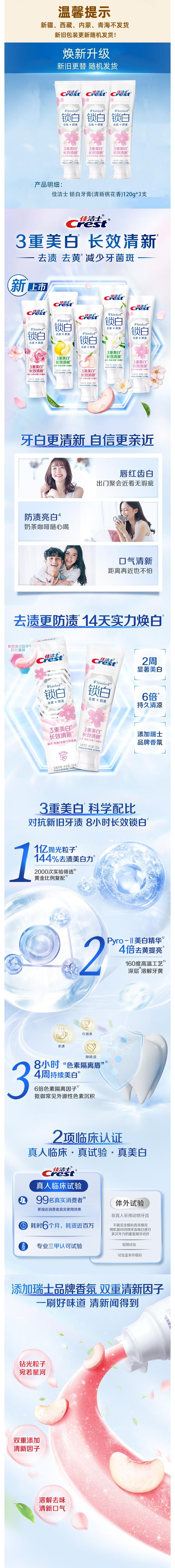 佳洁士 锁白牙膏(清恬樱花香)120g*3支 pg-sb03yh