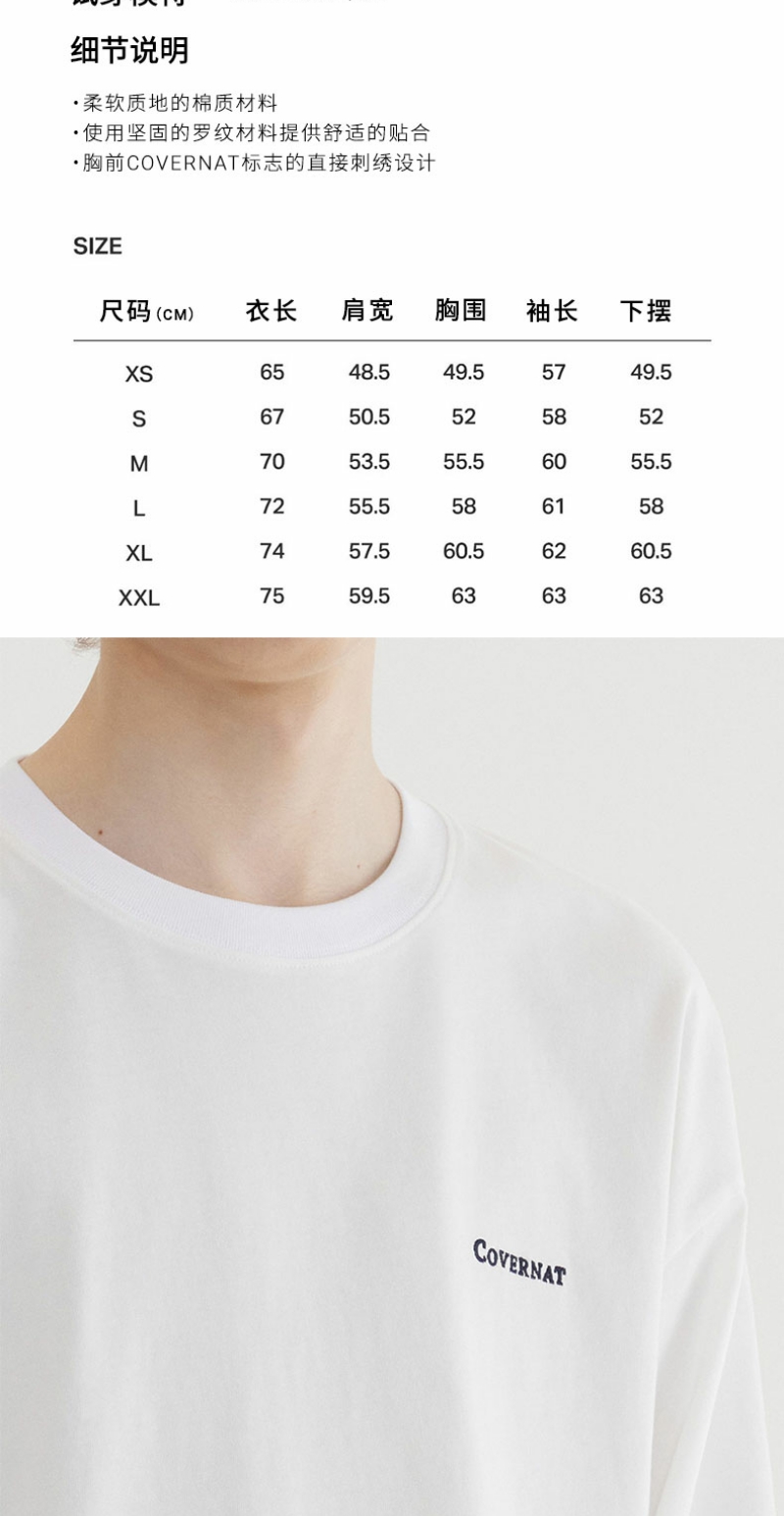 COVERNAT韩国潮牌酷感宽松长袖T恤简约百搭男女同款2025春夏新CO2501LT01