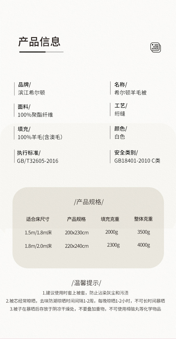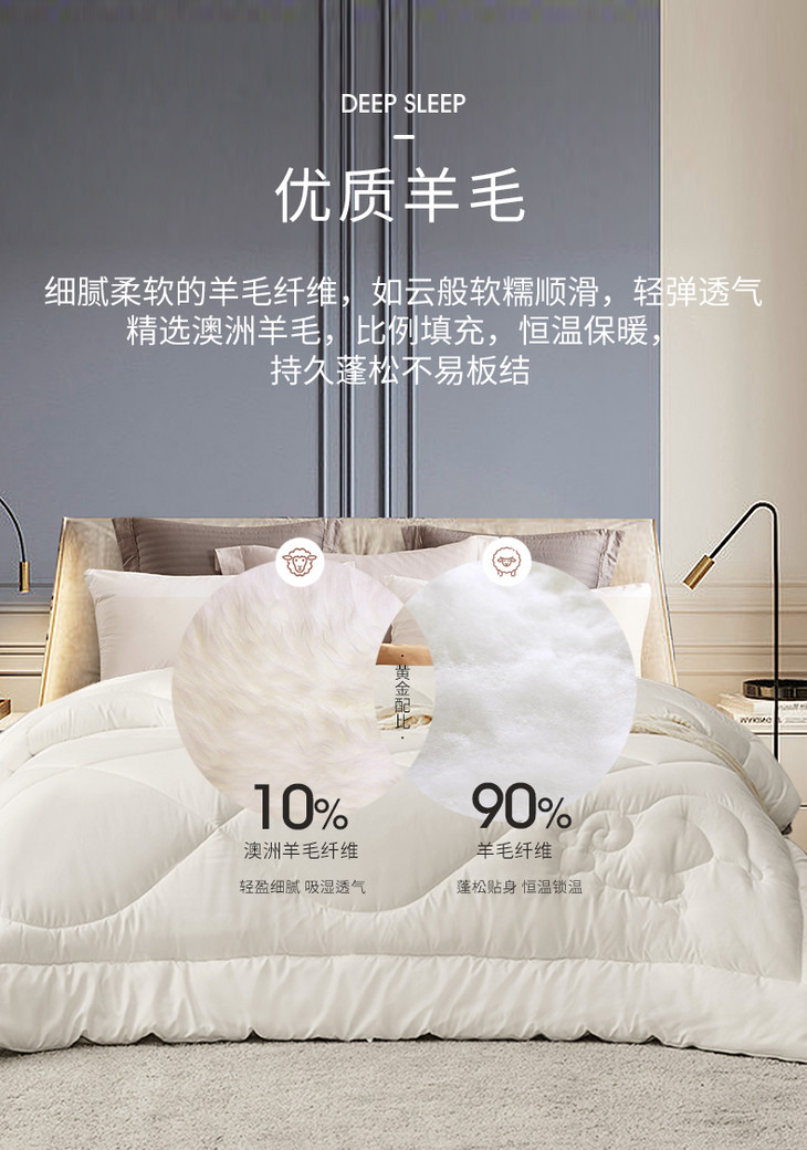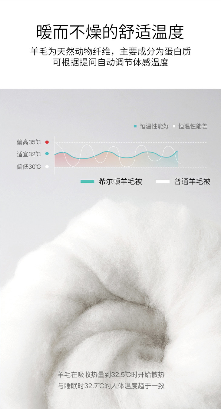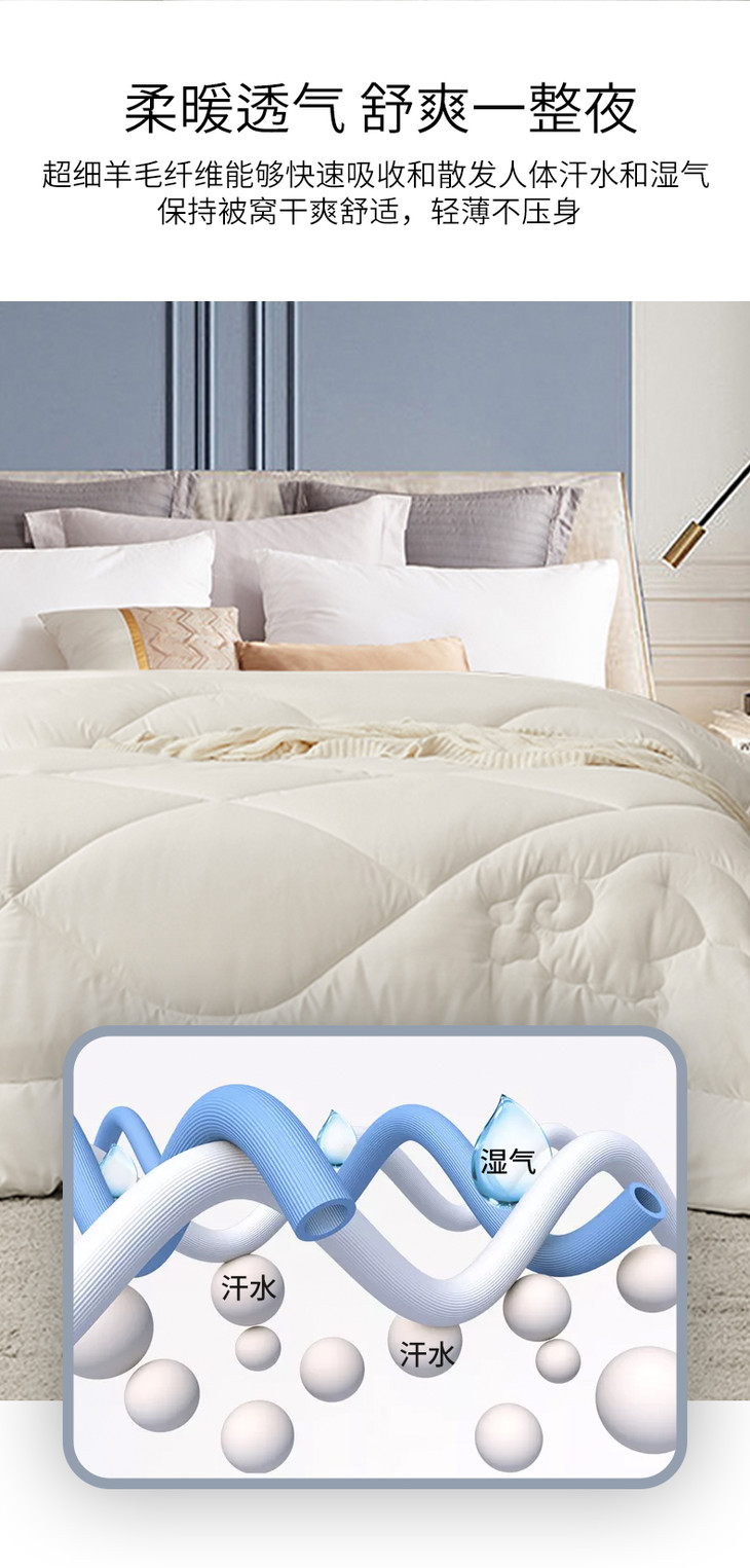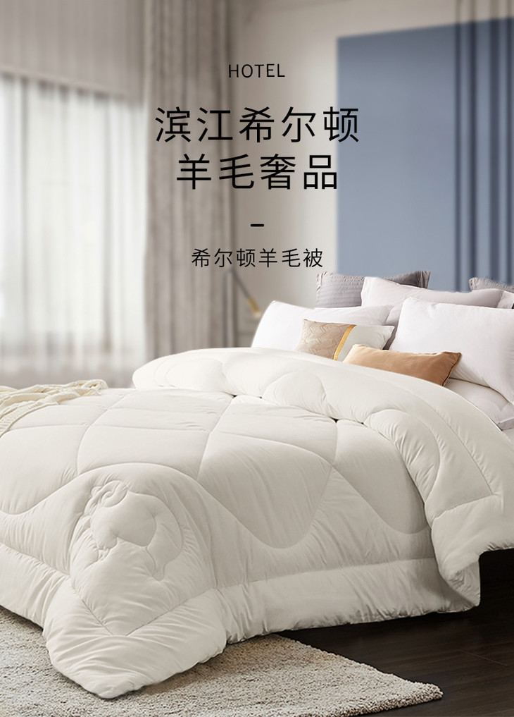 「希尔顿羊毛被」100%羊毛(含10%澳洲羊毛)暖而不燥柔软透气碳化处理高洁净无异味,还你五星睡眠