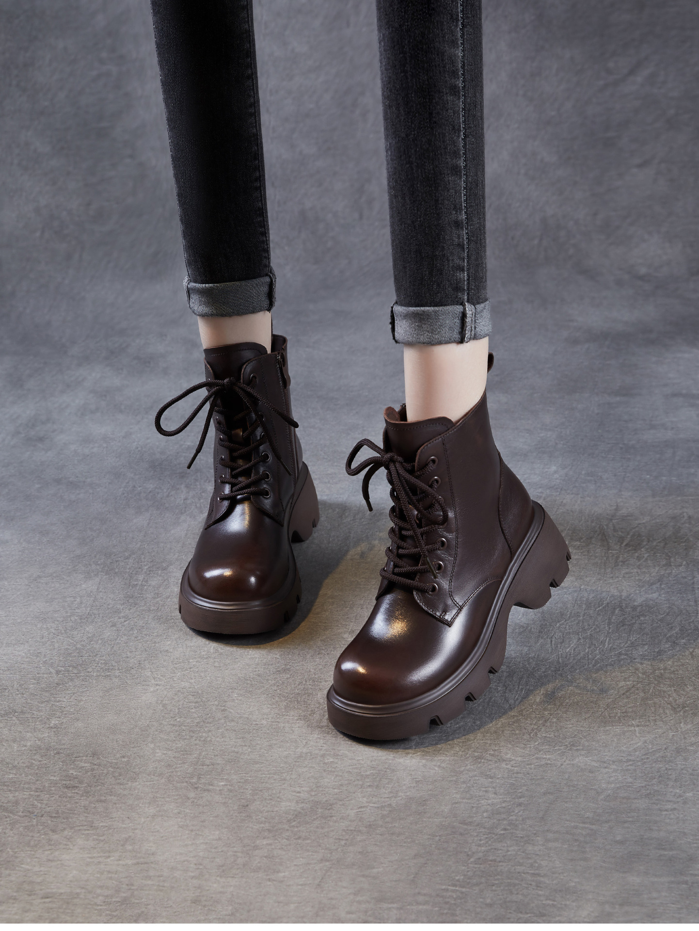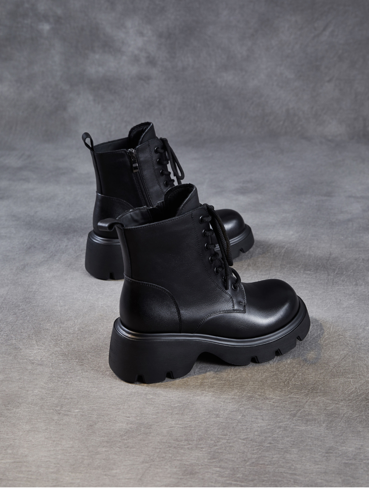 ZM 258705真皮厚底增高马丁靴英伦风复古系带经典小短靴 商品图0