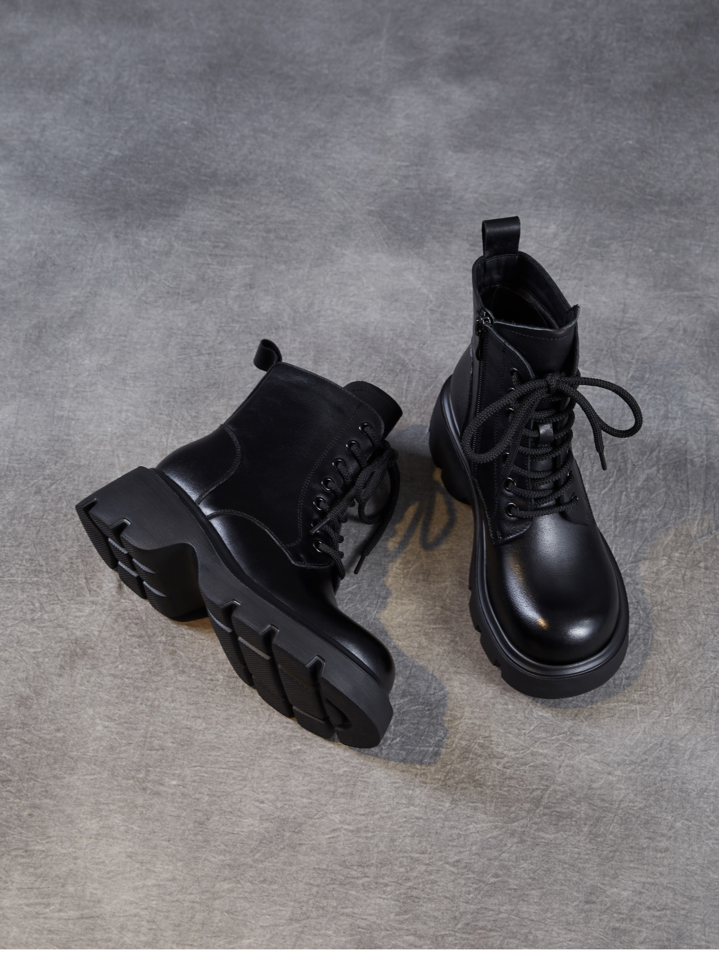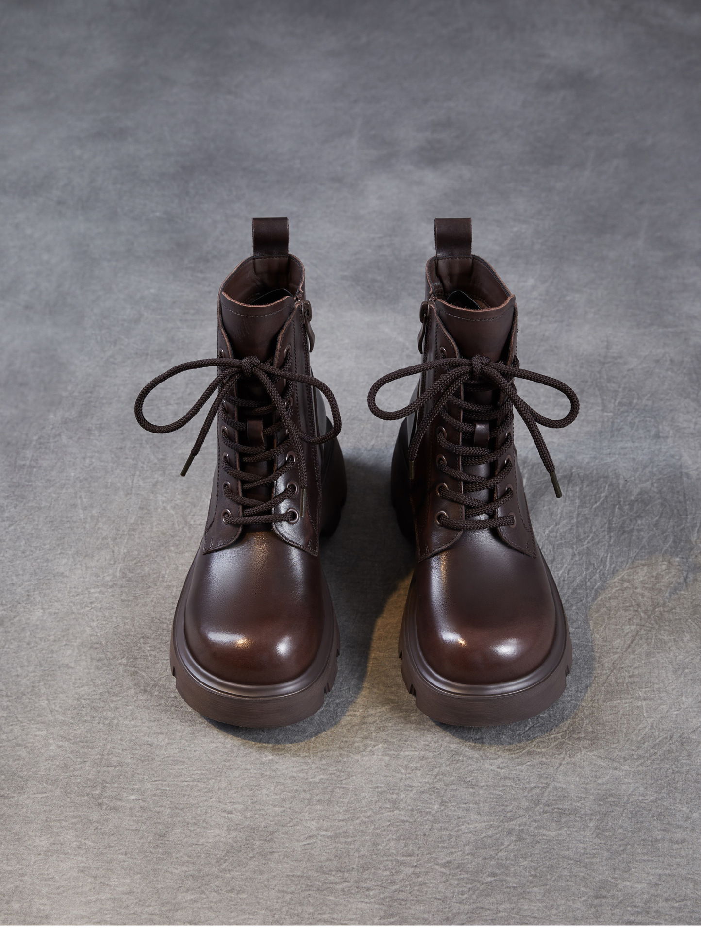 ZM 258705真皮厚底增高马丁靴英伦风复古系带经典小短靴 商品图1
