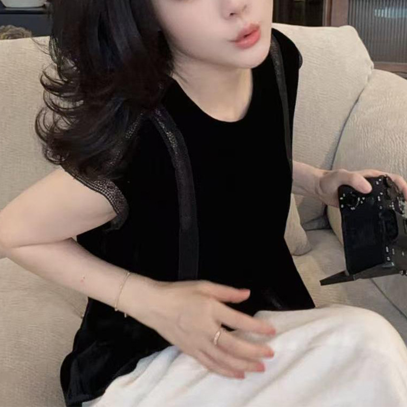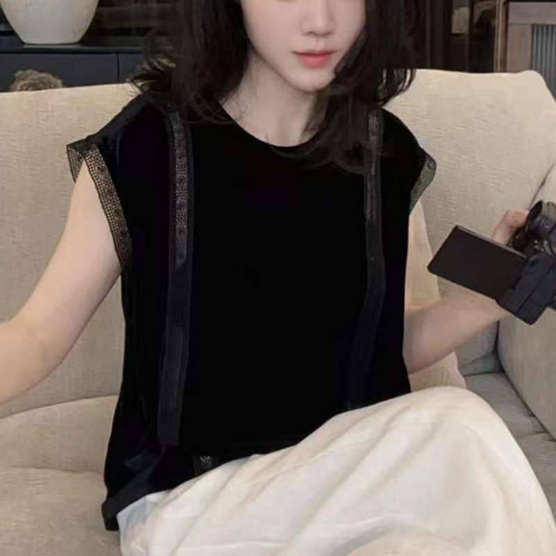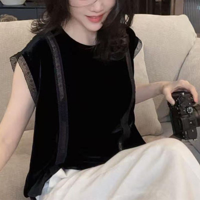MZ法式气质蕾丝镂空丝绒短袖上衣女装2025夏季新款休闲衬衫百搭小衫