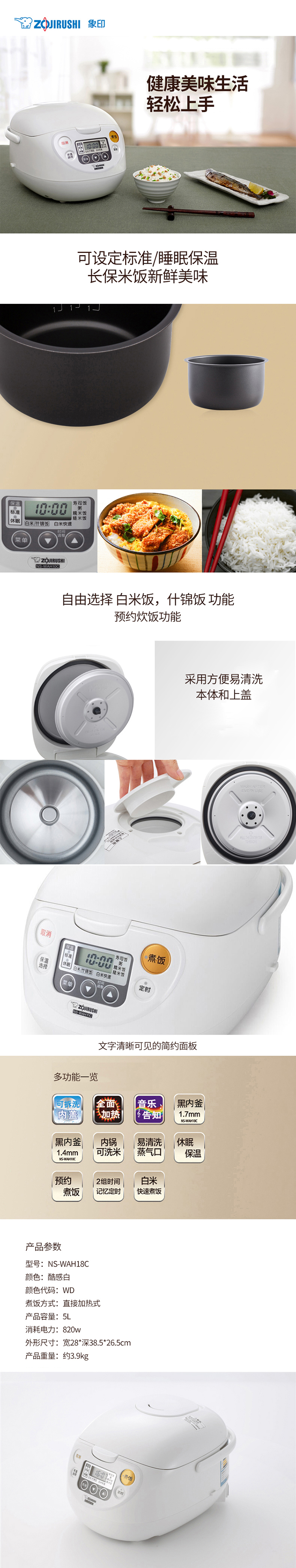 象印微电脑电饭煲 NS-WAH18C