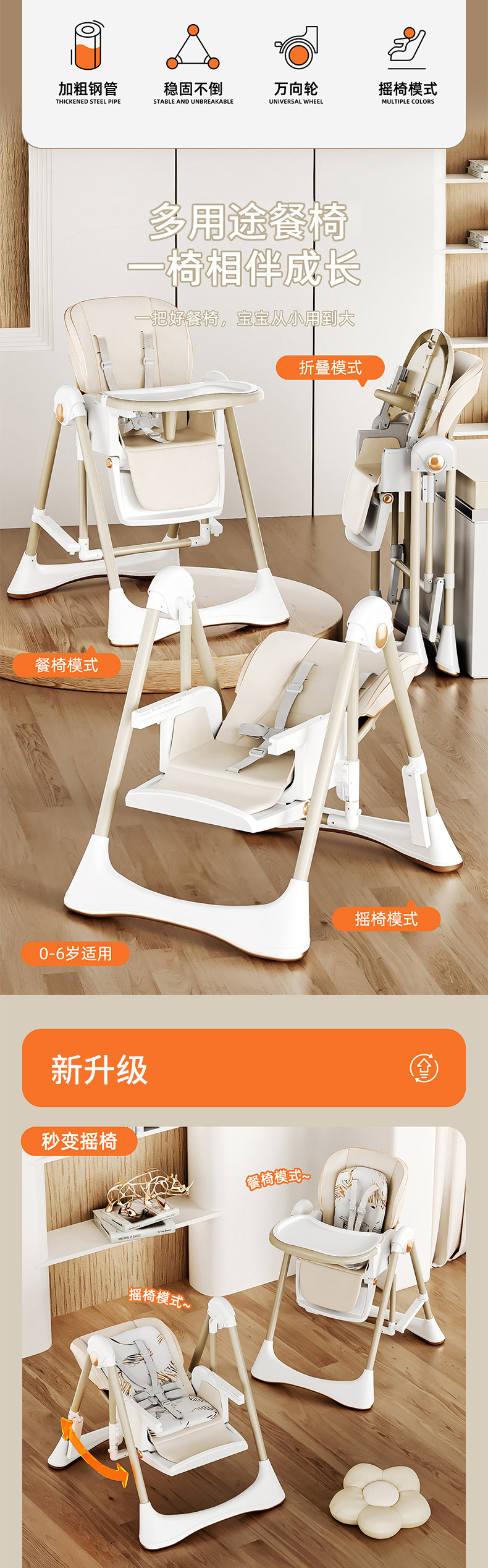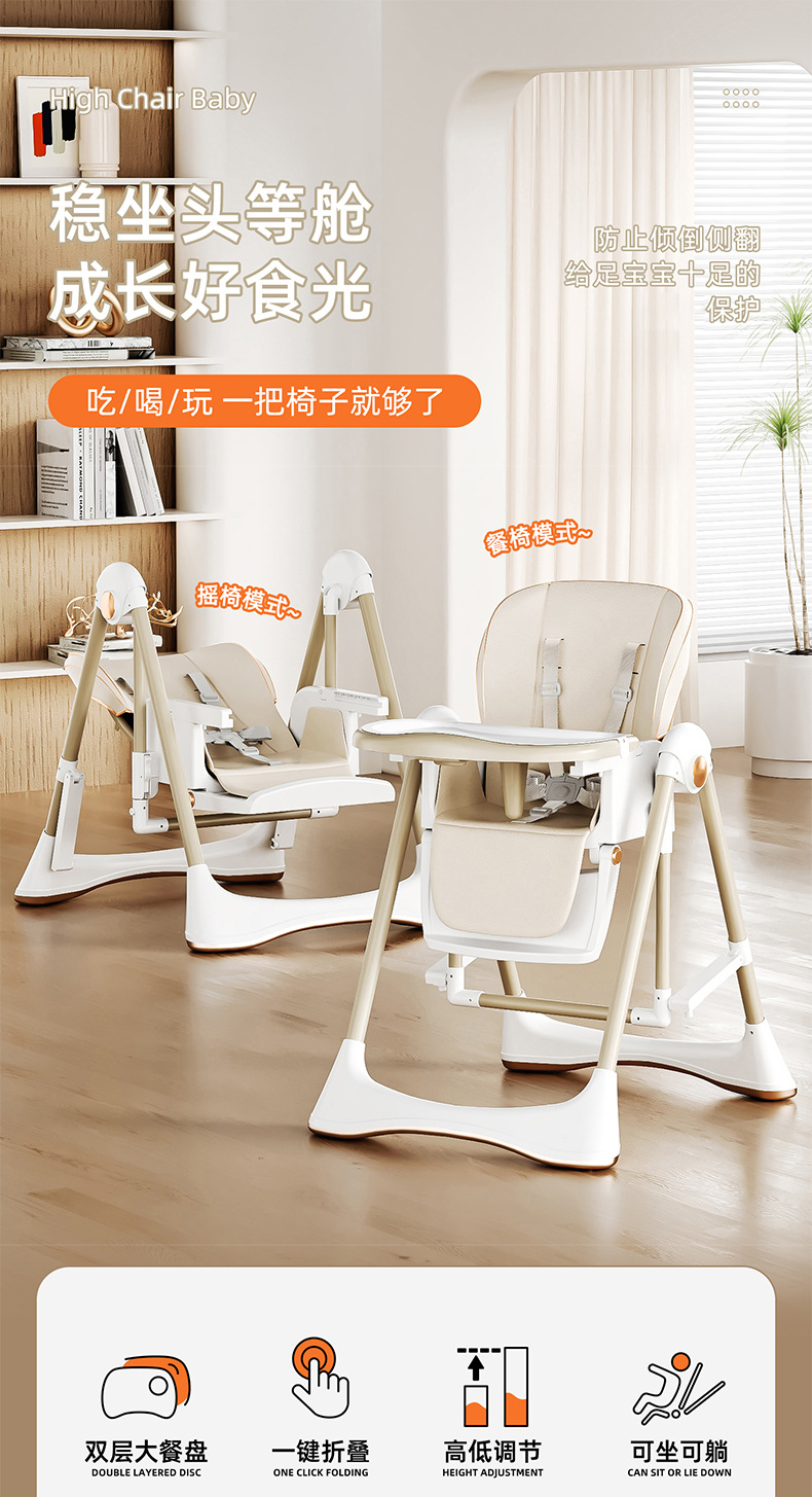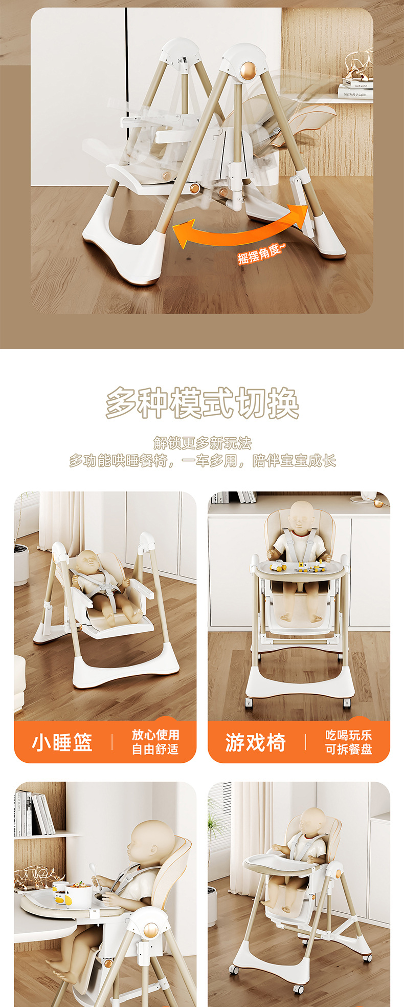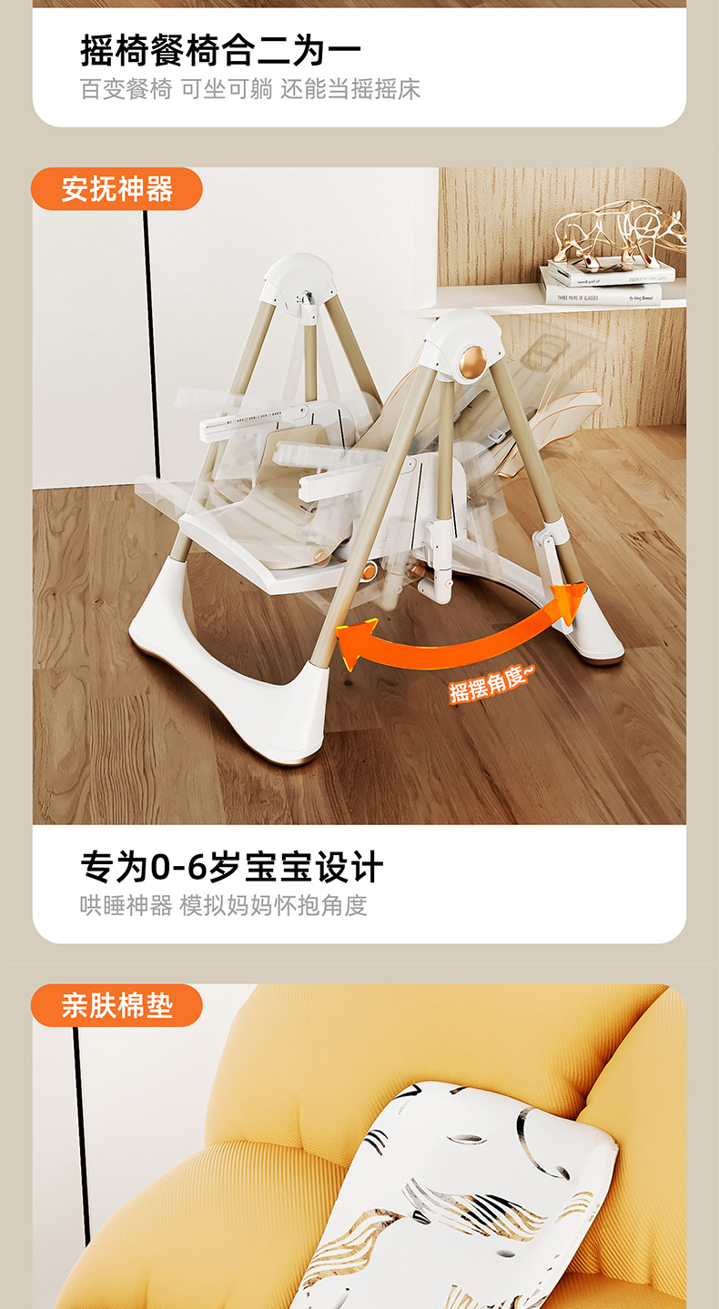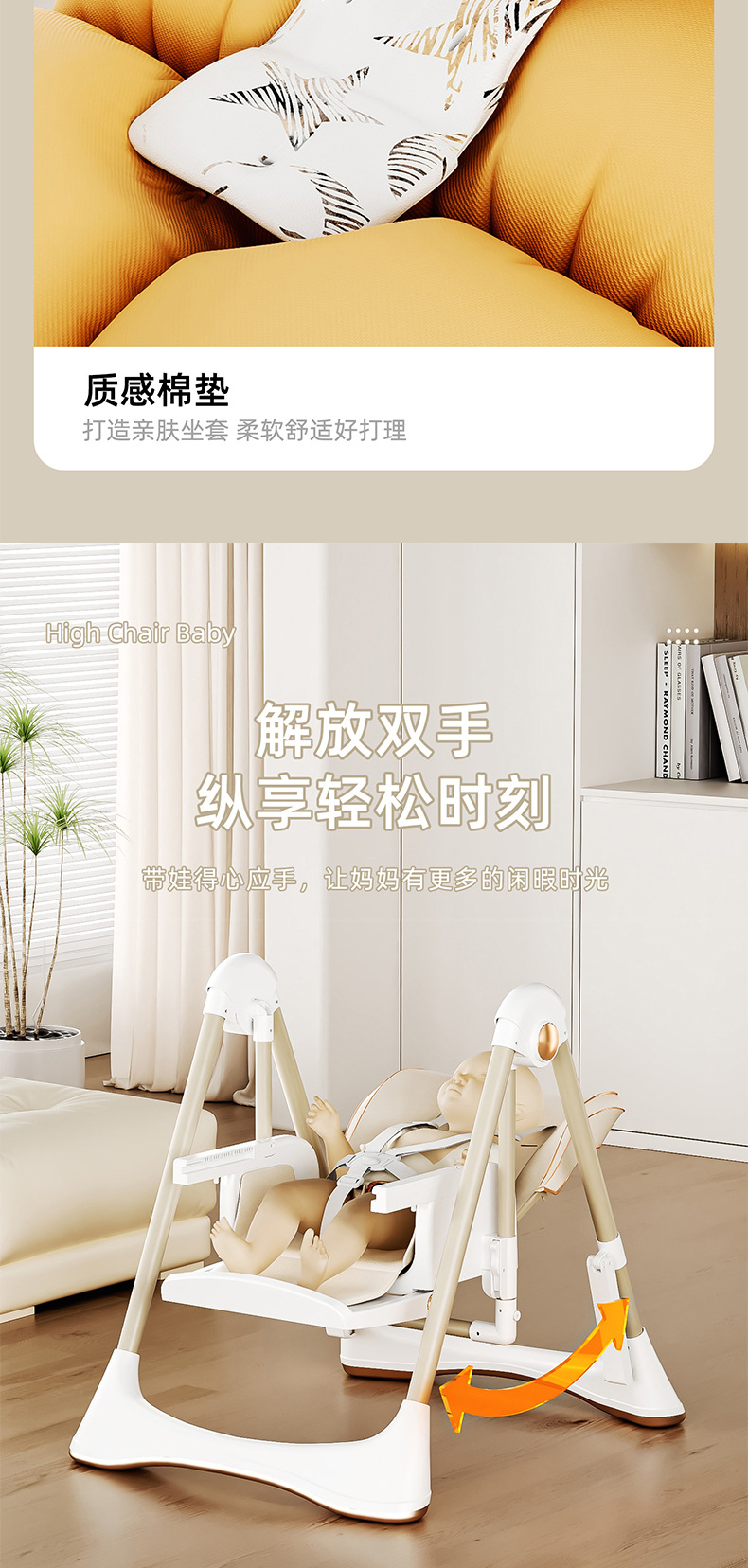 【宝宝“头等舱”,多功能餐椅】秋千餐椅摇椅餐椅 可折叠幼婴儿童餐桌摇篮二合一 学坐椅摇摇椅-QQ