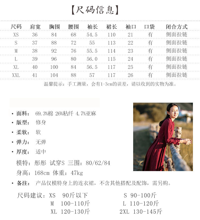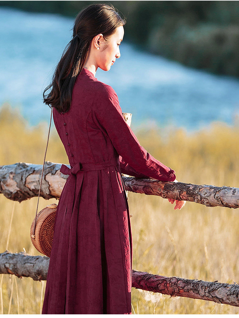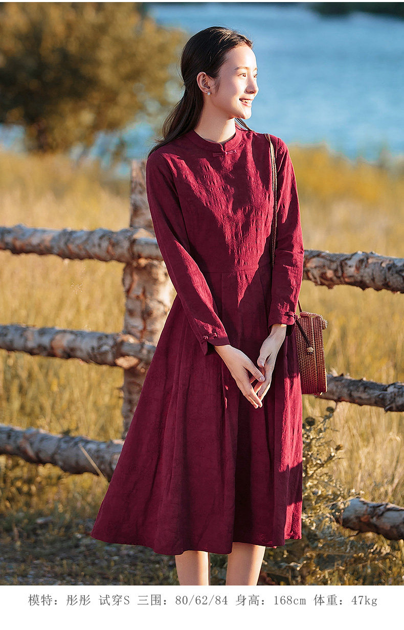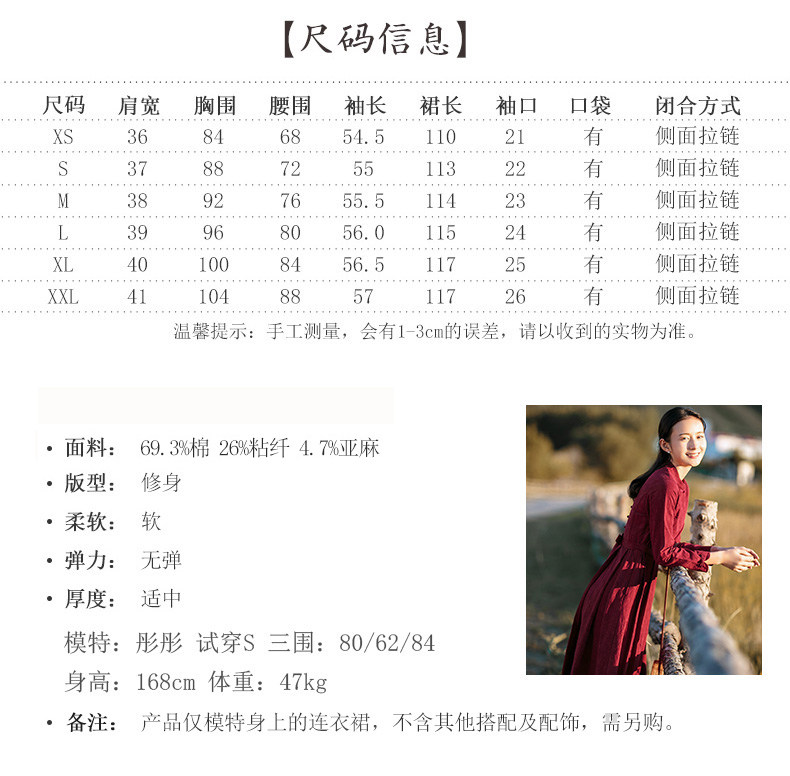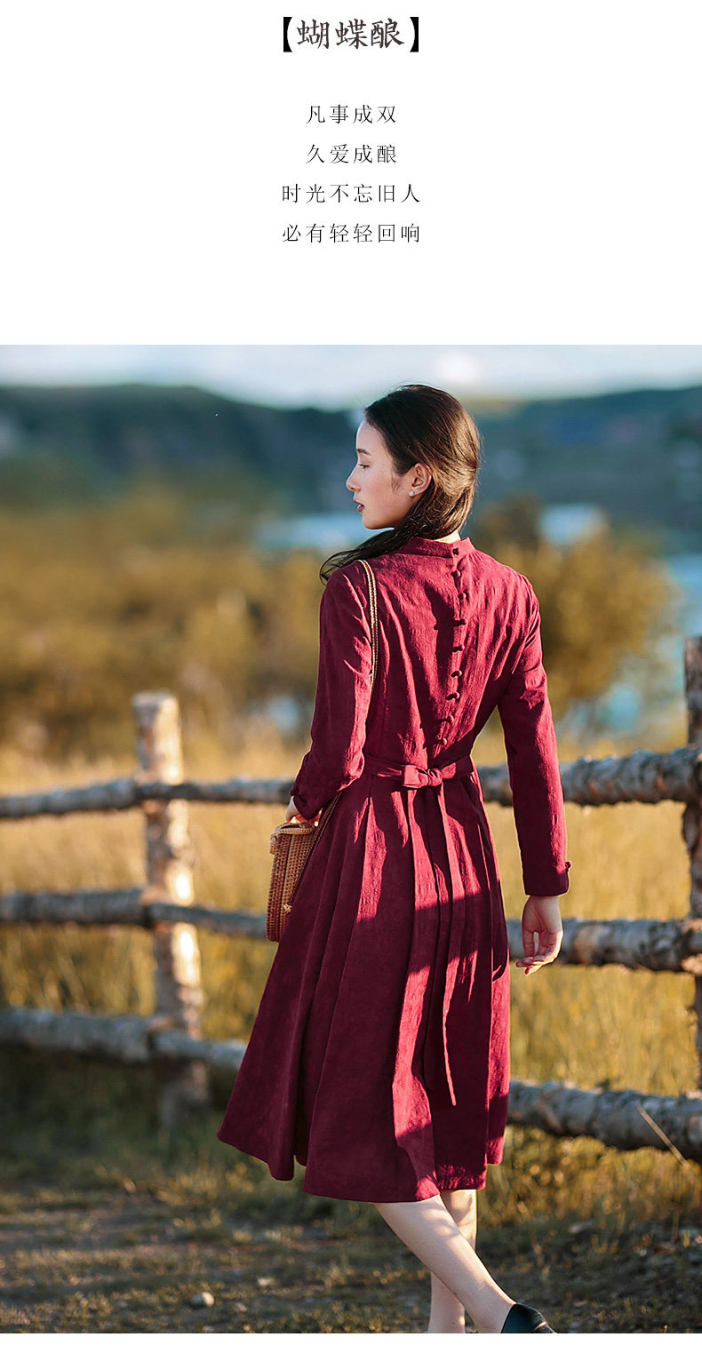 红色棉麻连衣裙中长款女装2025秋装新款春秋休闲气质长袖裙子