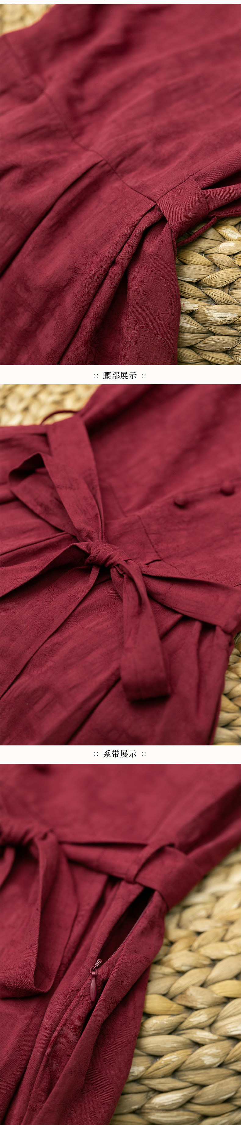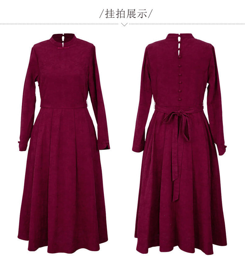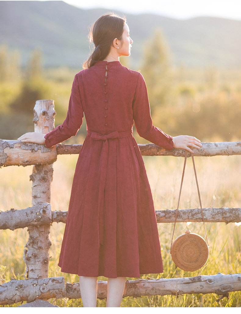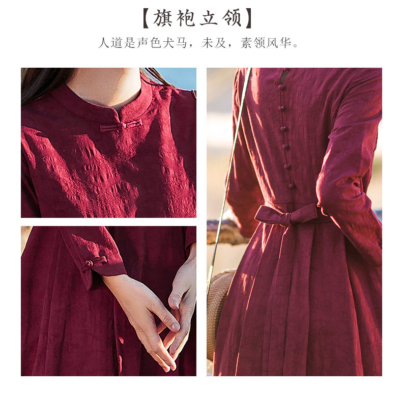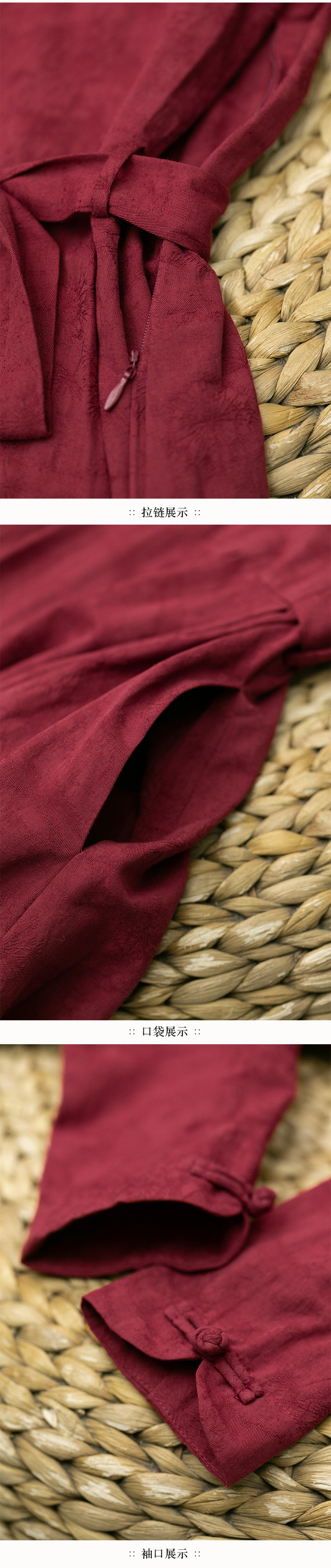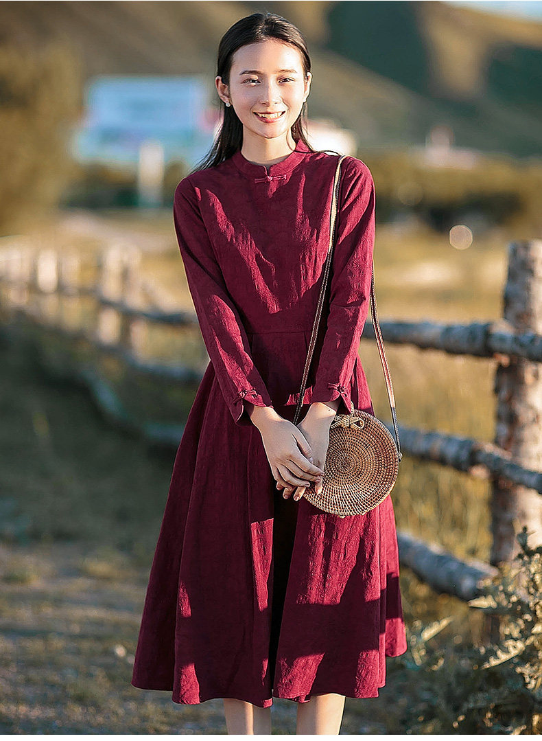 红色棉麻连衣裙中长款女装2025秋装新款春秋休闲气质长袖裙子