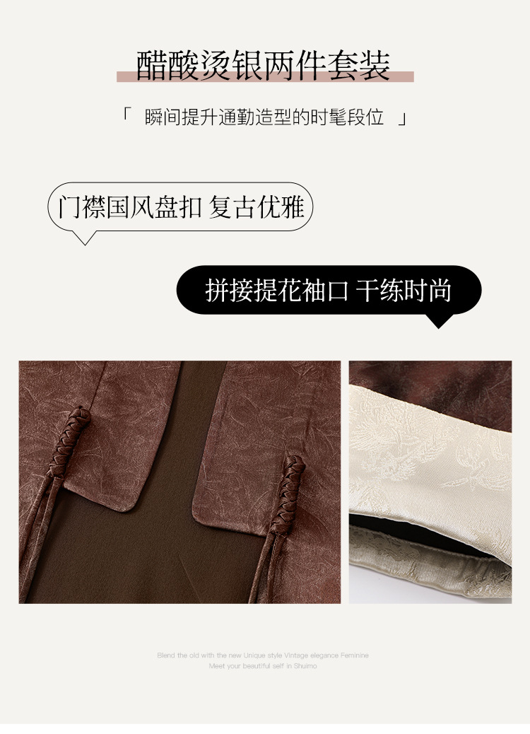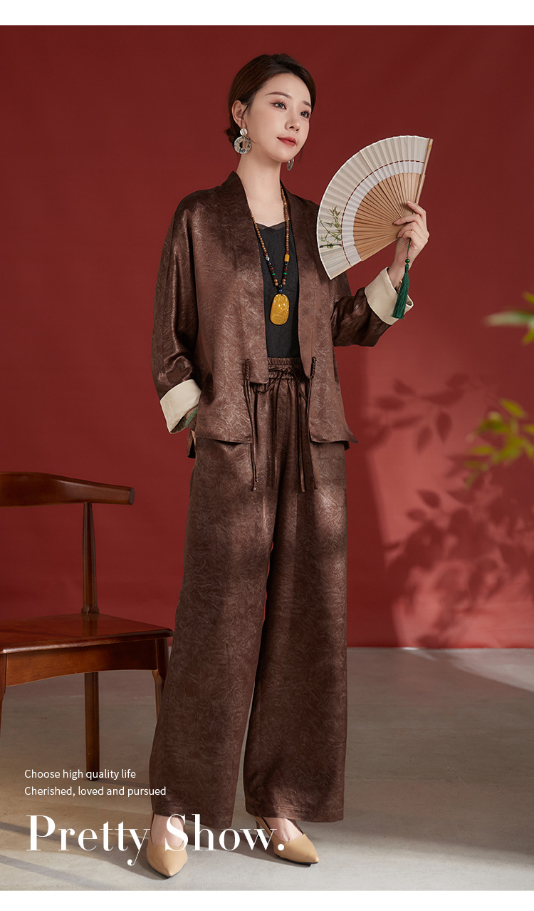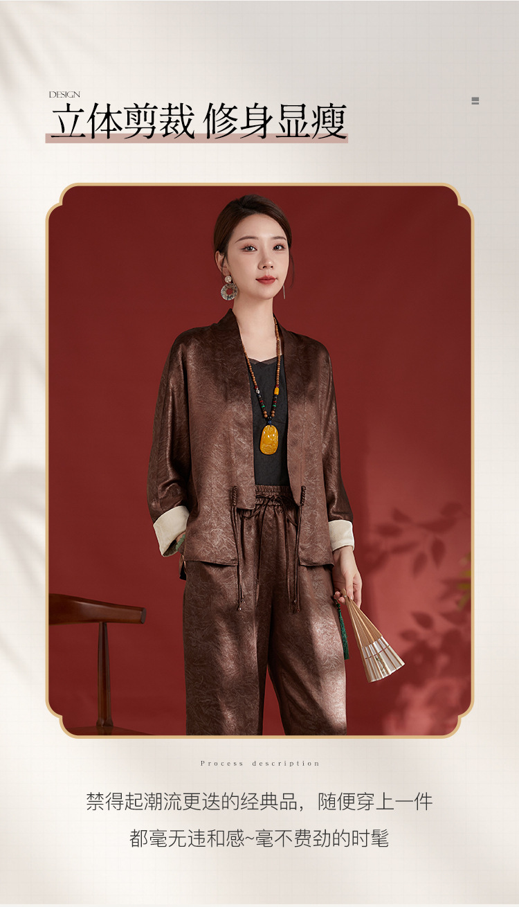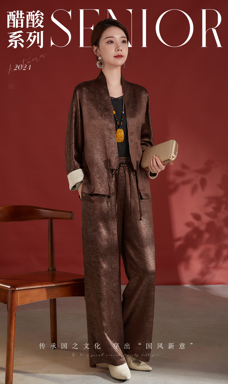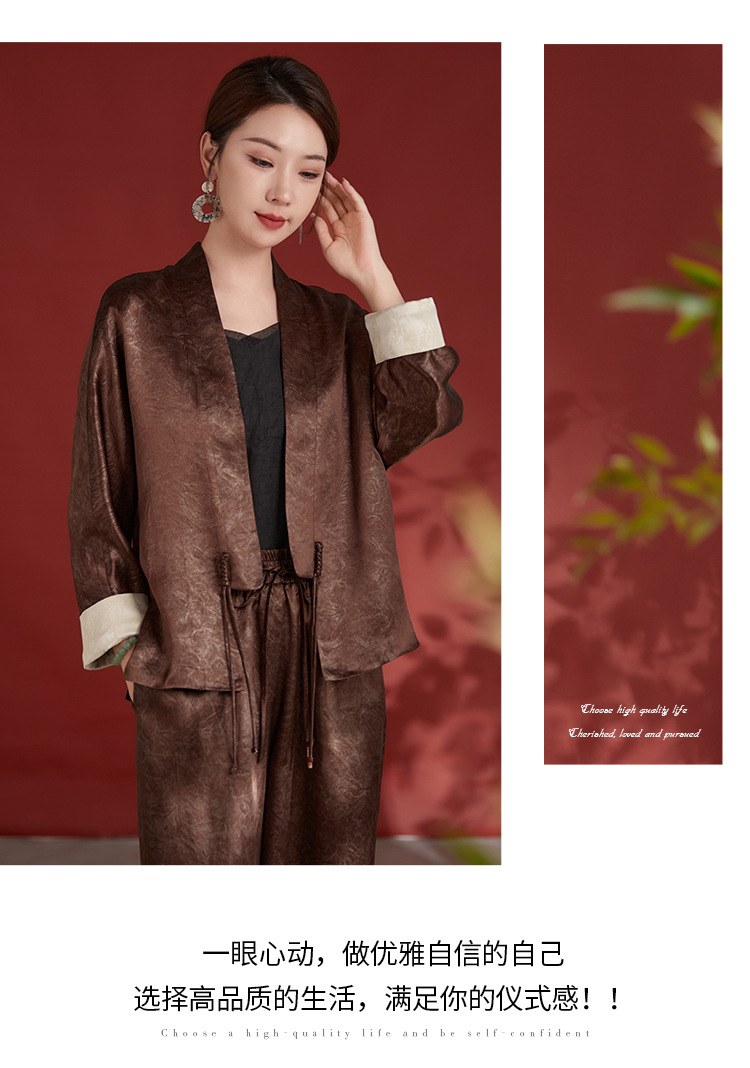 雀说新中式醋酸外套女高级垂感国风休闲套装62498038