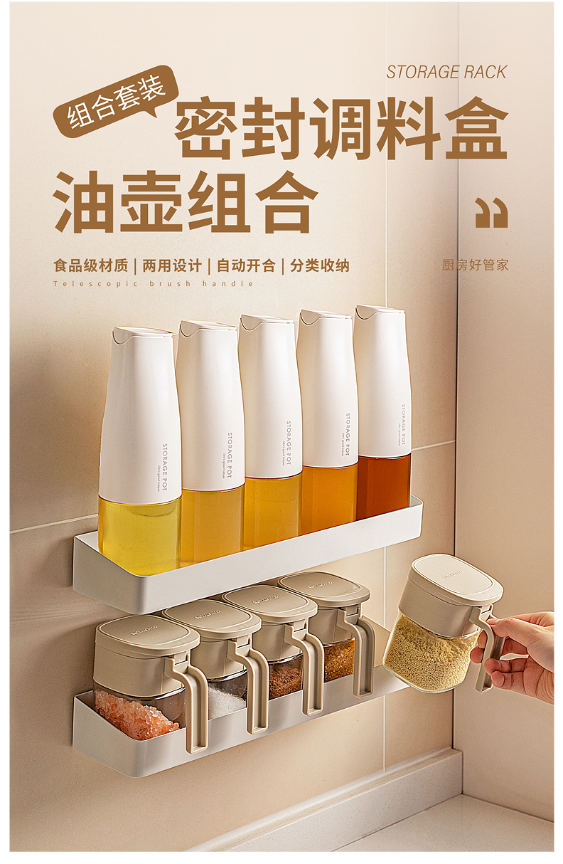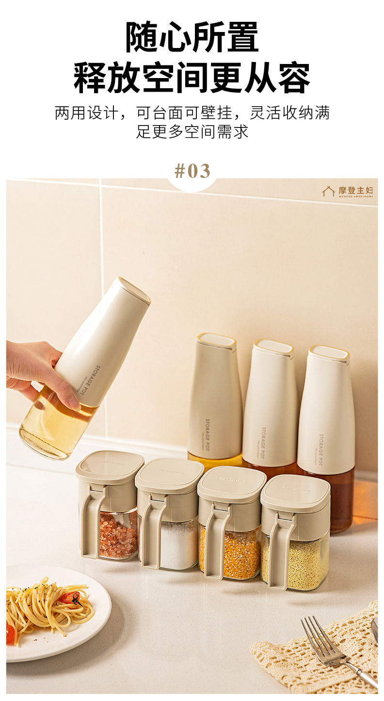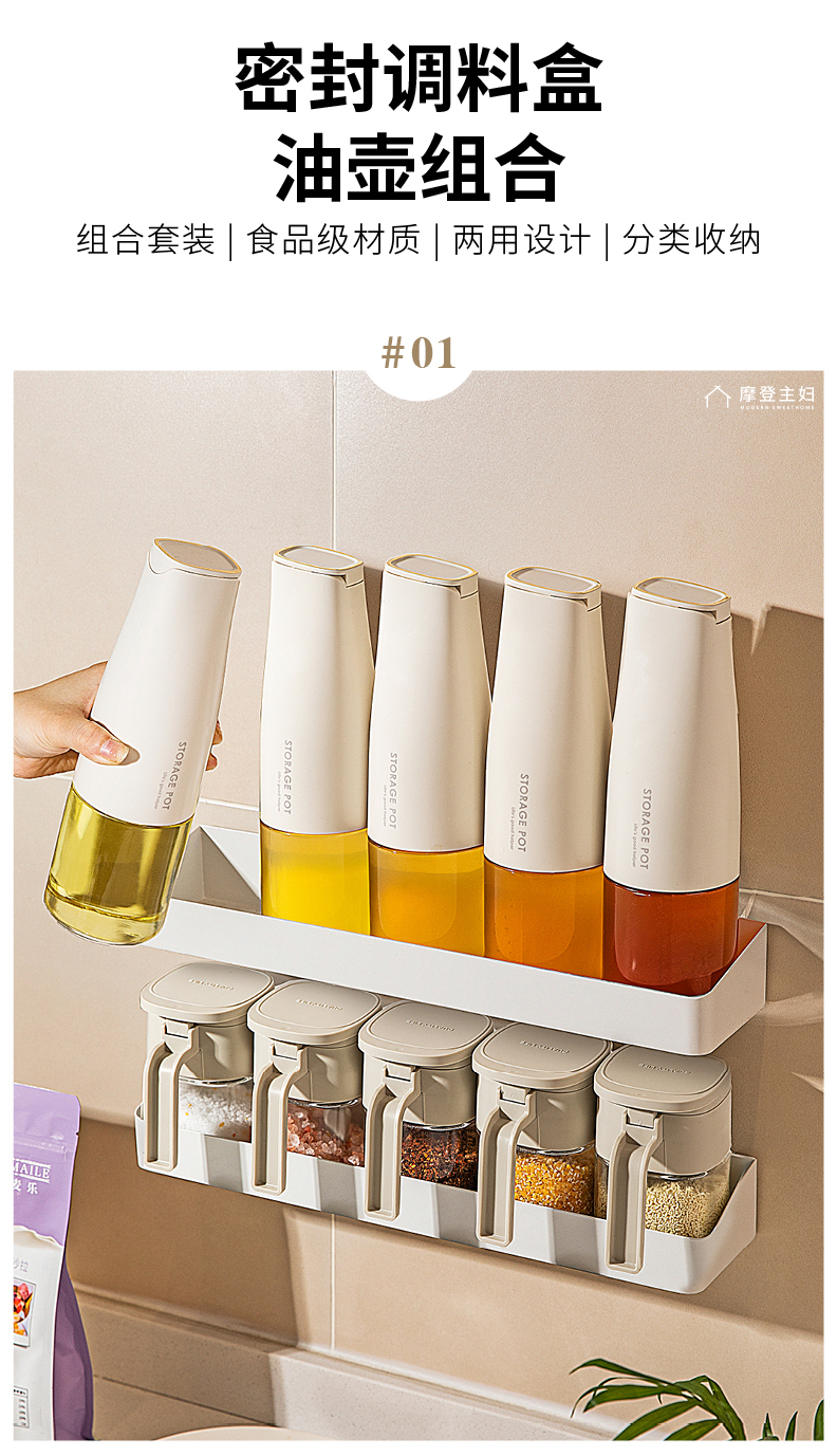 摩登主妇调料盒厨房密封调味料罐盐罐壁挂收纳盒油壶调料组合套装