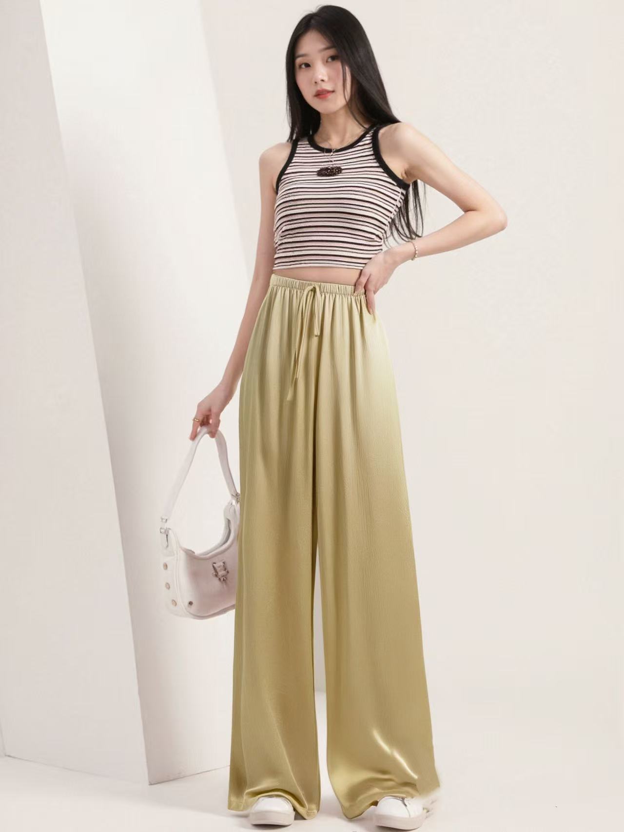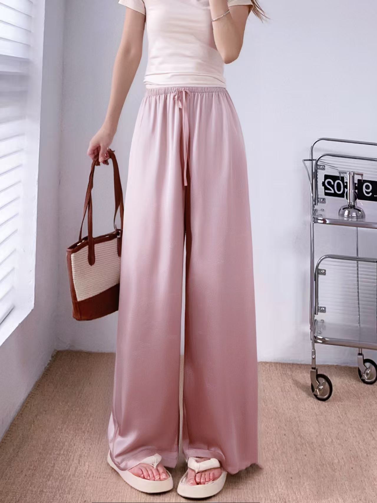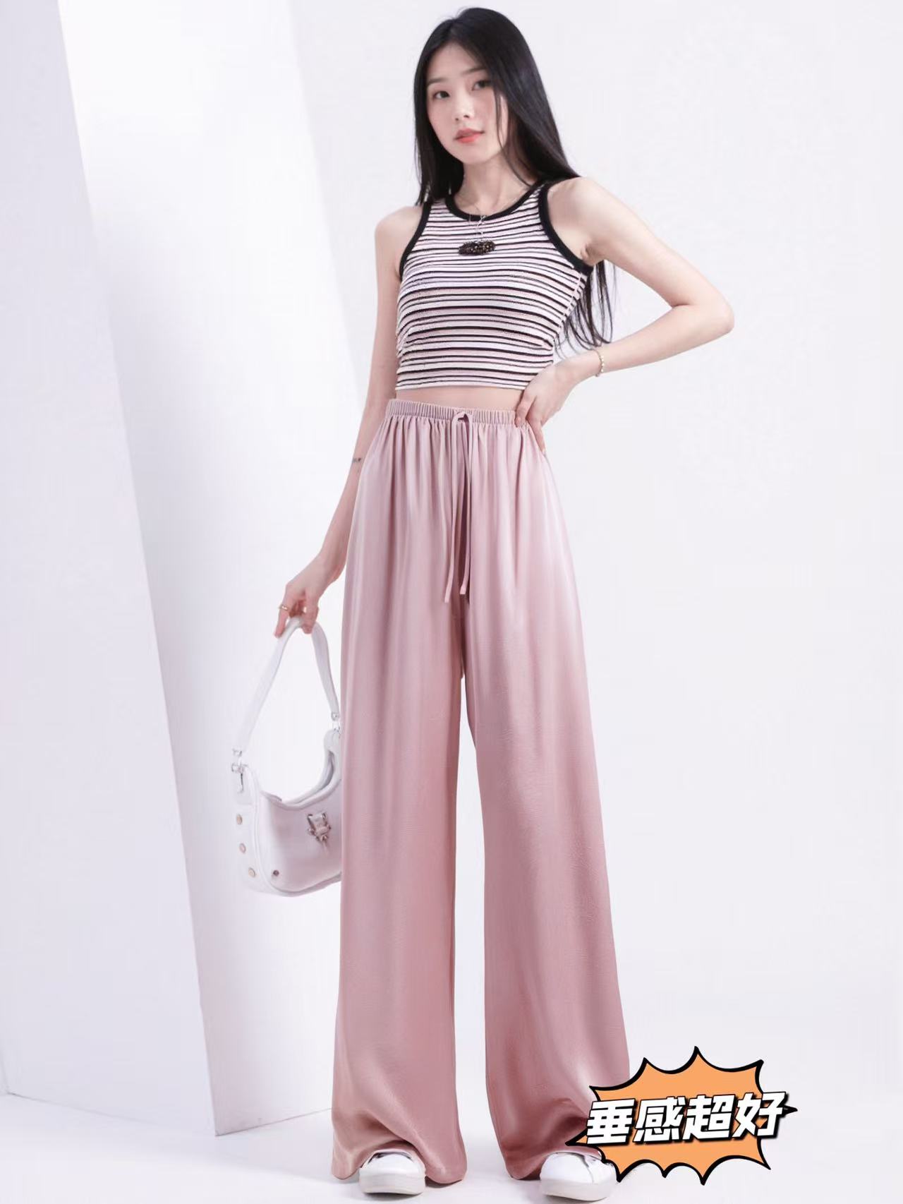 8.10秒杀~超垂 手抓文5891仿醋酸缎面超垂感休闲裤-喜出