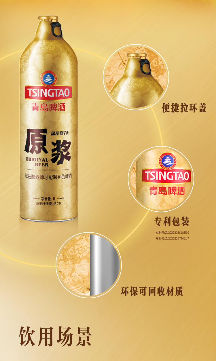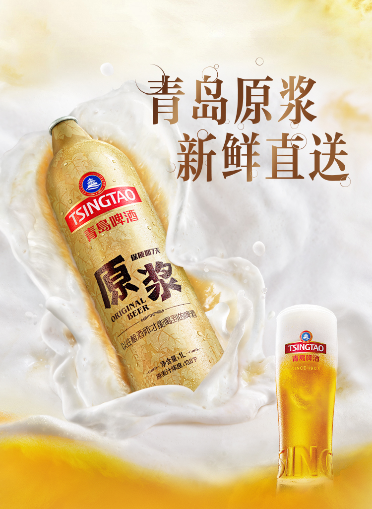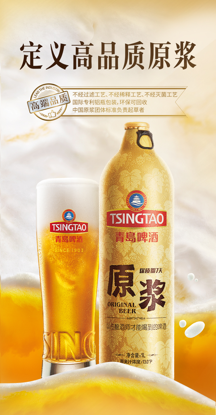 【新鲜上市】青岛啤酒原浆13度1L*4桶啤