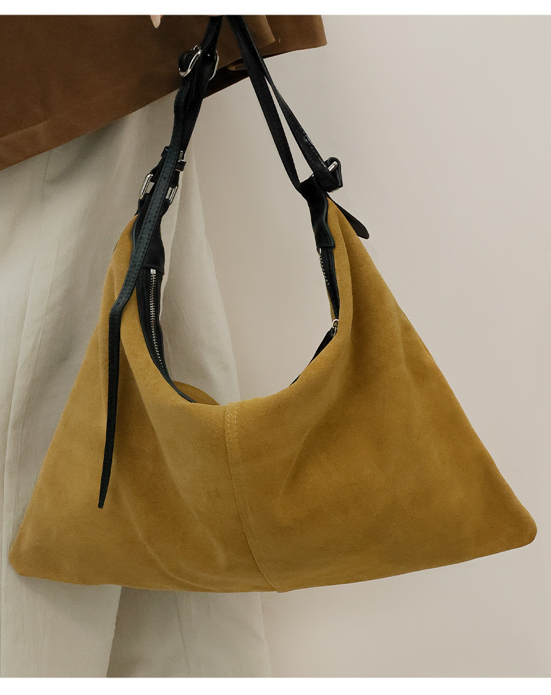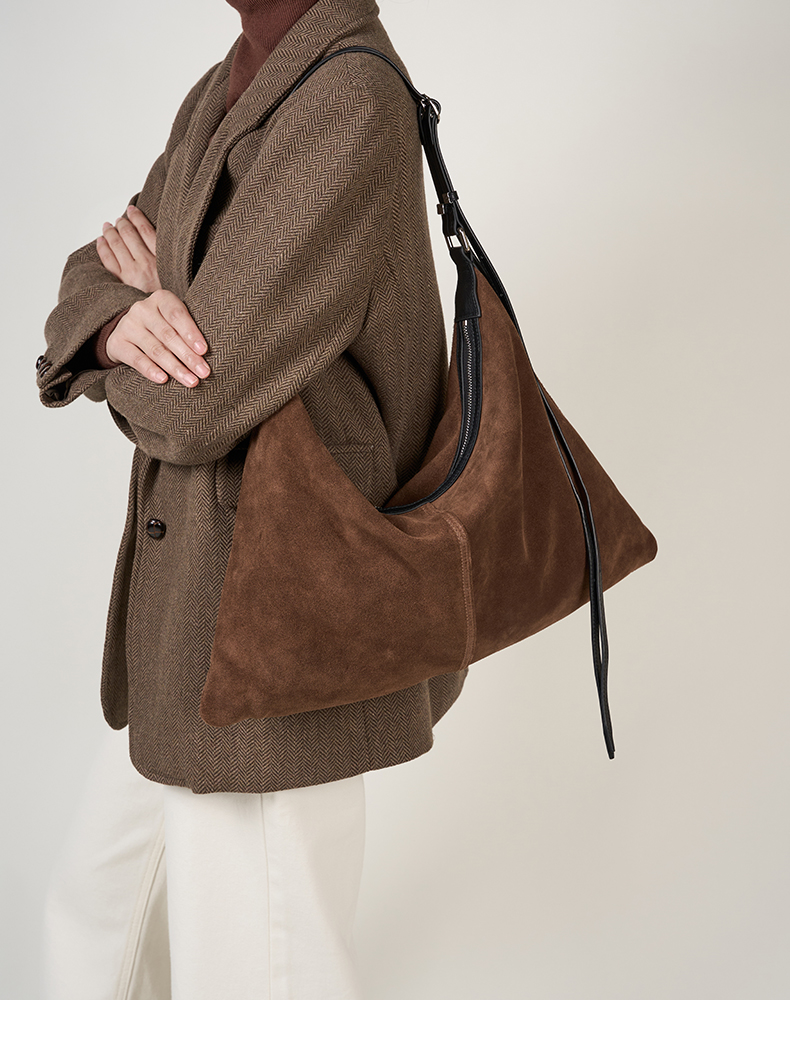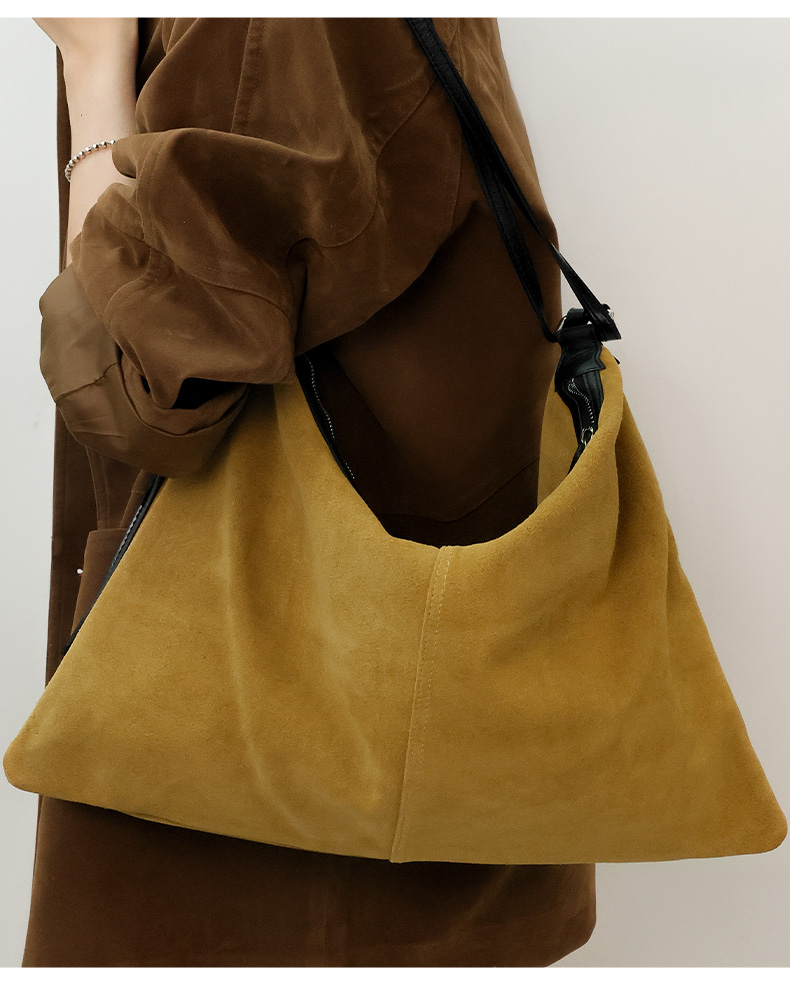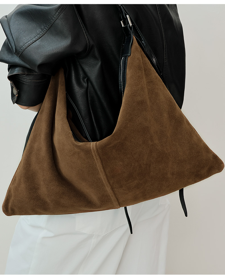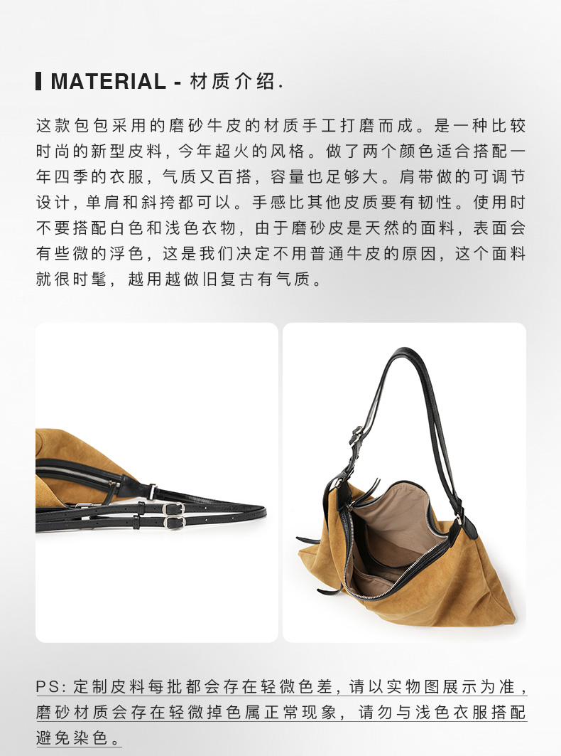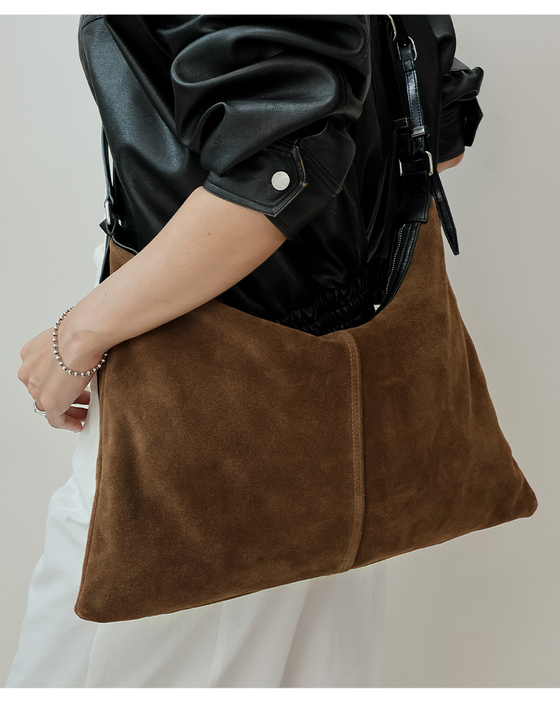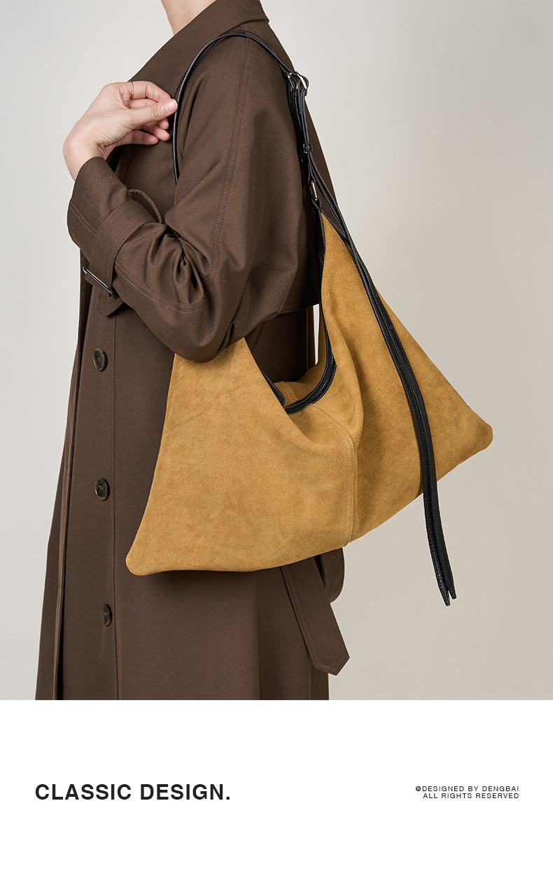登白DENGBAI 高丝光反绒牛皮配头层牛皮百搭单肩斜挎包9911