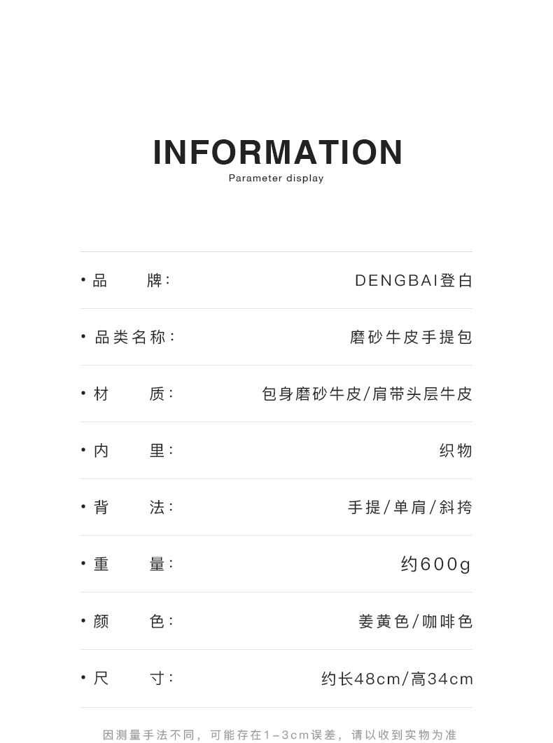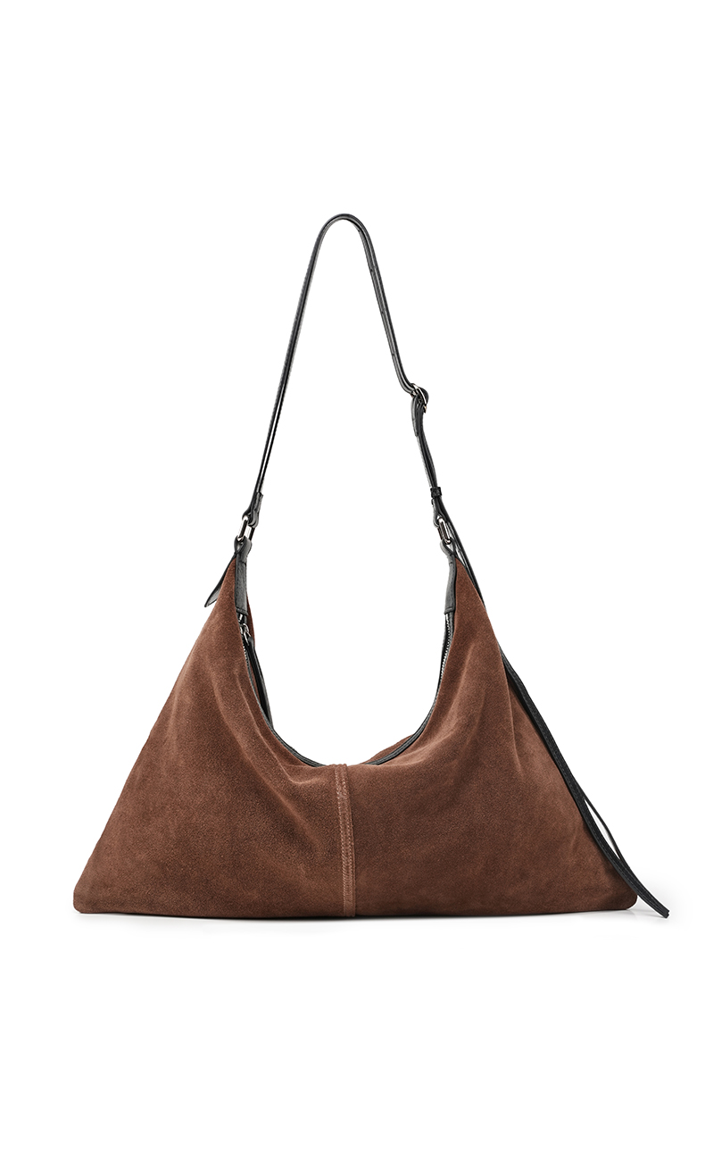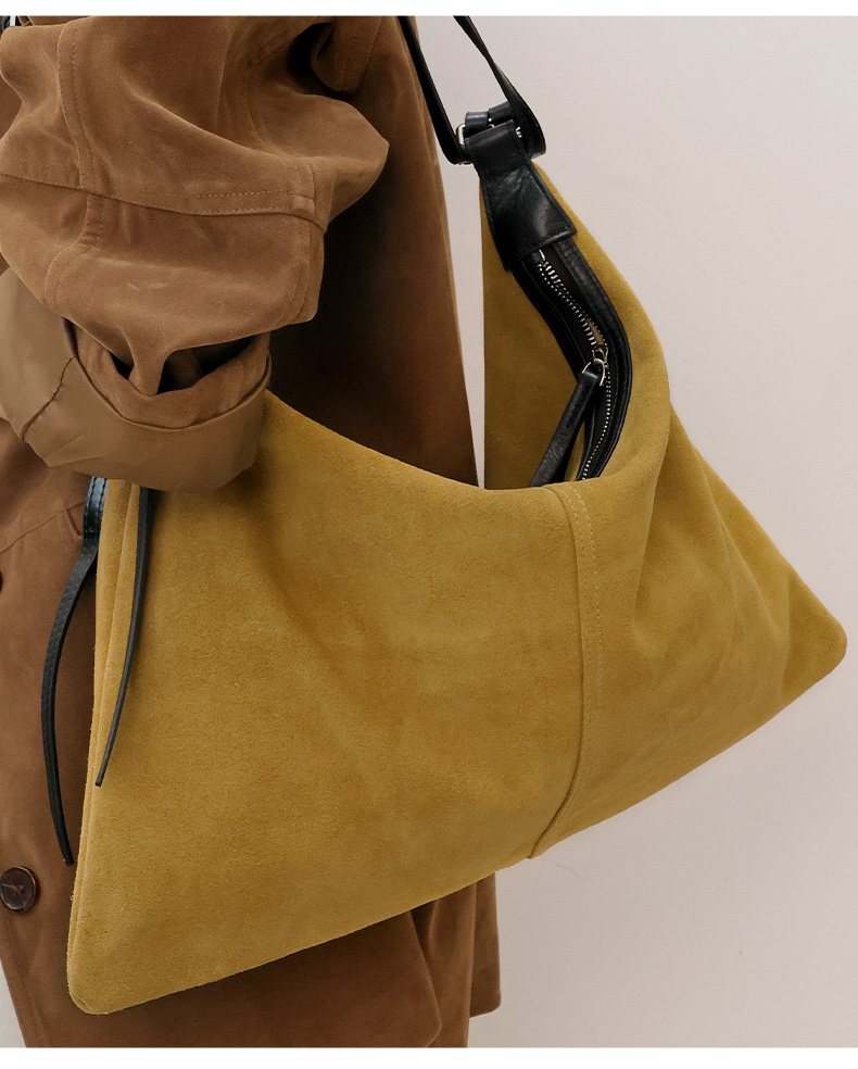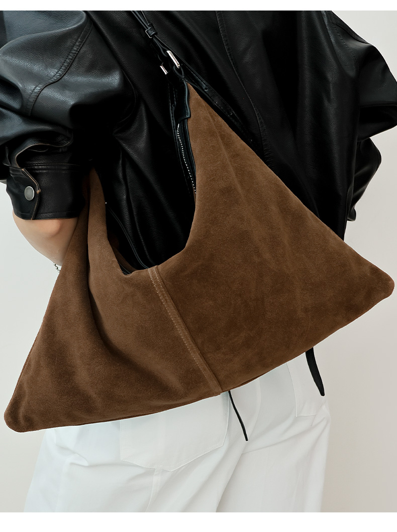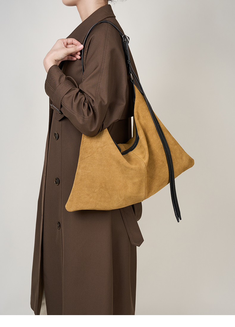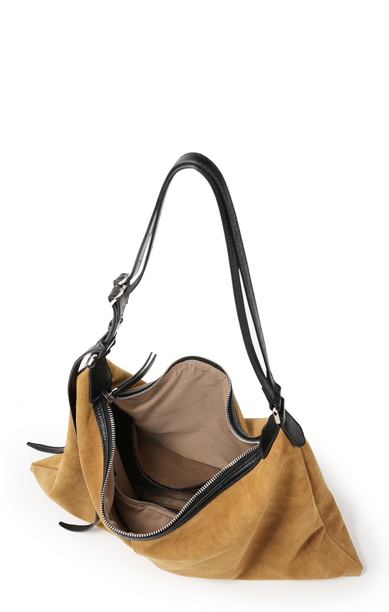 登白DENGBAI 高丝光反绒牛皮配头层牛皮百搭单肩斜挎包9911