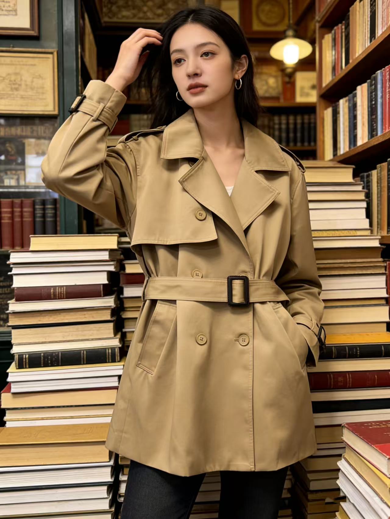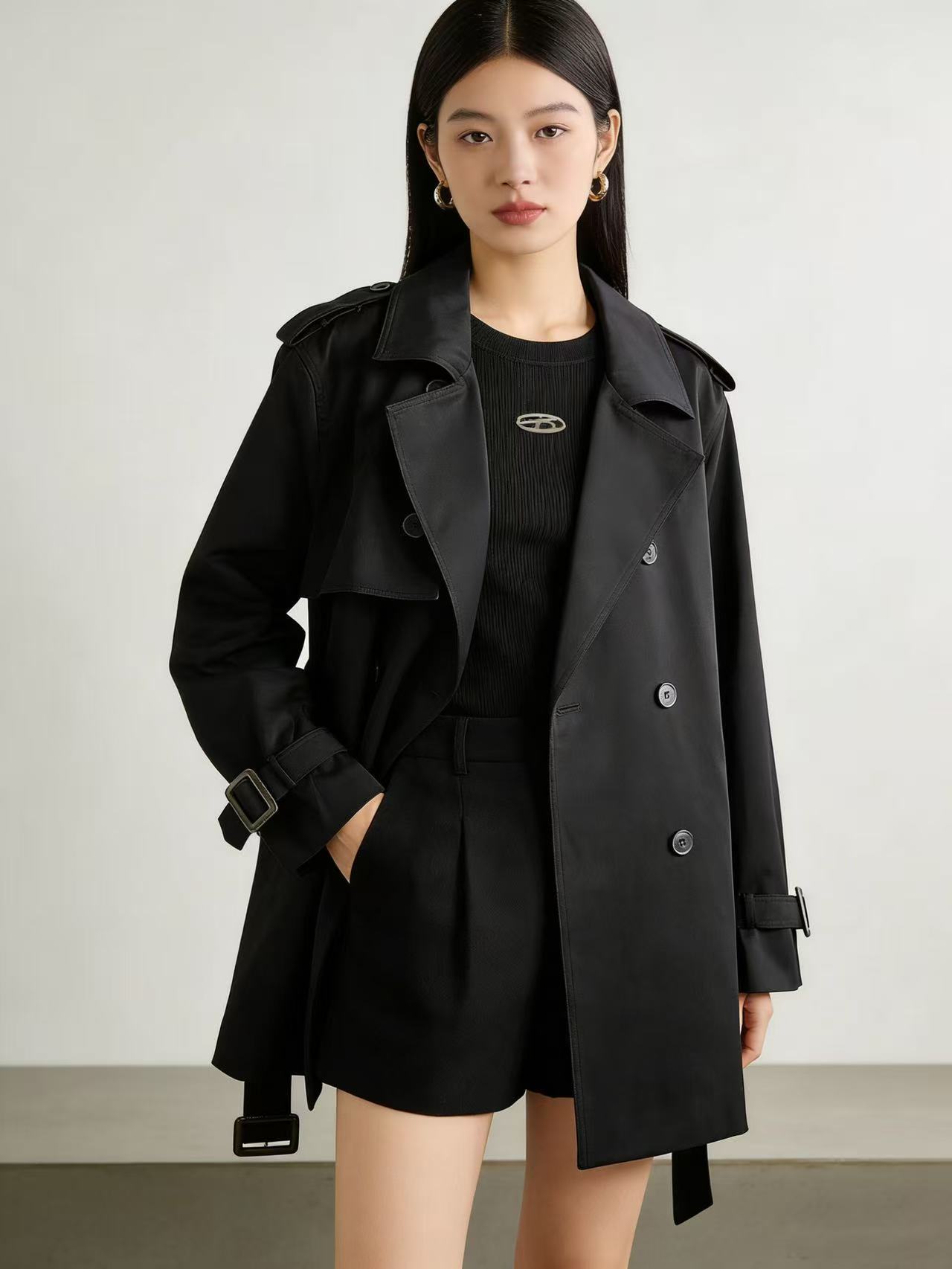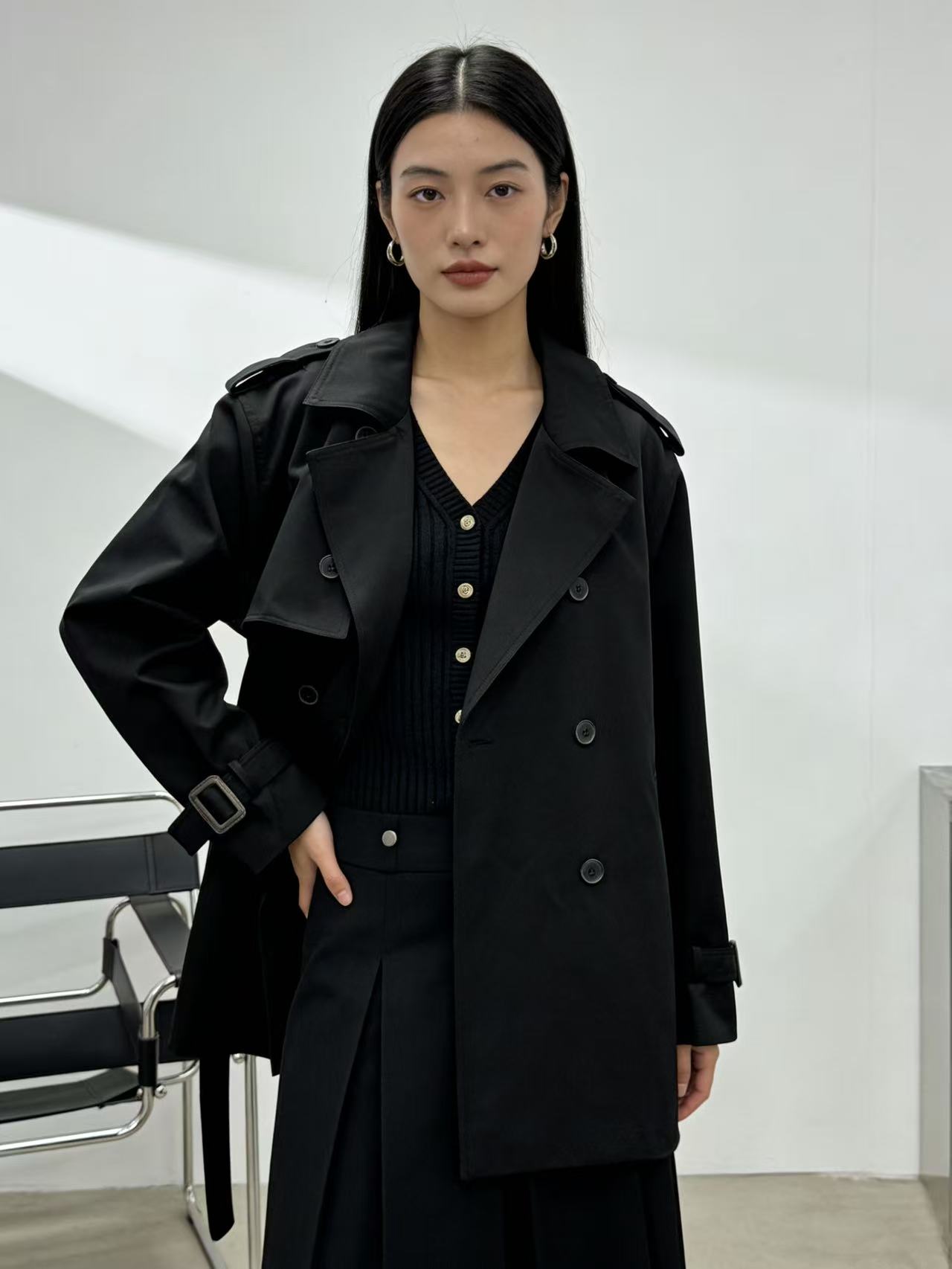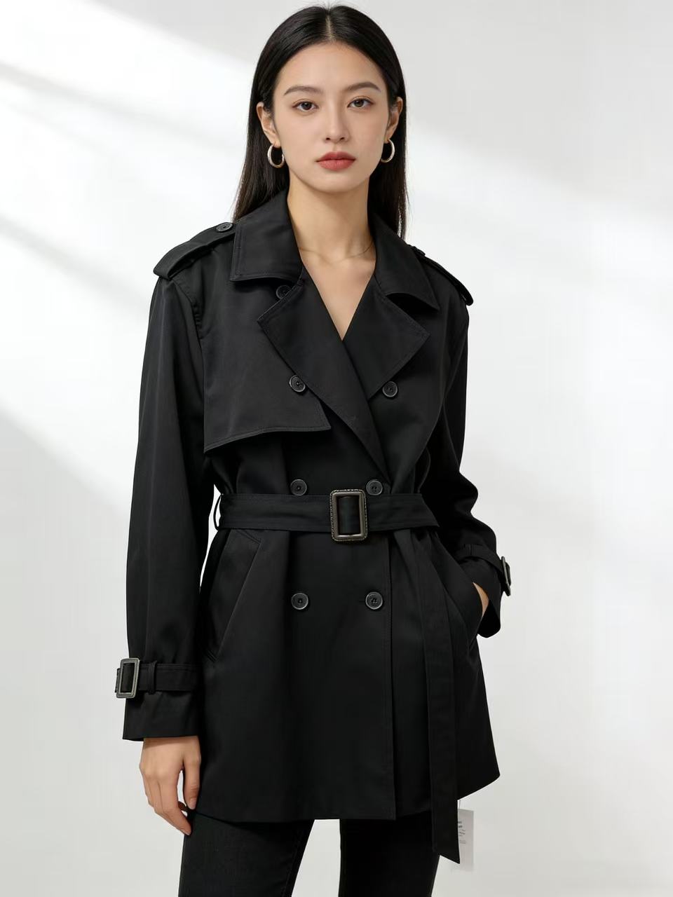 活动爆款【自营】衣周期~T18英伦风双排扣风衣中长外套-喜出