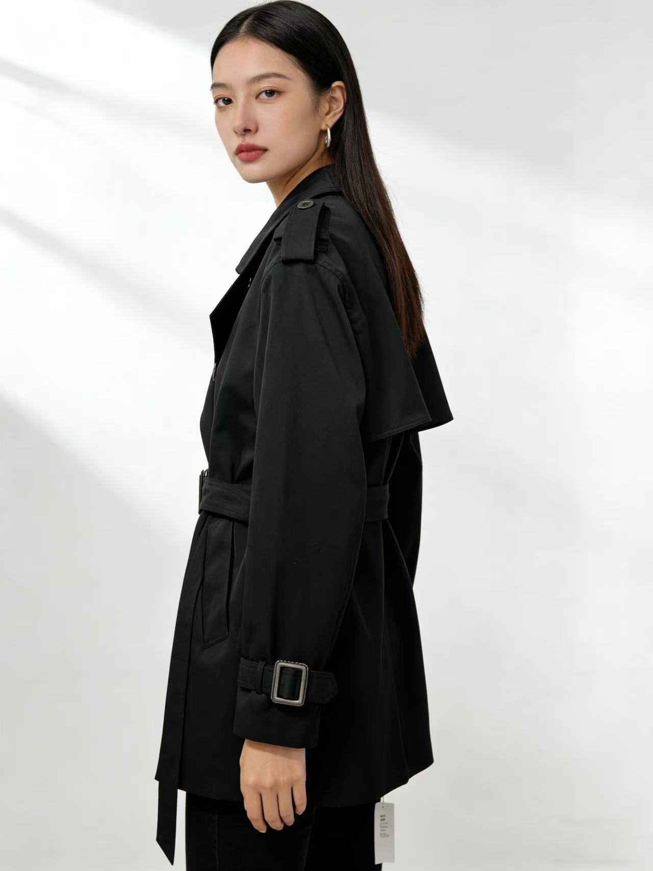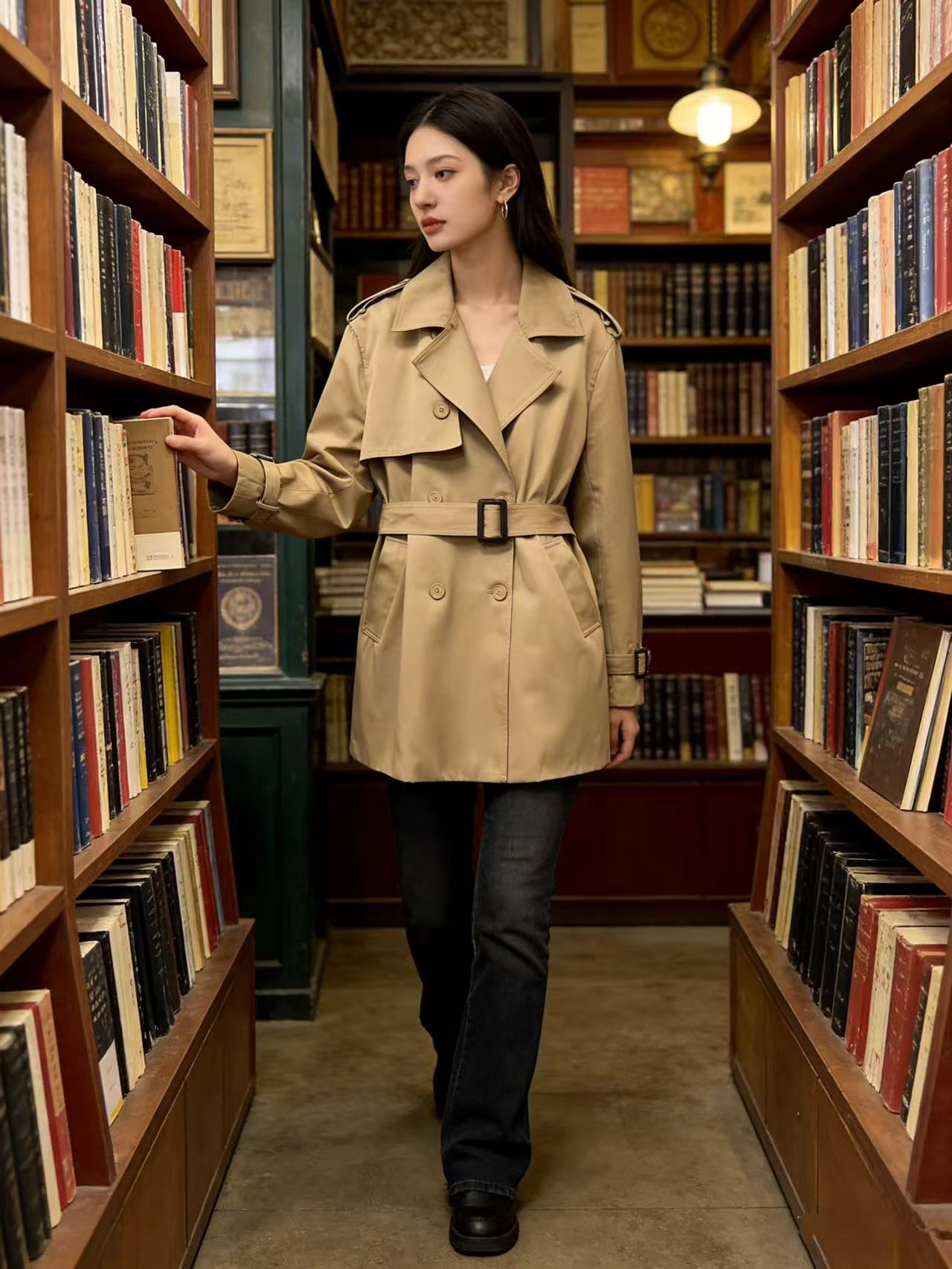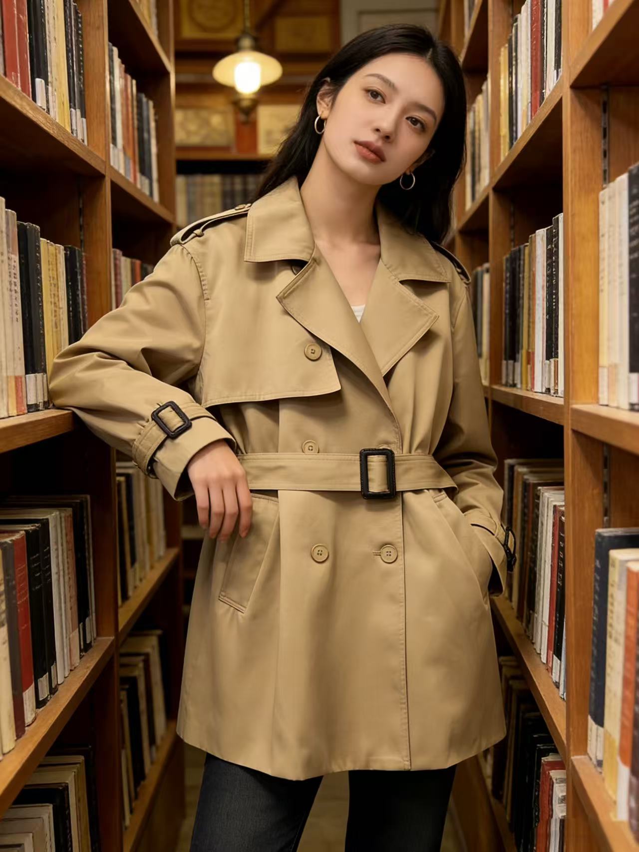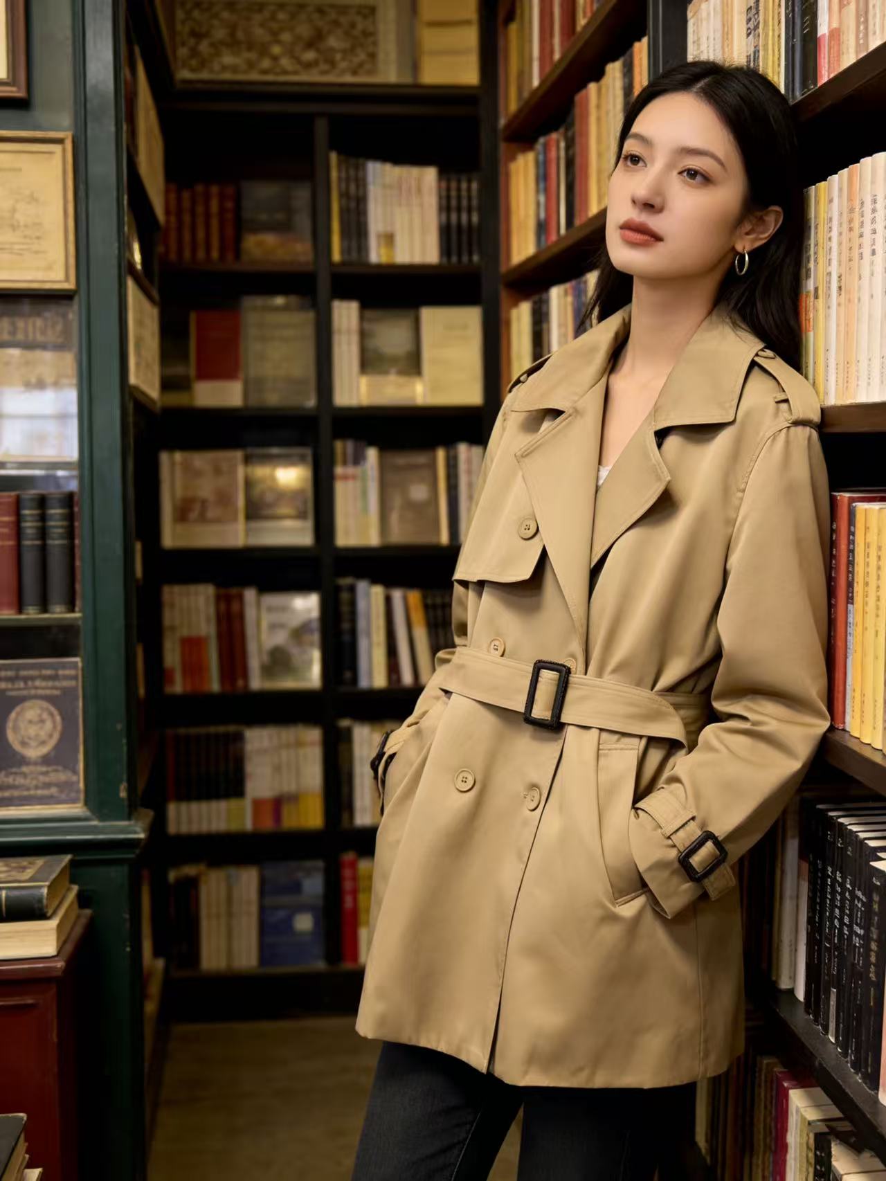 活动爆款【自营】衣周期~T18英伦风双排扣风衣中长外套-喜出