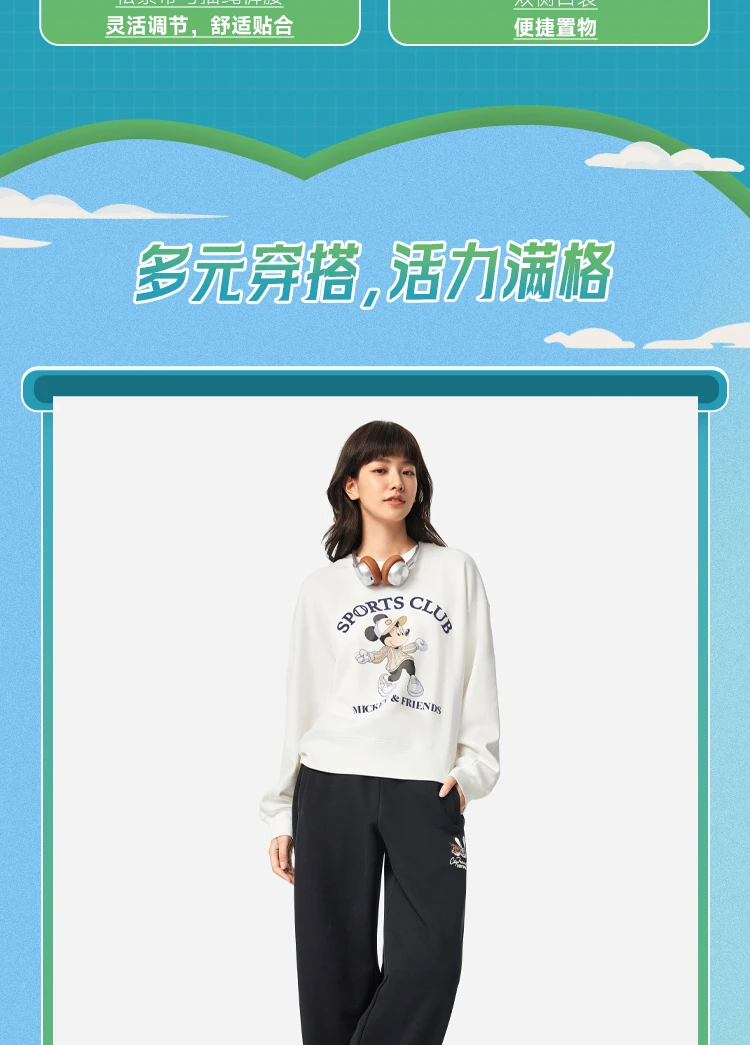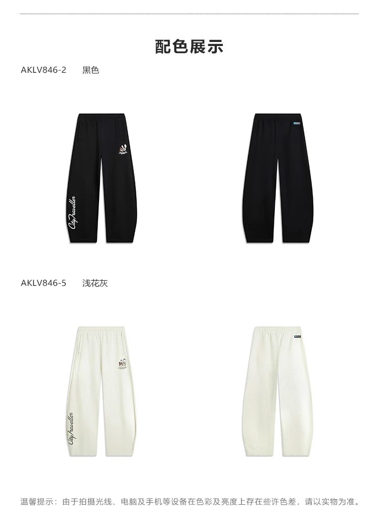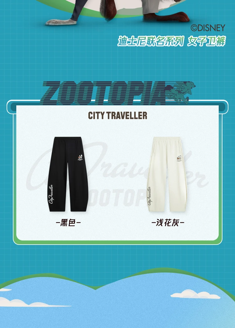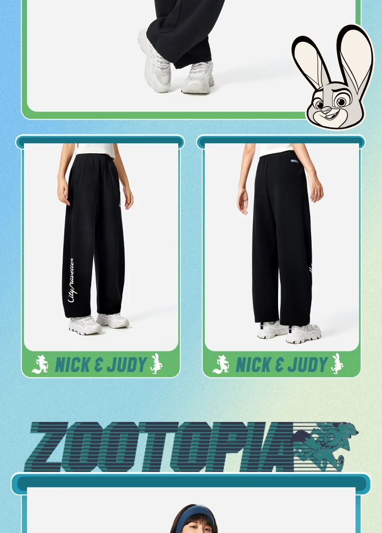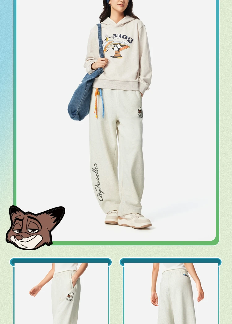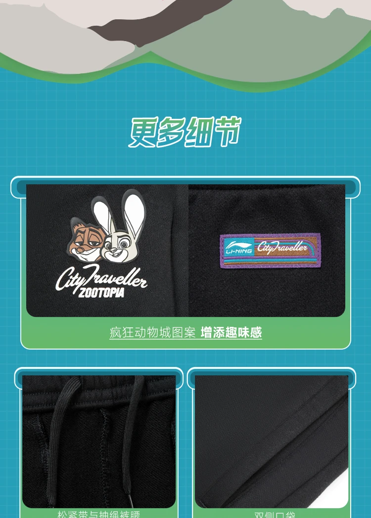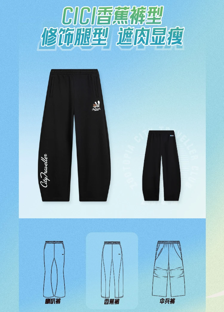 李宁迪士尼疯狂动物城联名系列女子平口宽松香蕉裤卫裤AKLV846