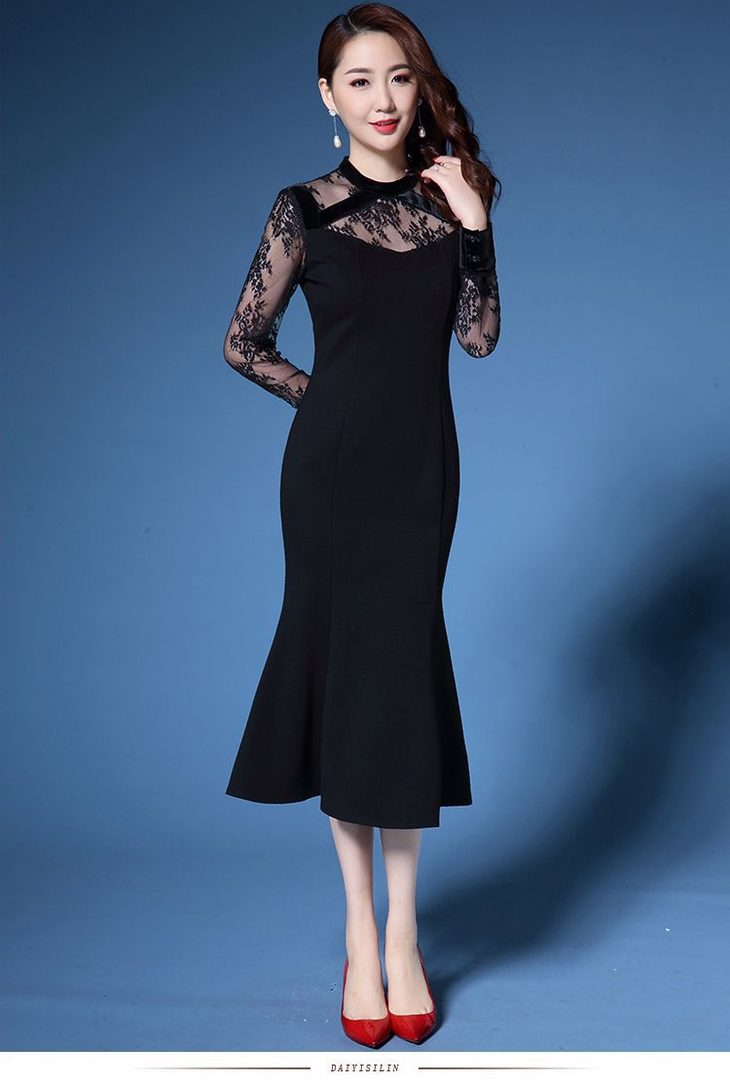 DY 4326 新款时尚蕾丝修身长款包臀鱼尾摆名媛气质