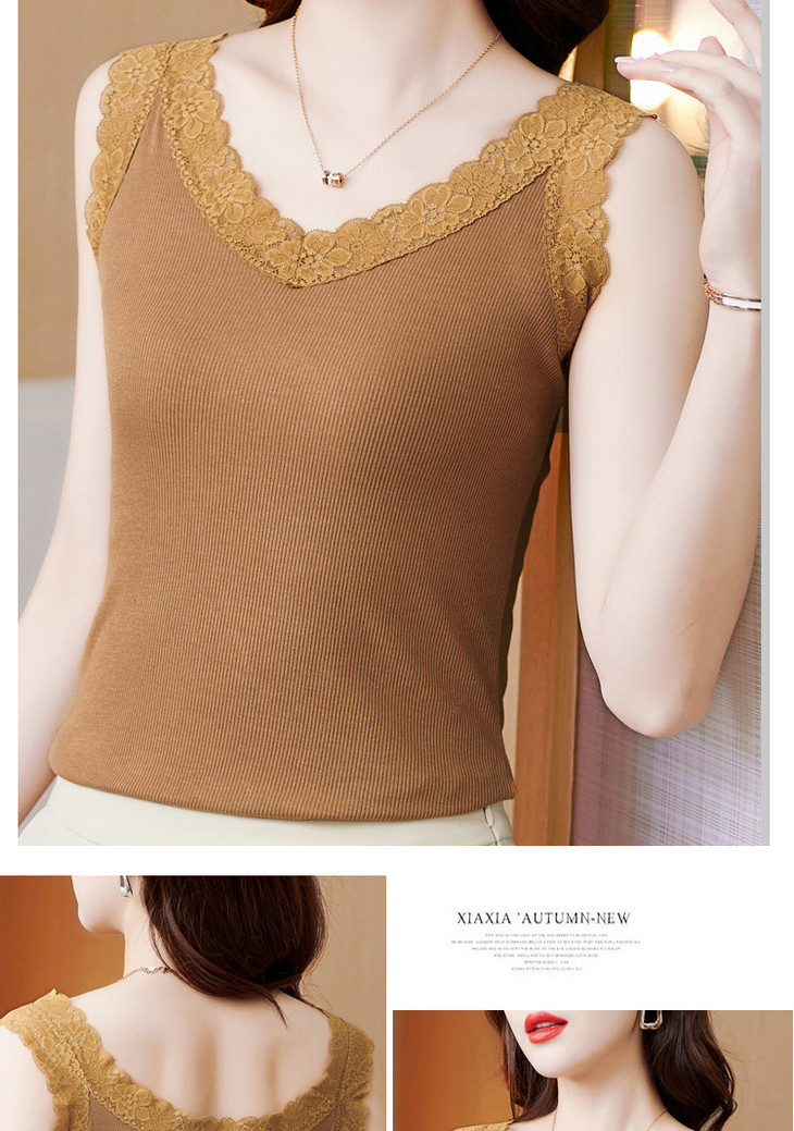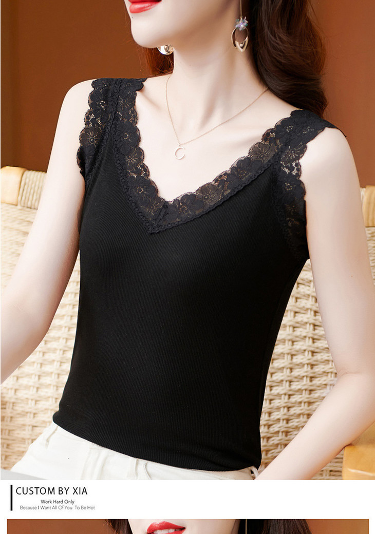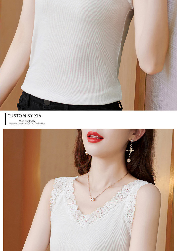 MZ800454 2022夏季运动针织内搭纯色吊带型莫代尔蕾丝V领修身型拼接小背心