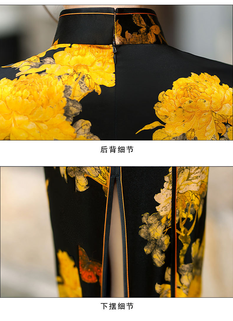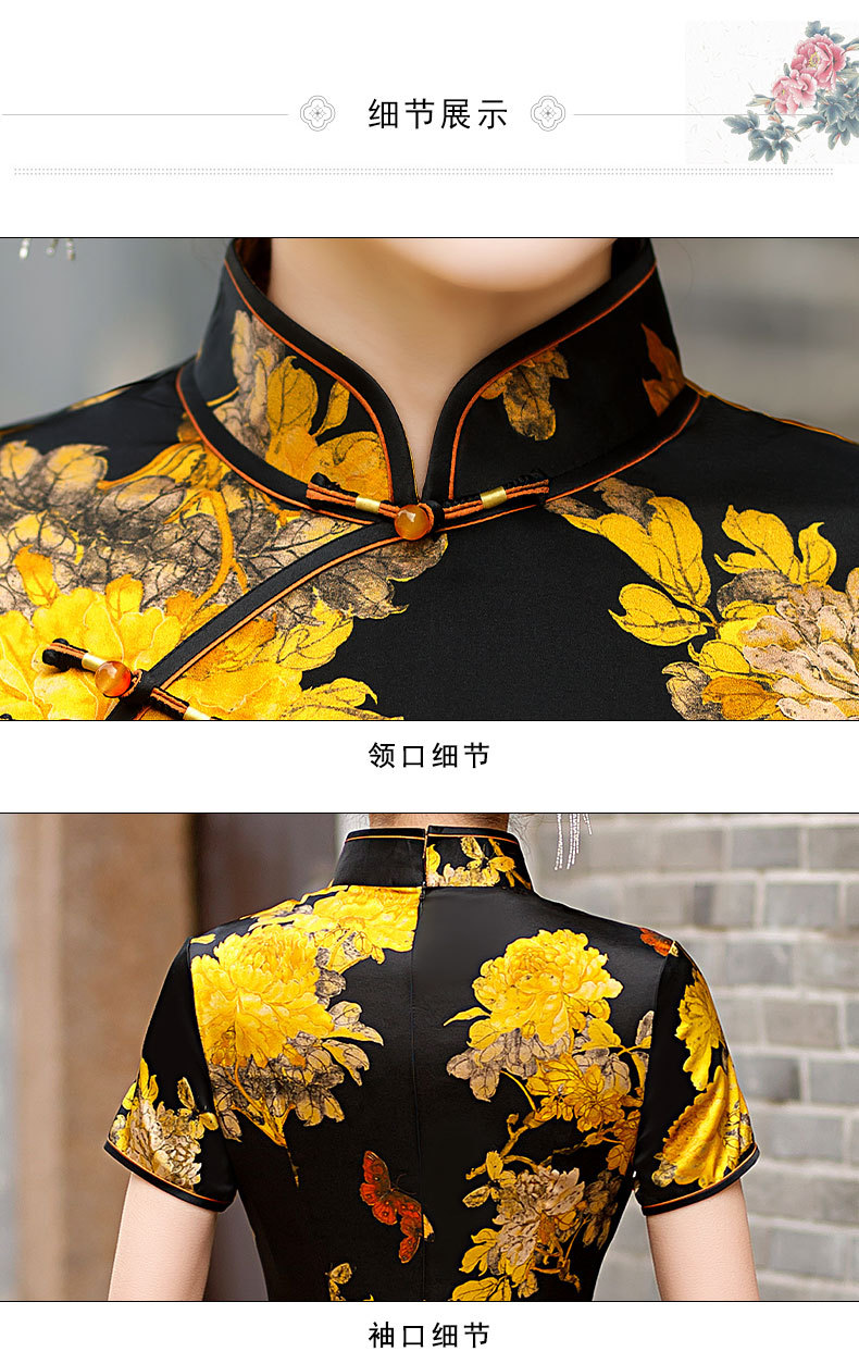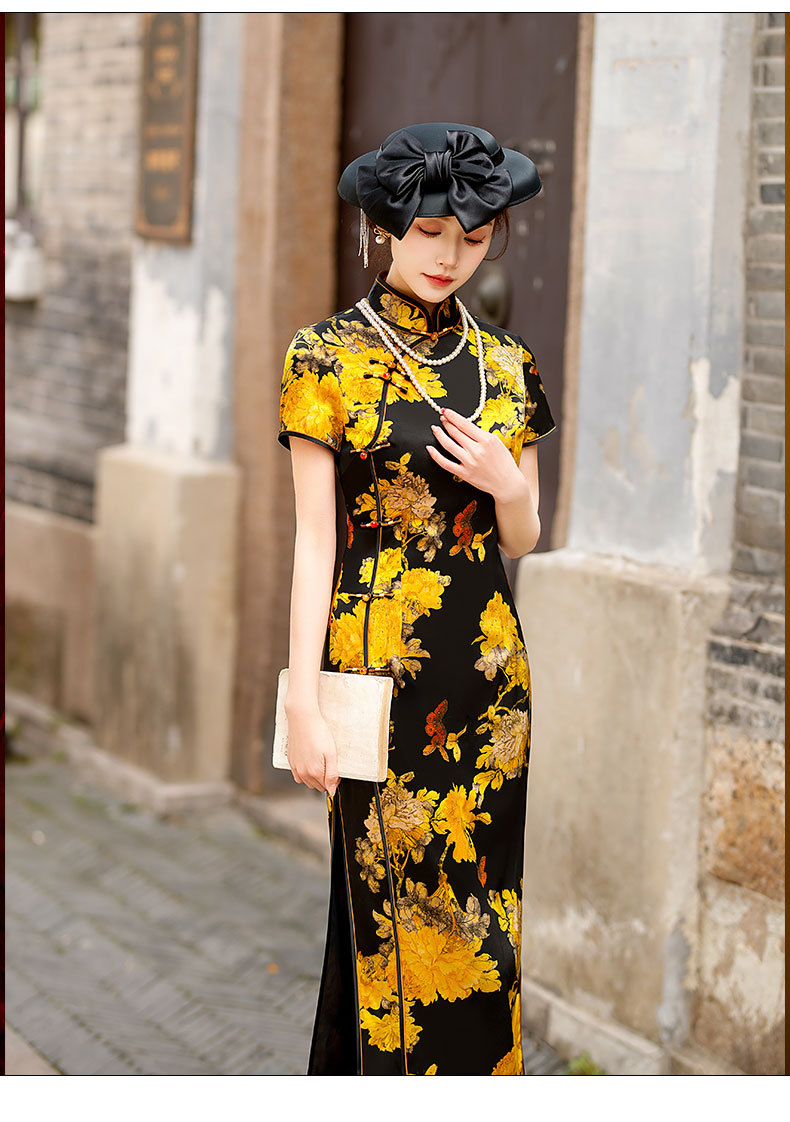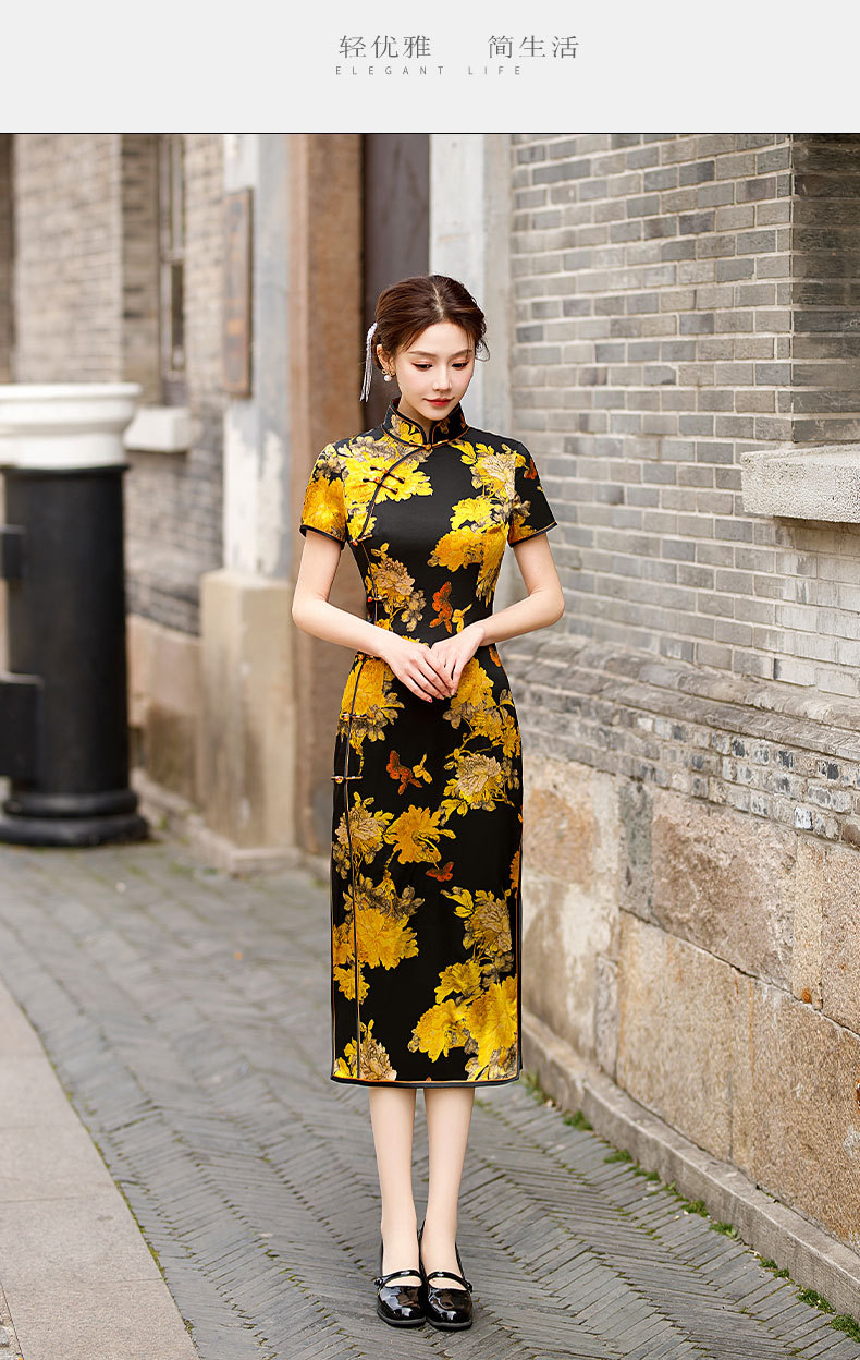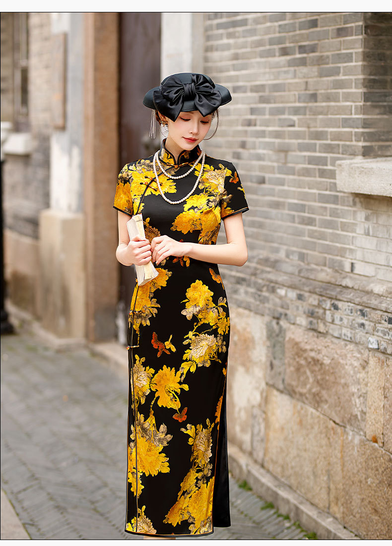 HQ-JYJ202改良真丝旗袍夏季女2025新款斜襟短袖老上海桑蚕丝连衣裙日常修身