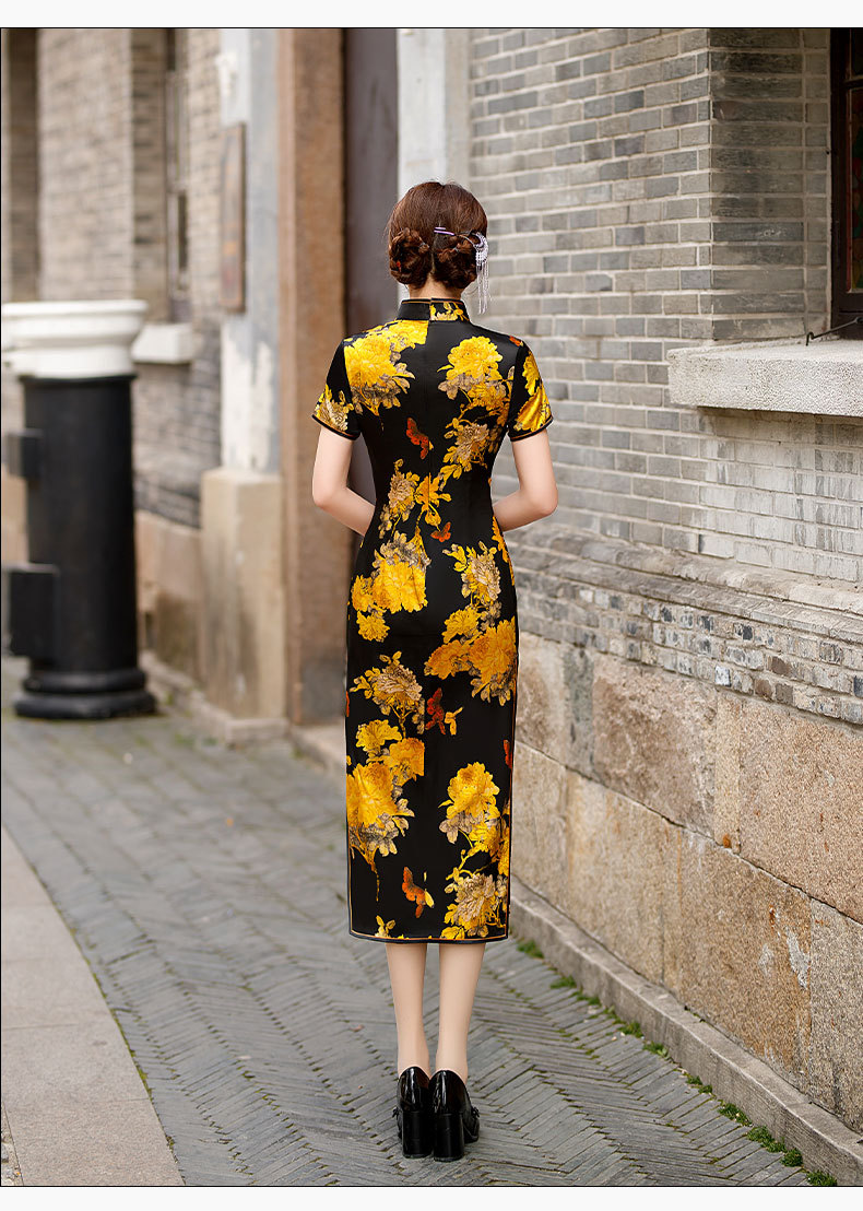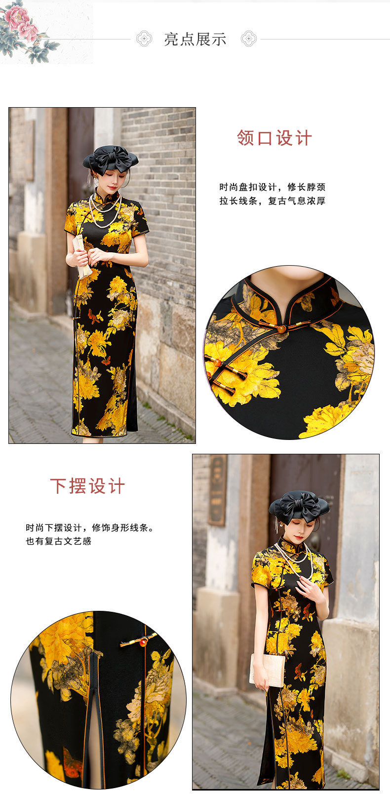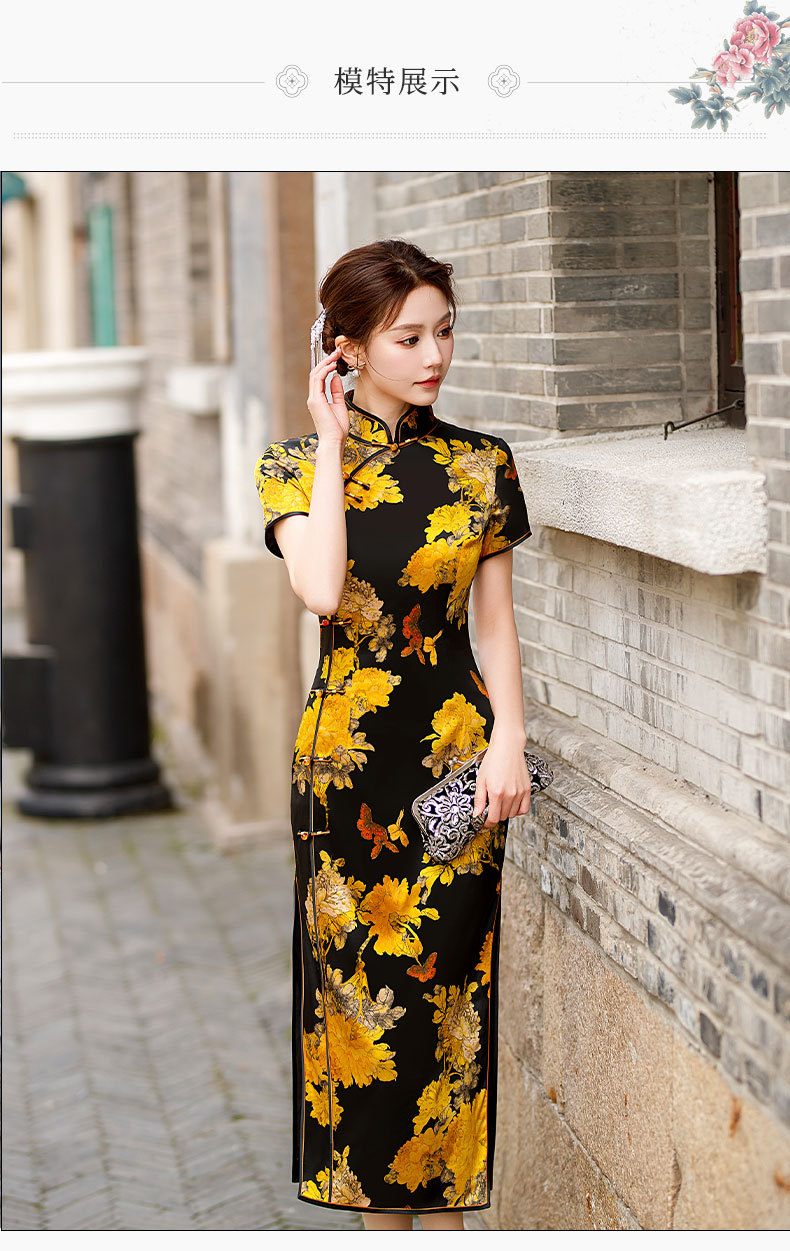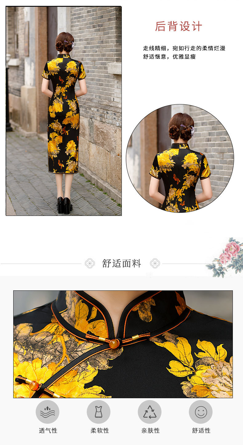 HQ-JYJ202改良真丝旗袍夏季女2025新款斜襟短袖老上海桑蚕丝连衣裙日常修身