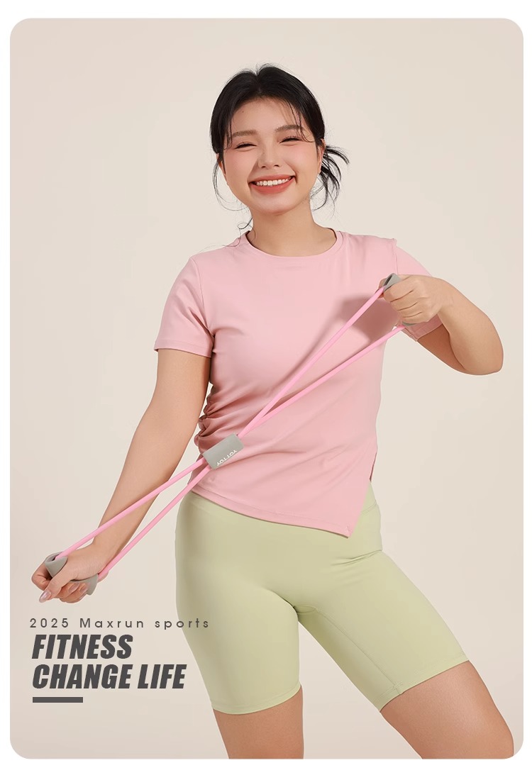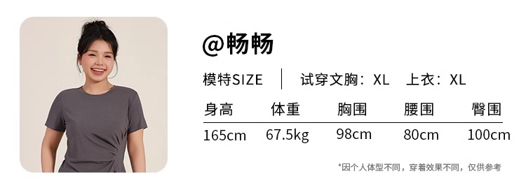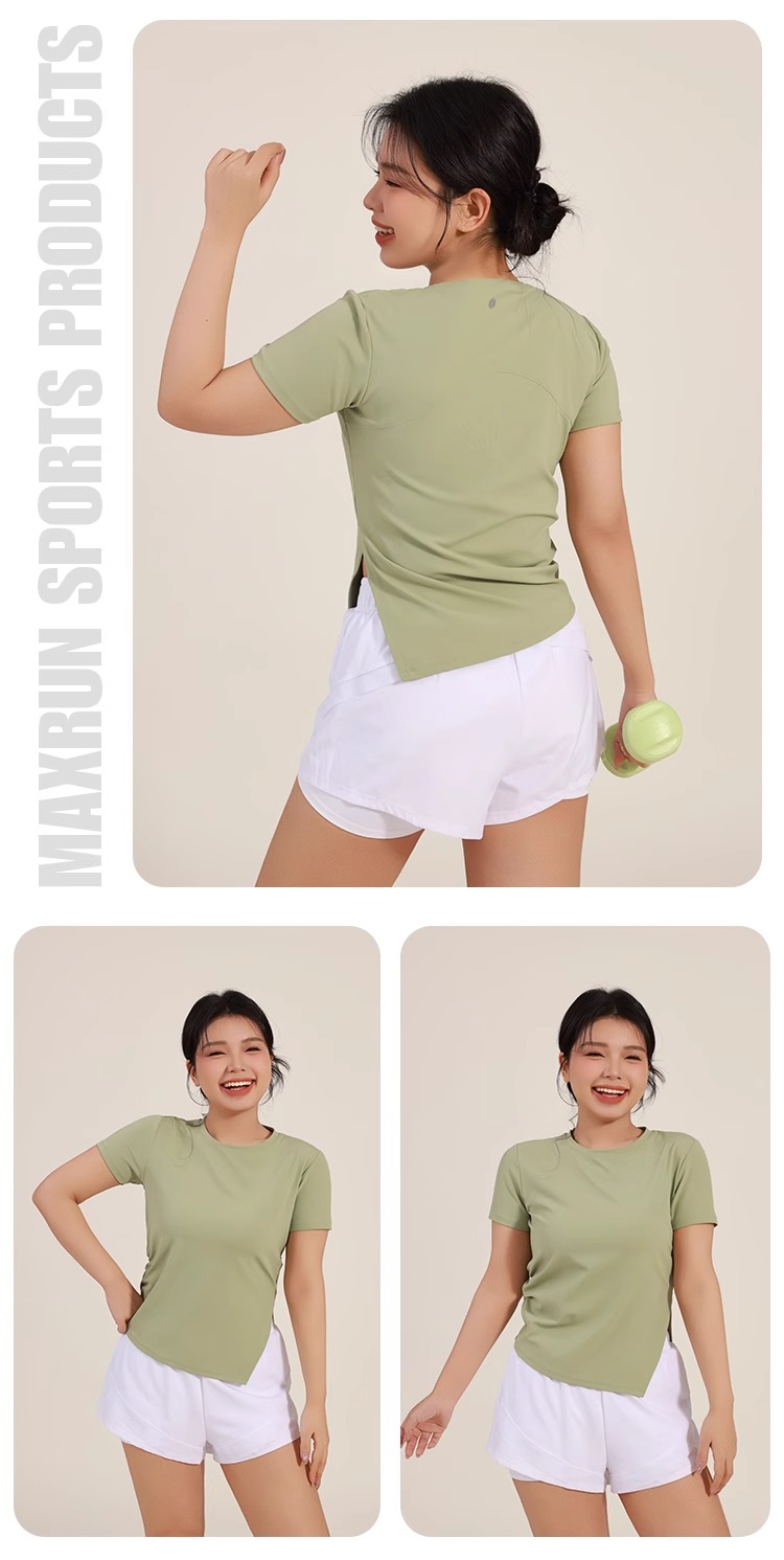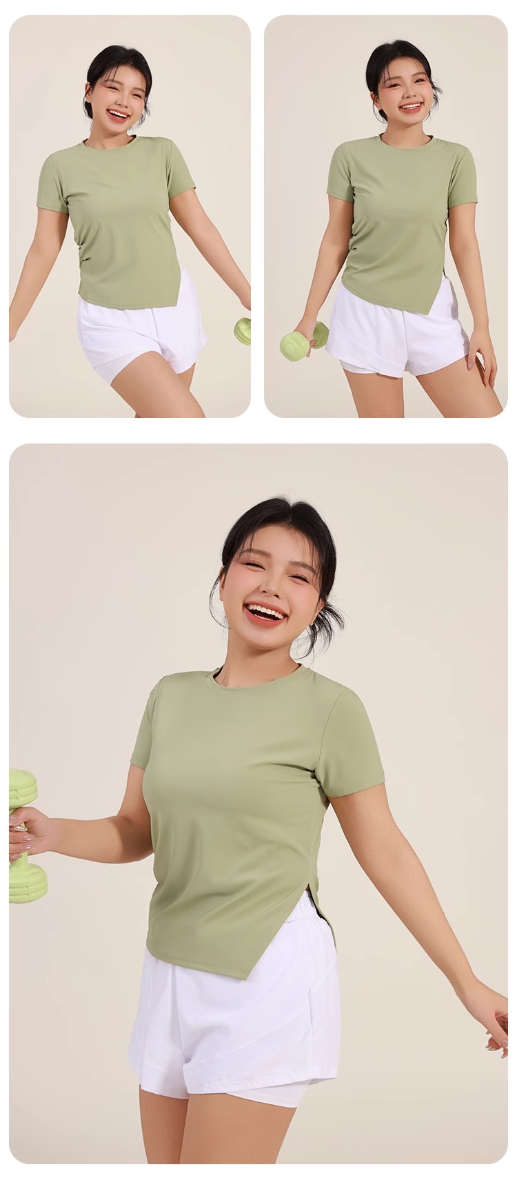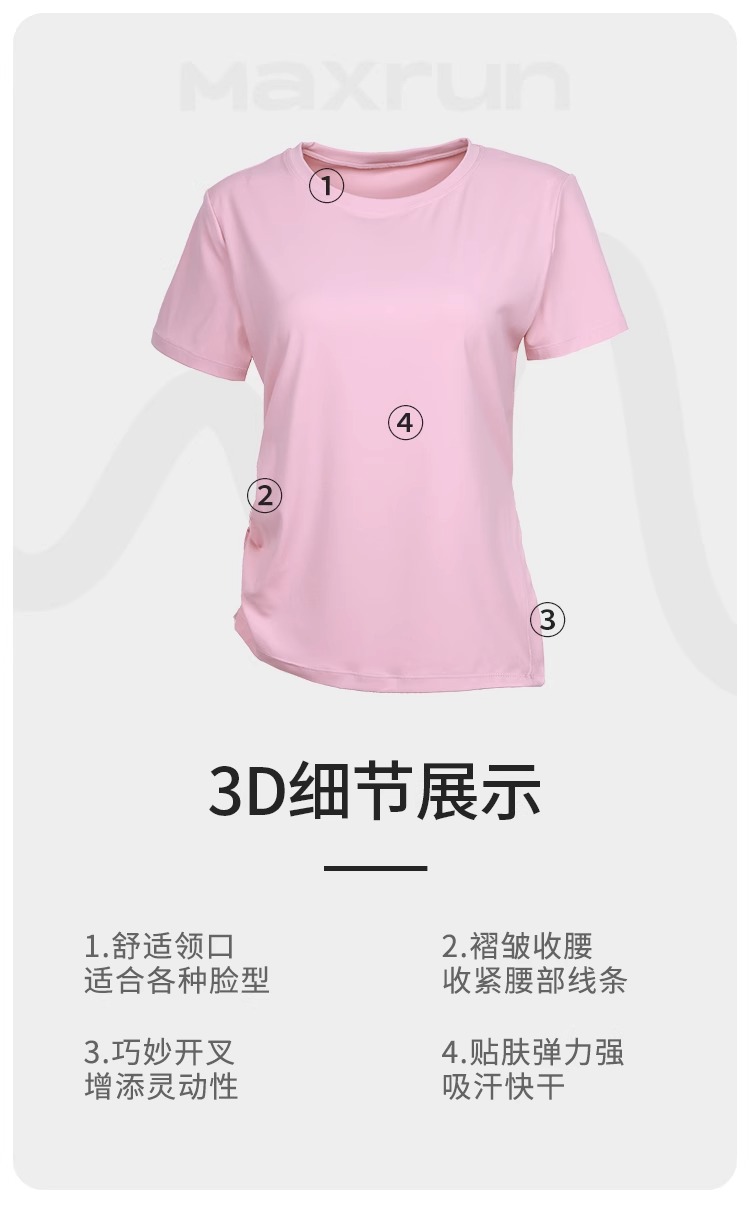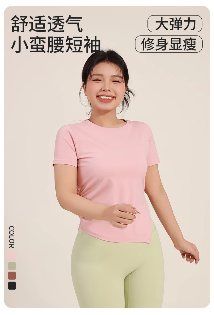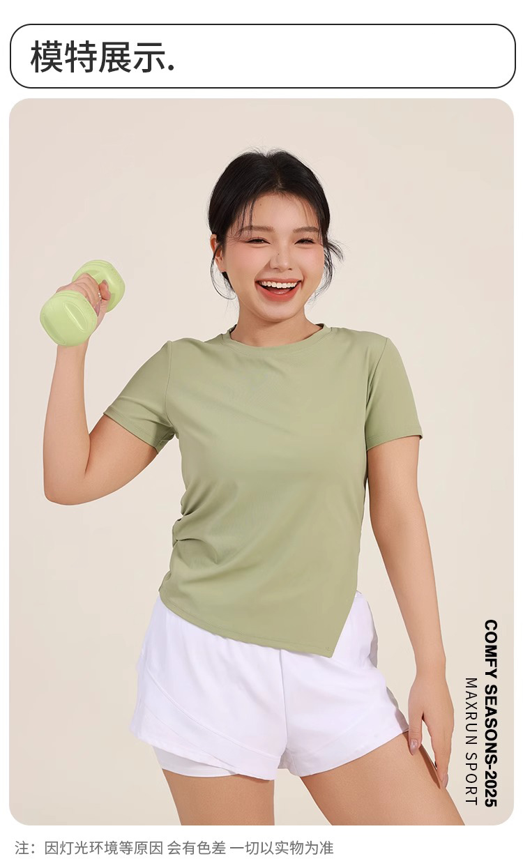 跃牌(呗咪纷纷系列)褶皱显瘦修身不规则开叉瑜伽服短袖圆领运动瑜伽T恤DX3012