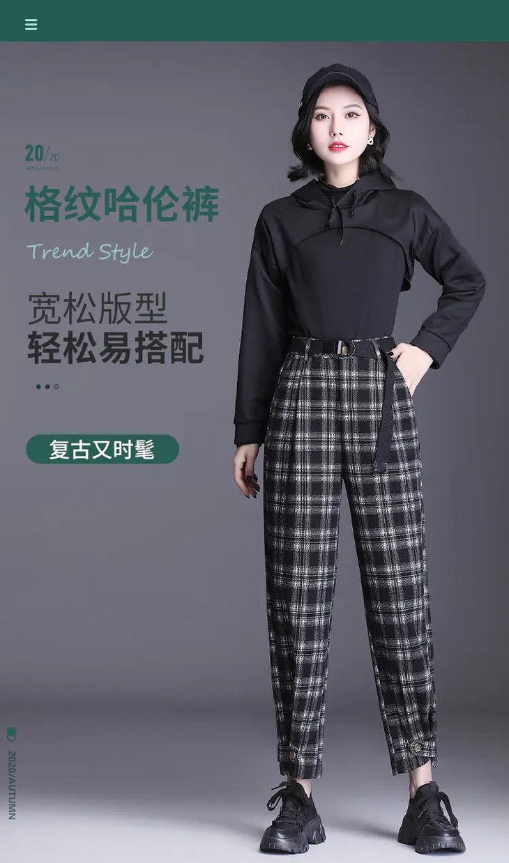 宽松休闲,百搭时尚格子萝卜裤AL5668