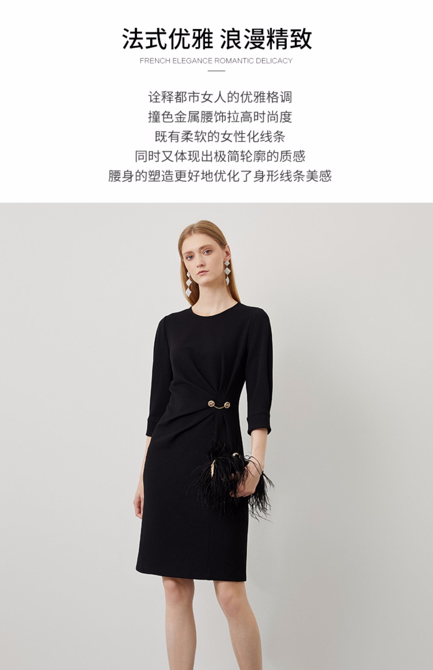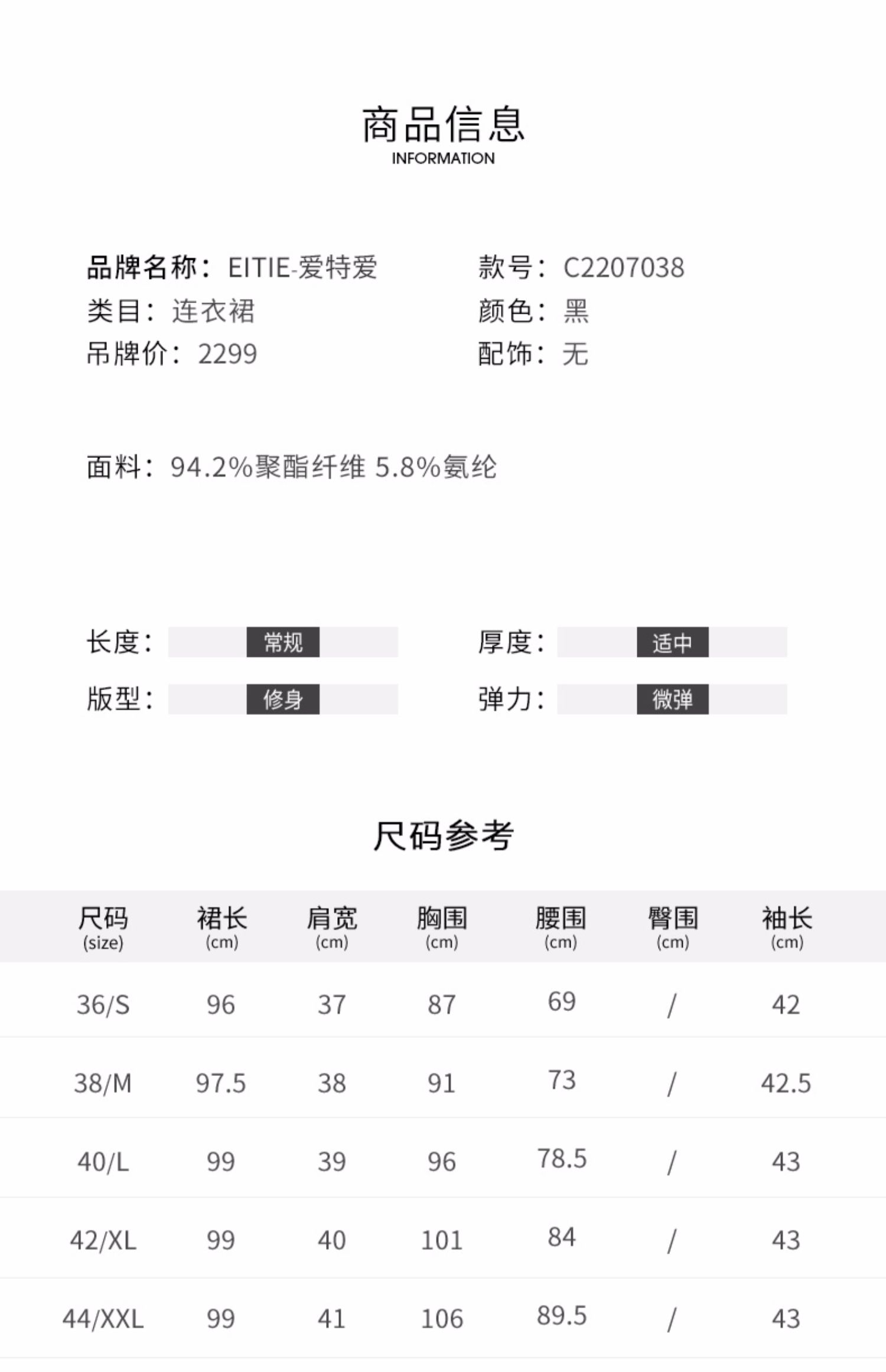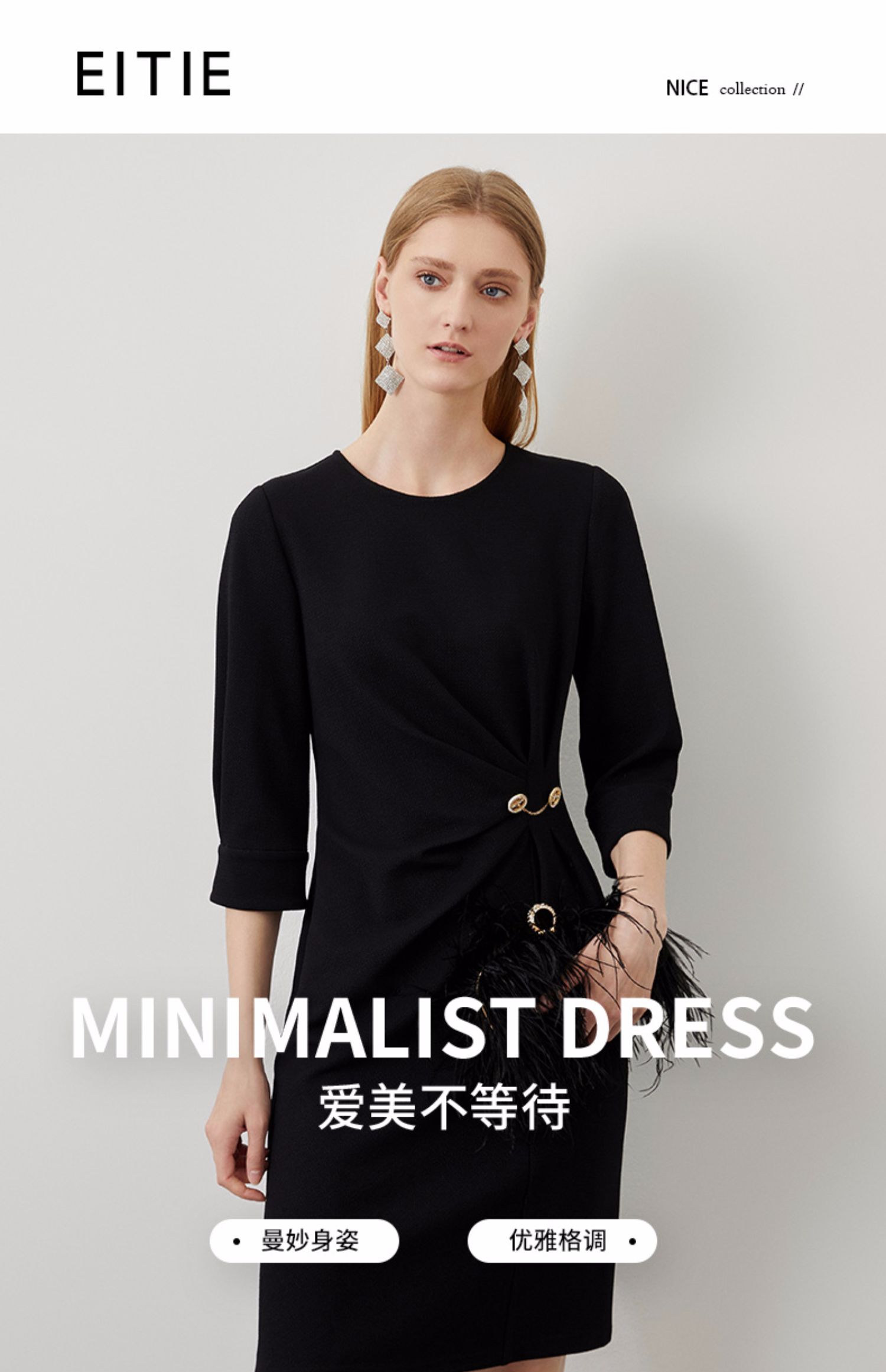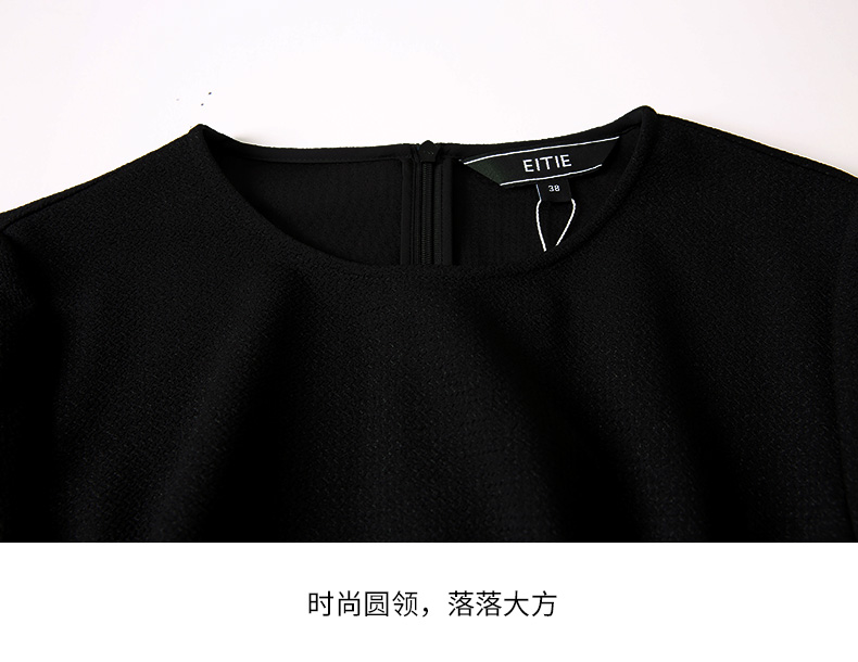 EITIE爱特爱秋新款大气优雅时尚通勤收腰中裙显瘦黑色连衣裙C2207038