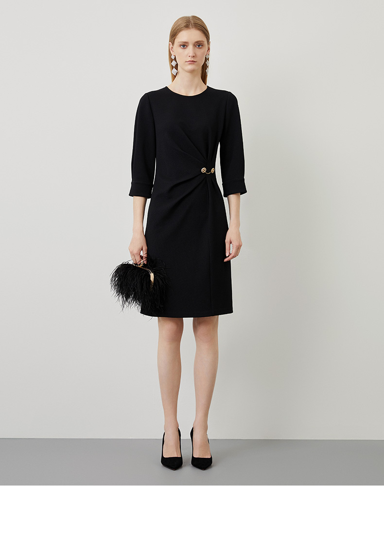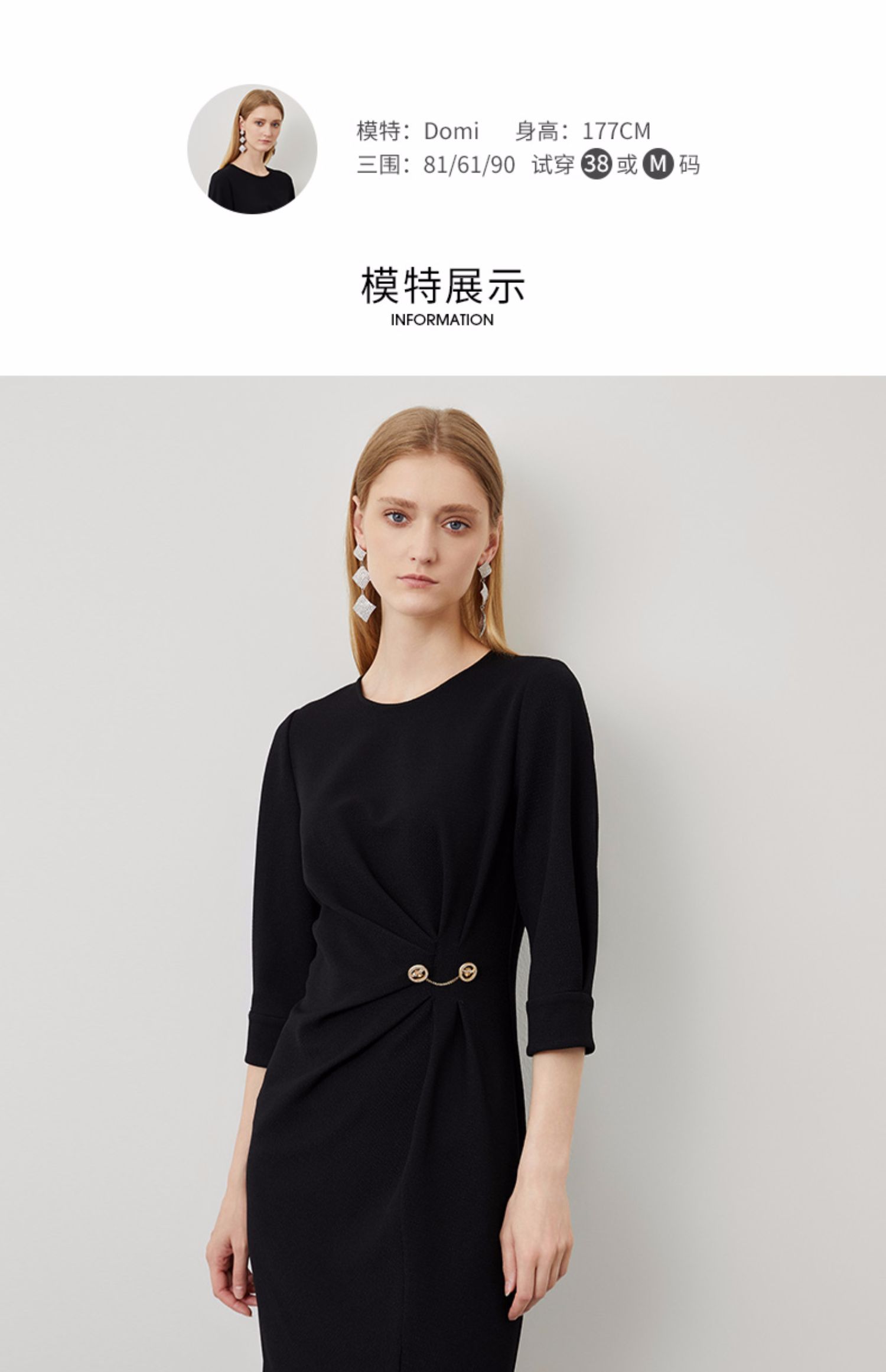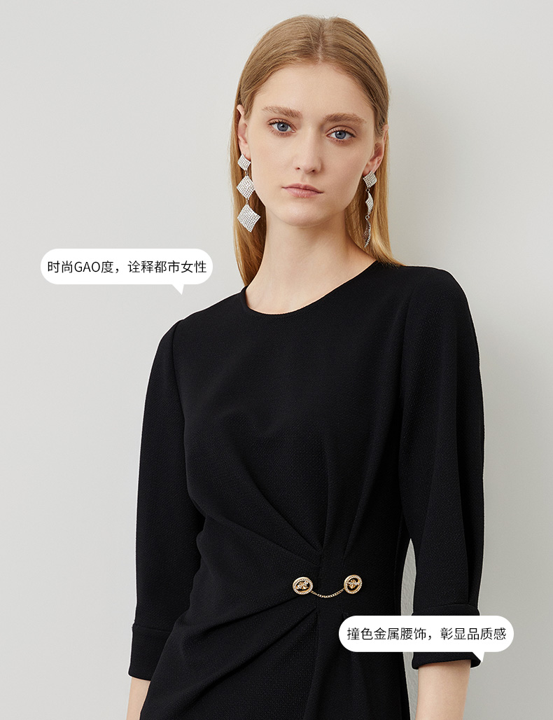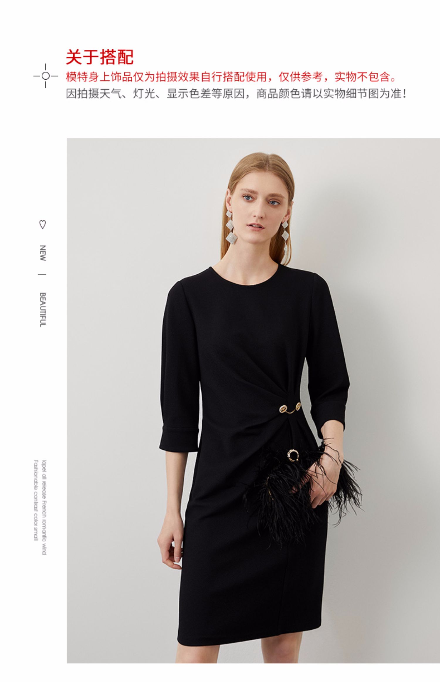 EITIE爱特爱秋新款大气优雅时尚通勤收腰中裙显瘦黑色连衣裙C2207038