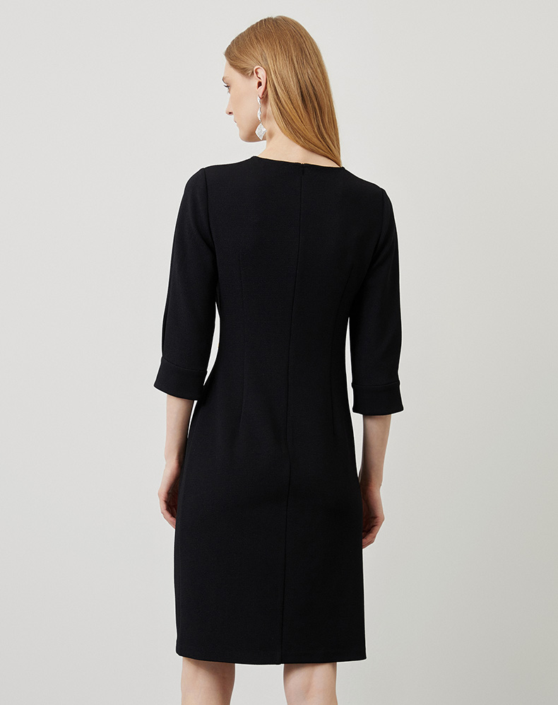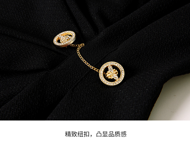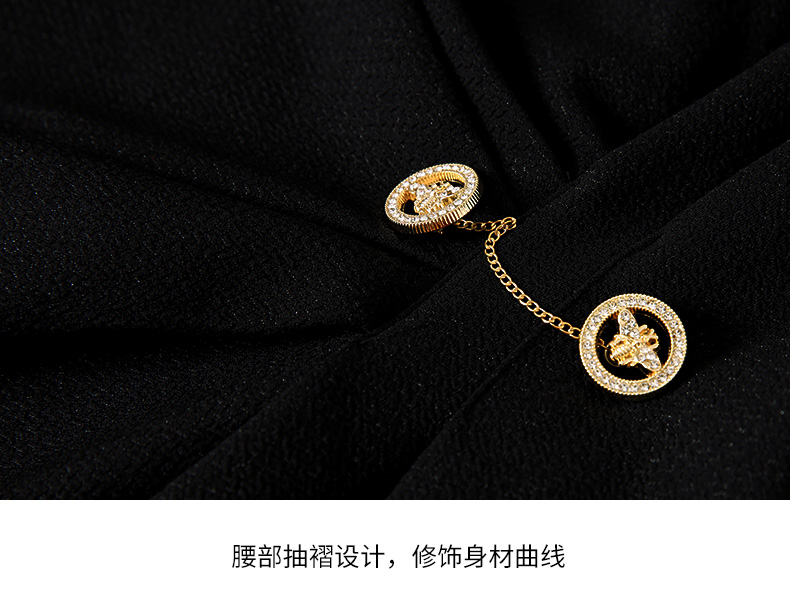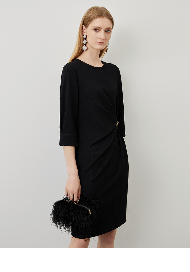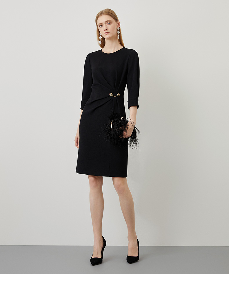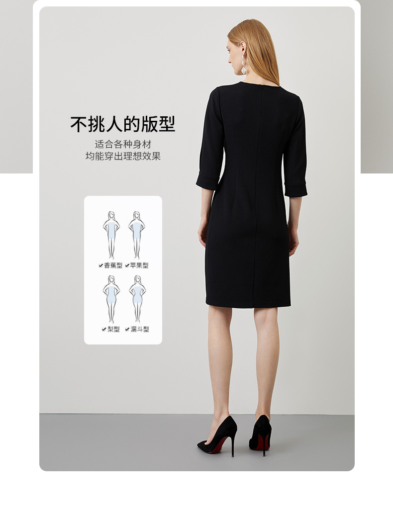 EITIE爱特爱秋新款大气优雅时尚通勤收腰中裙显瘦黑色连衣裙C2207038