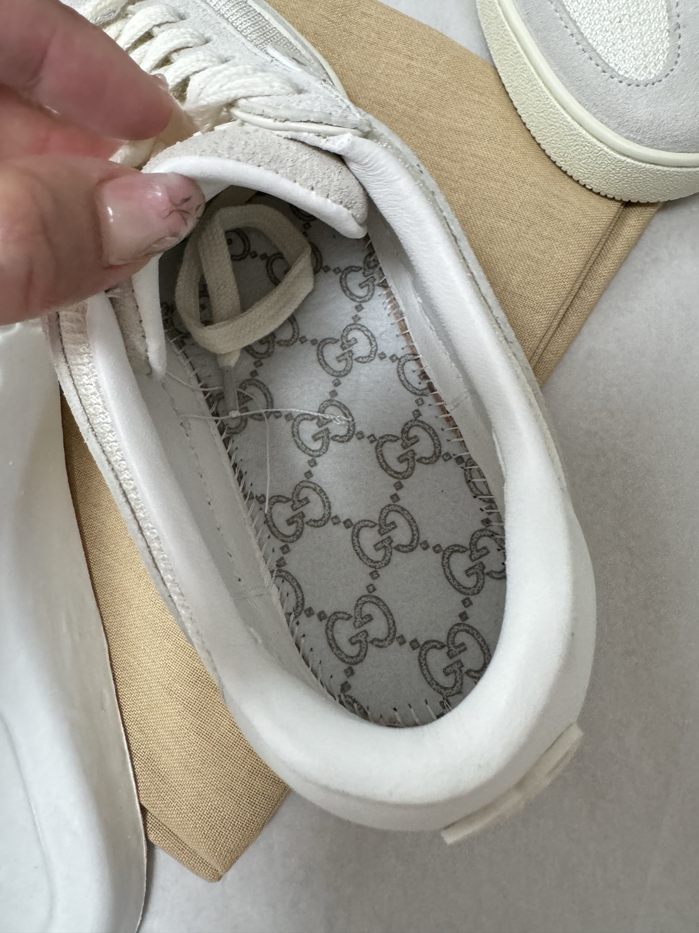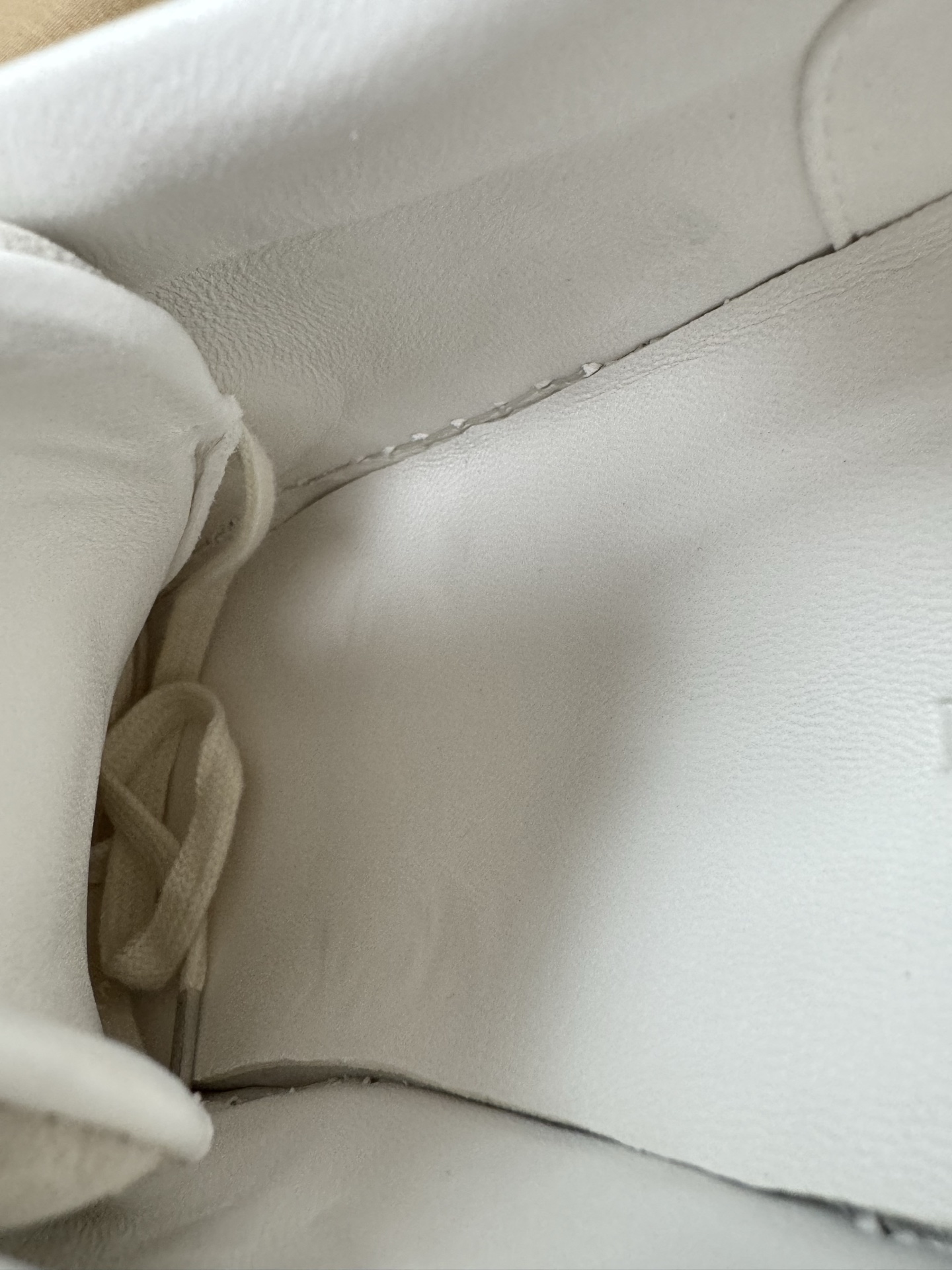 7️⃣全皮白色,很软很软,上脚就是那种被包裹的感觉,鞋面采用,鞋面全小牛皮材质制作而成,鞋舌也是皮质,原产意大利牛皮,通身自然复古,大底有点类似小脏鞋,鞋底就是复古灵魂,纯白干干净净!!!很有味道