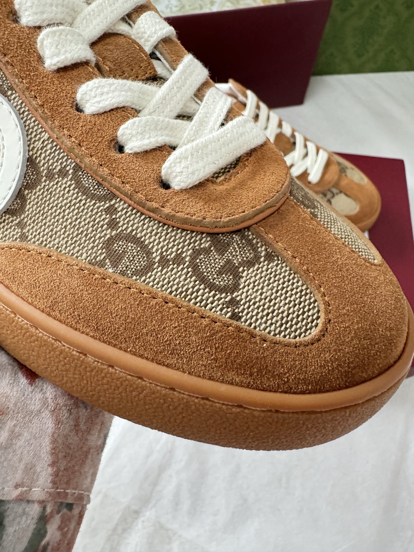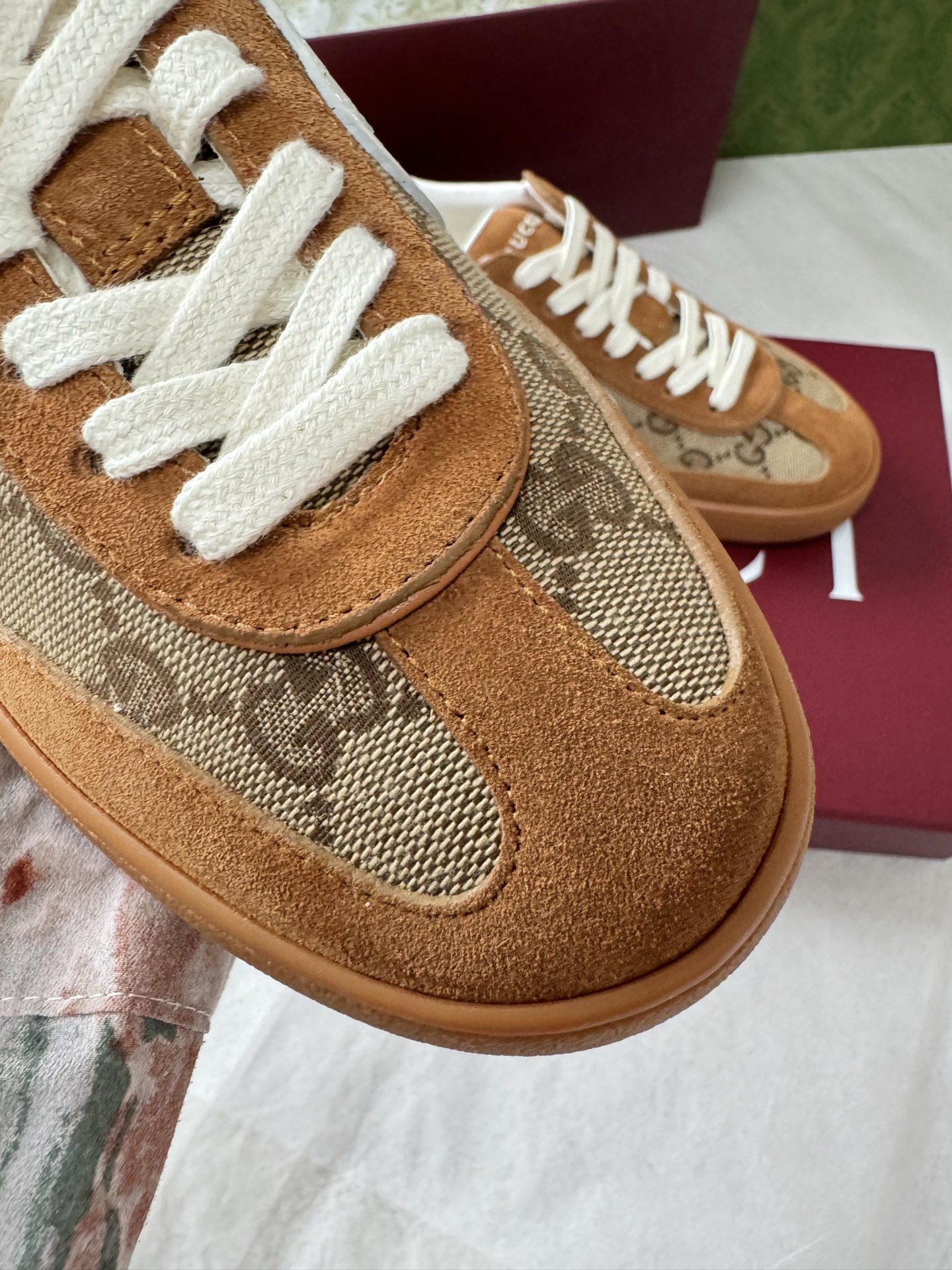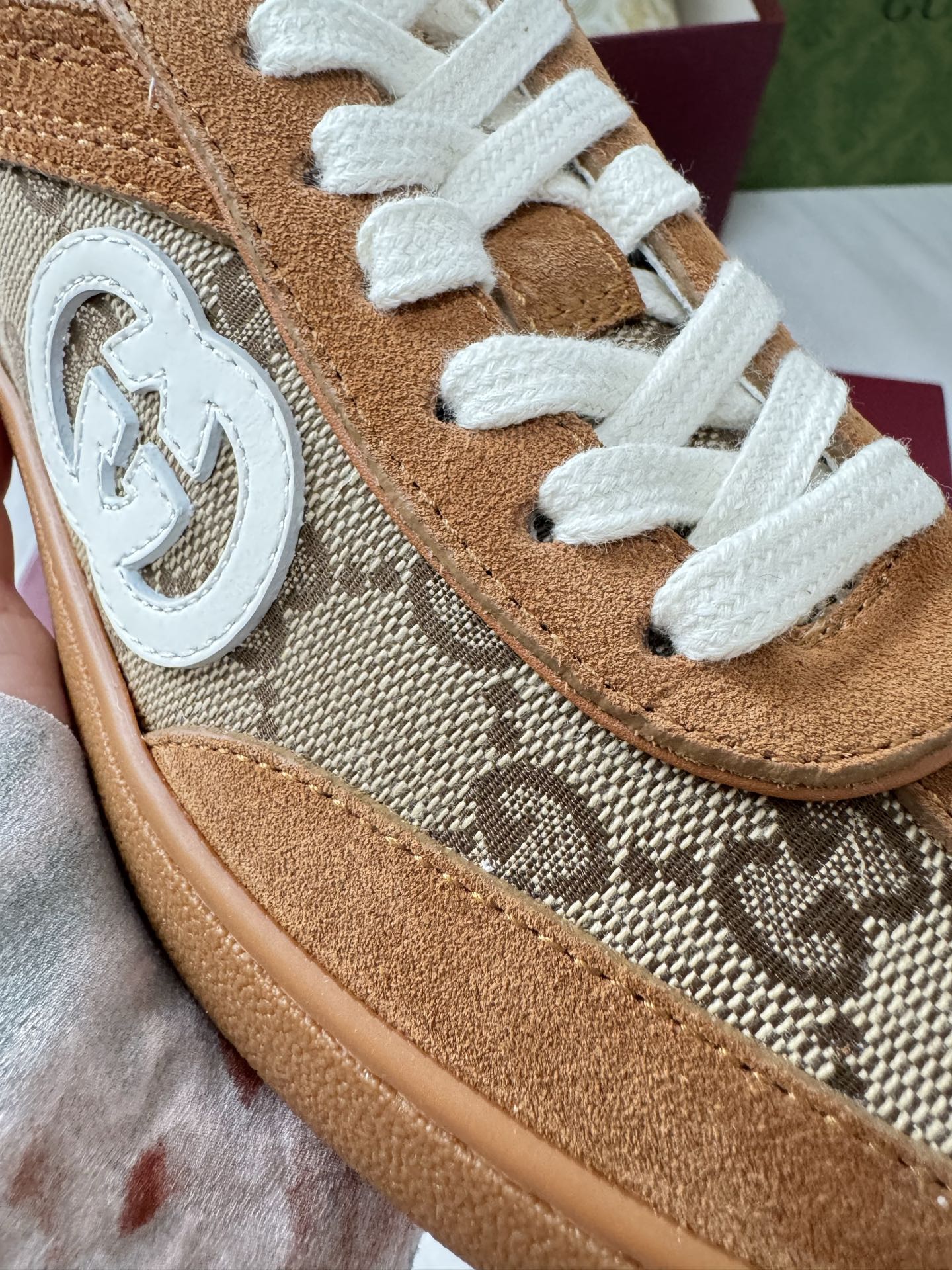 8️⃣最后一个色,老花棕色,男女同款。老花拼反绒就很经典了吧,也是最多人买的一个配色,这个款官网买不到只能去线下,鞋子设计满满的复古造型,这个棕色太让人心动了,鞋面采用的是反绒拼接织物老花制作,质感满满超级棒,触感丝滑有点茸茸的感觉超舒服,内里和脚垫也都是皮,舒适度真的没得说。