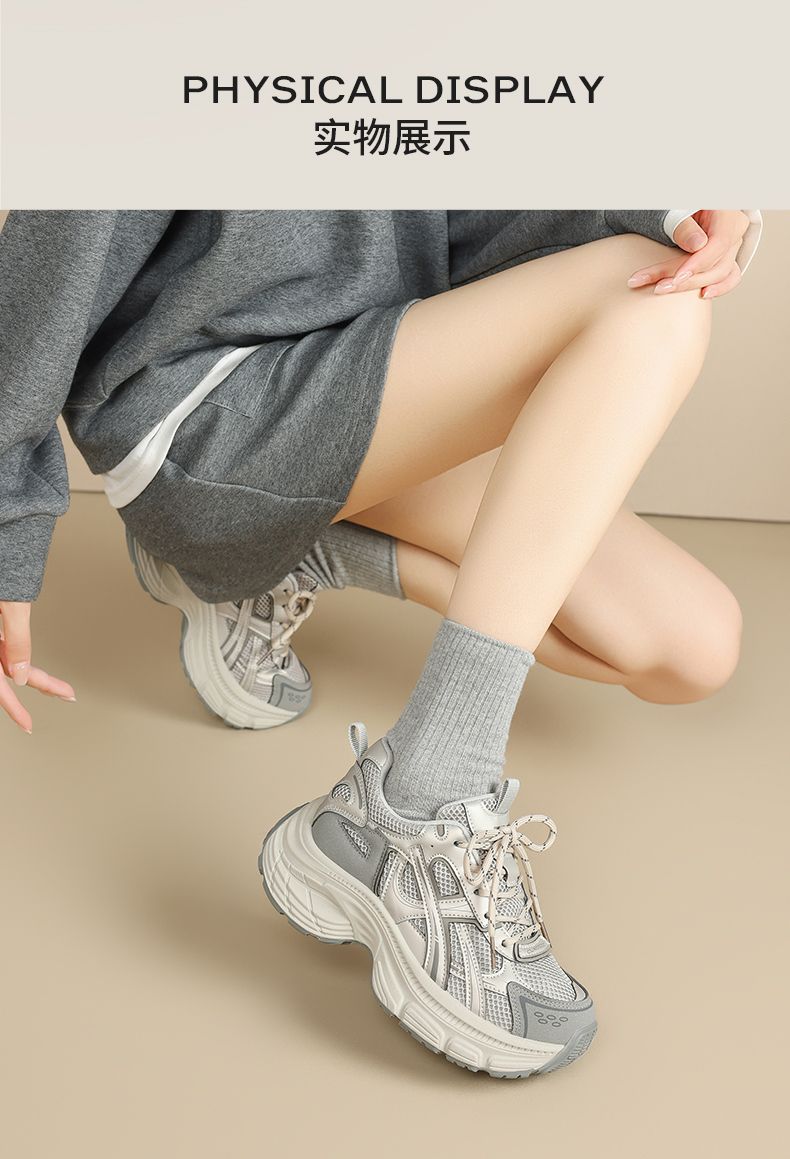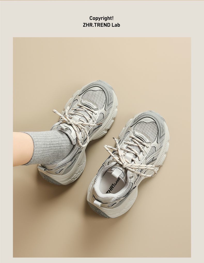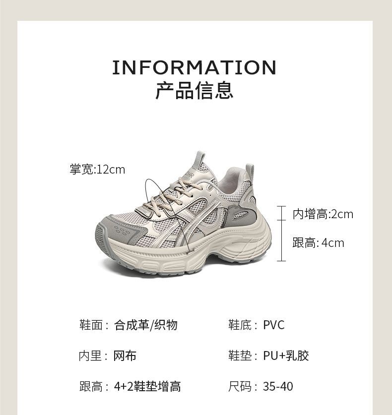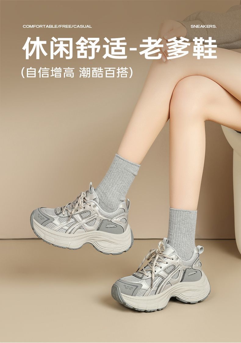 ZHR复古厚底6cm老爹鞋女鞋2025秋季网面透气运动鞋轻便增高休闲鞋