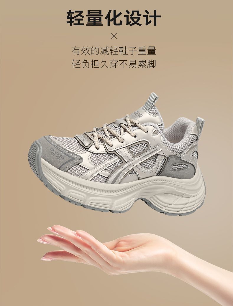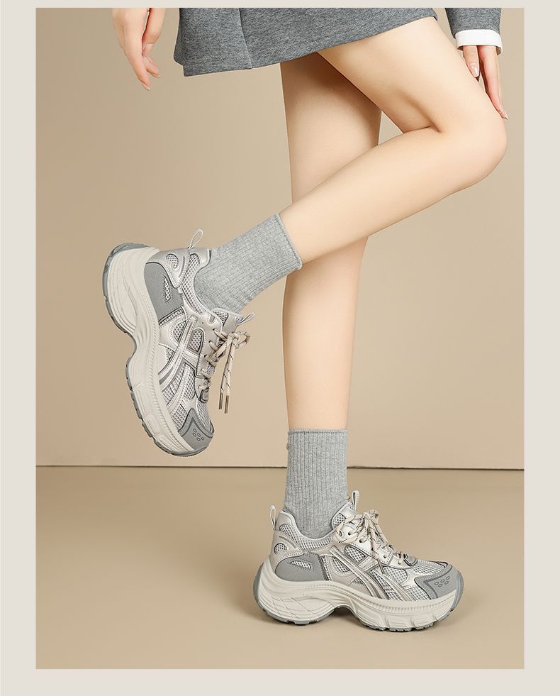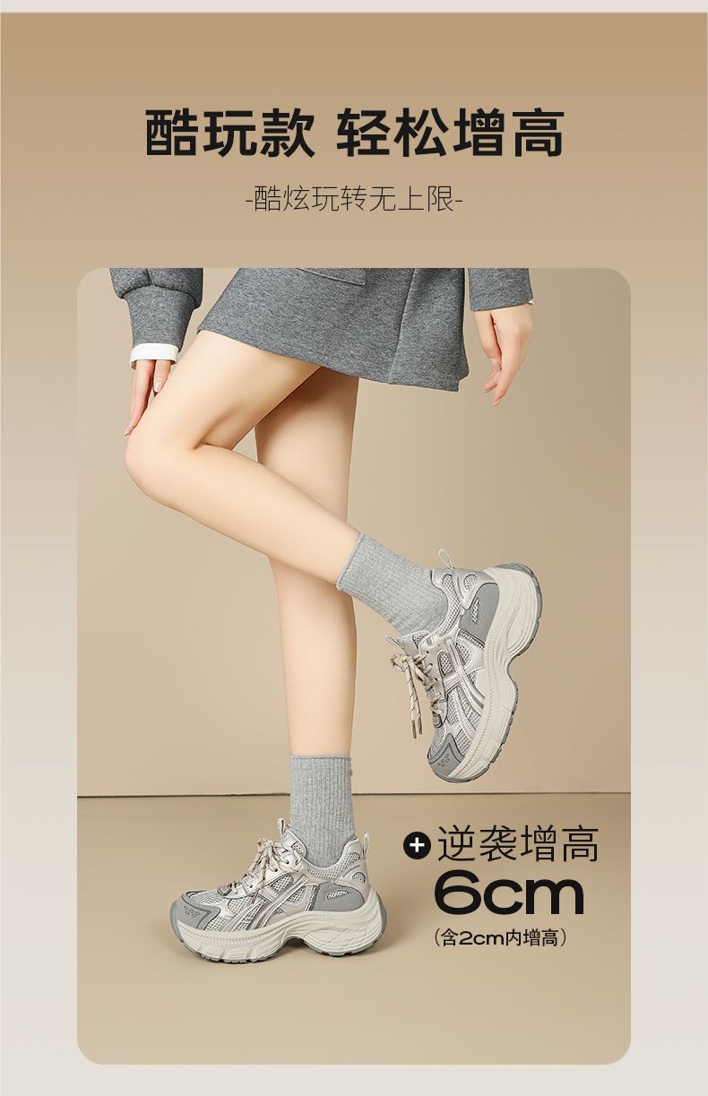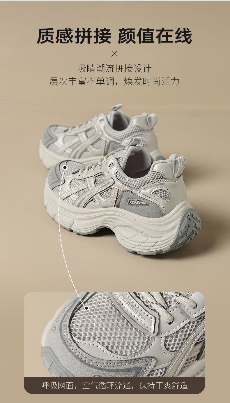 ZHR复古厚底6cm老爹鞋女鞋2025秋季网面透气运动鞋轻便增高休闲鞋